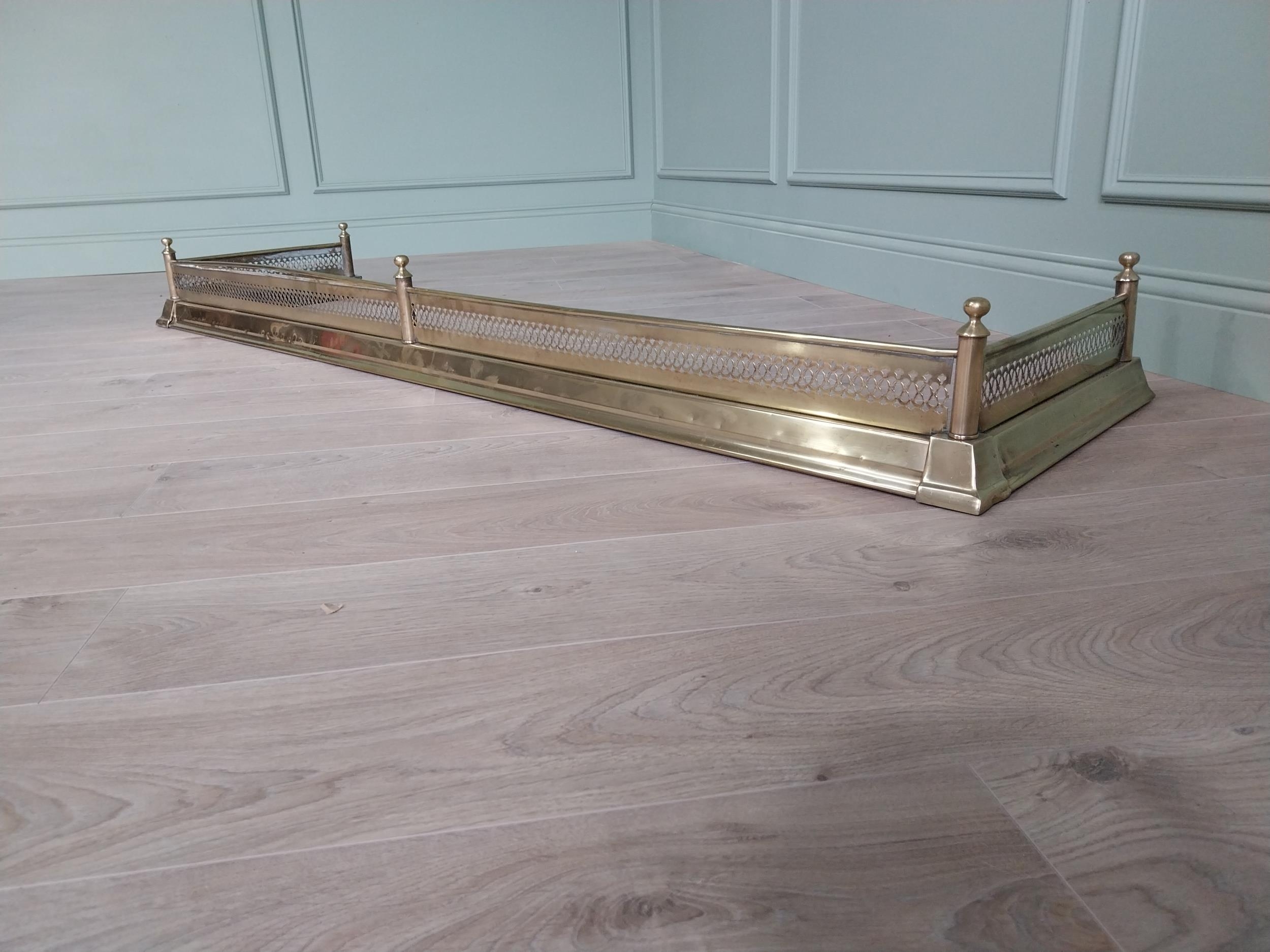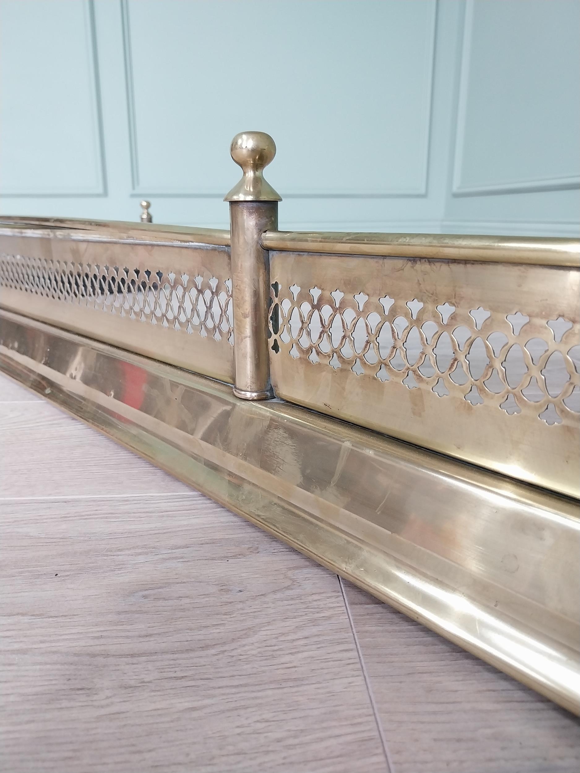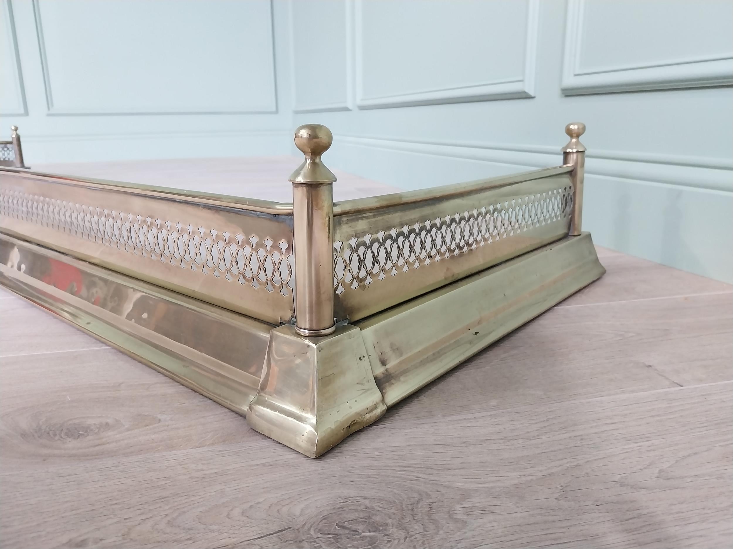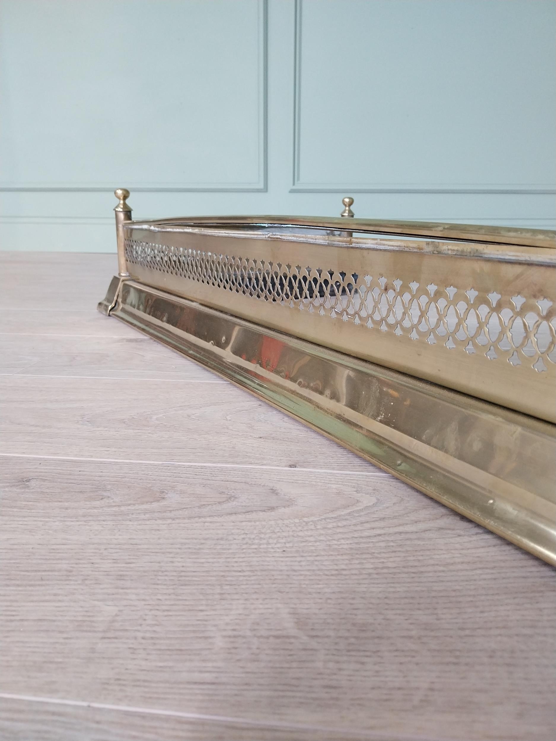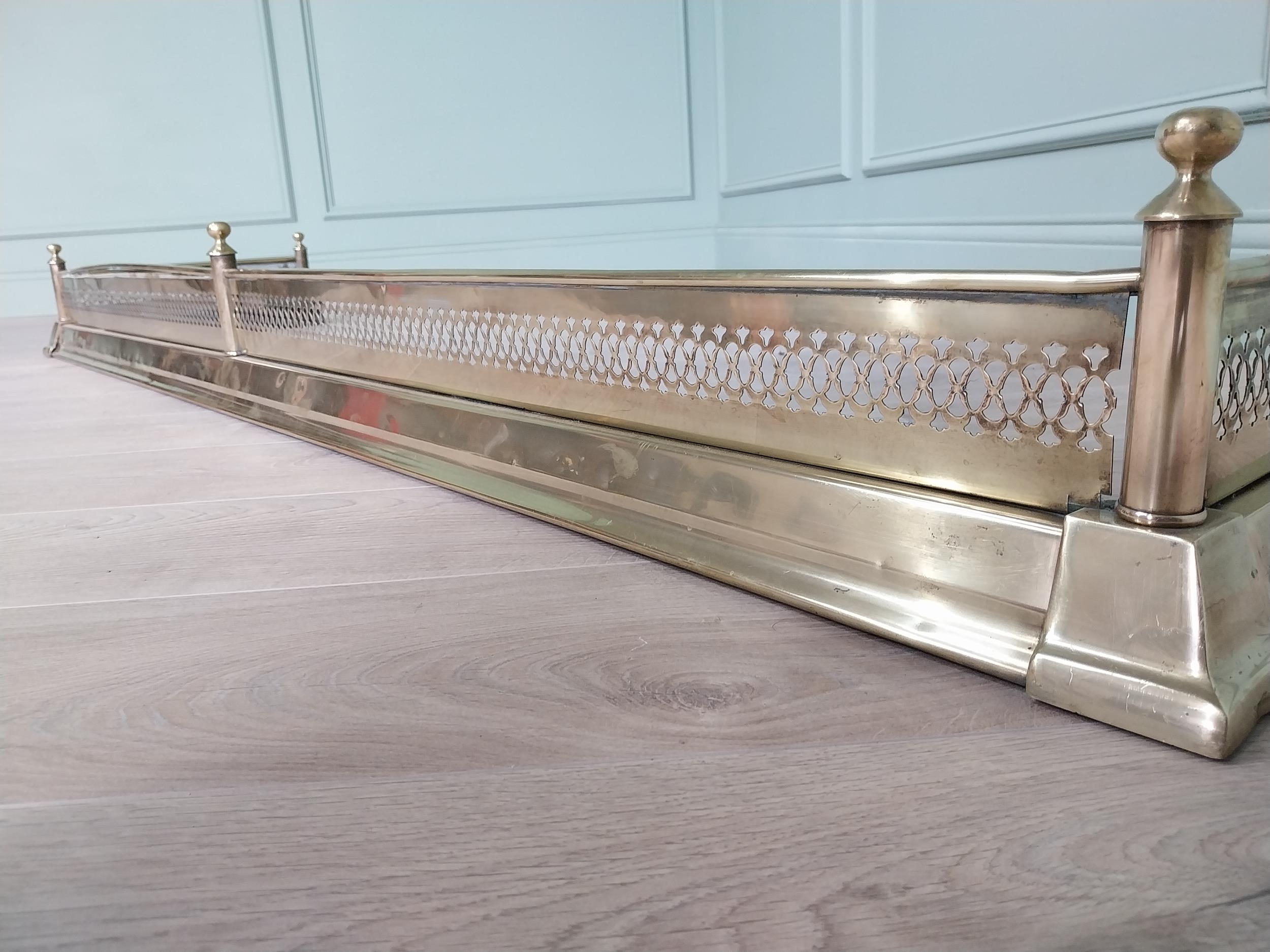 Good quality 19th C. pierced brass fire fender {20 cm H x 194 cm W x 51 cm D}.