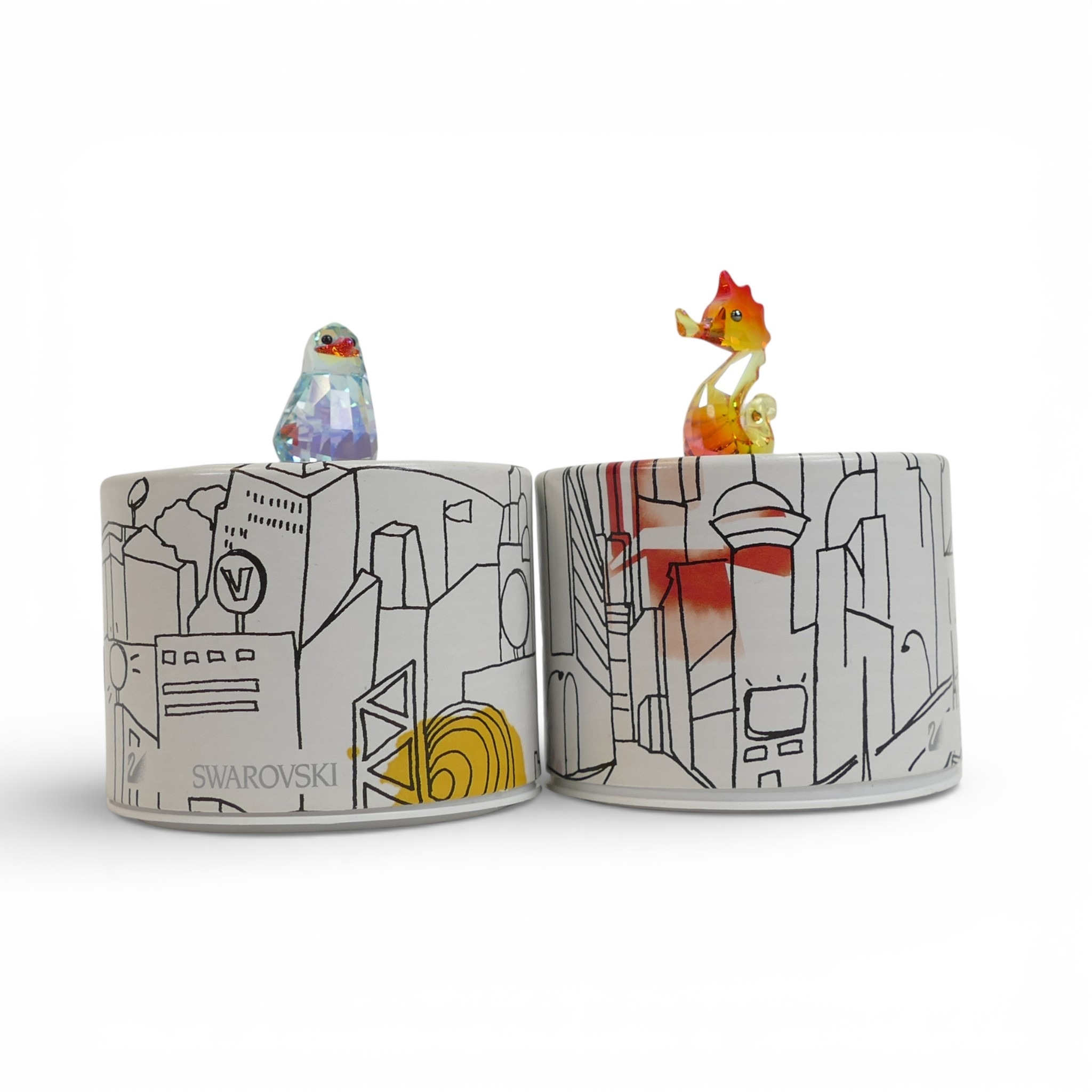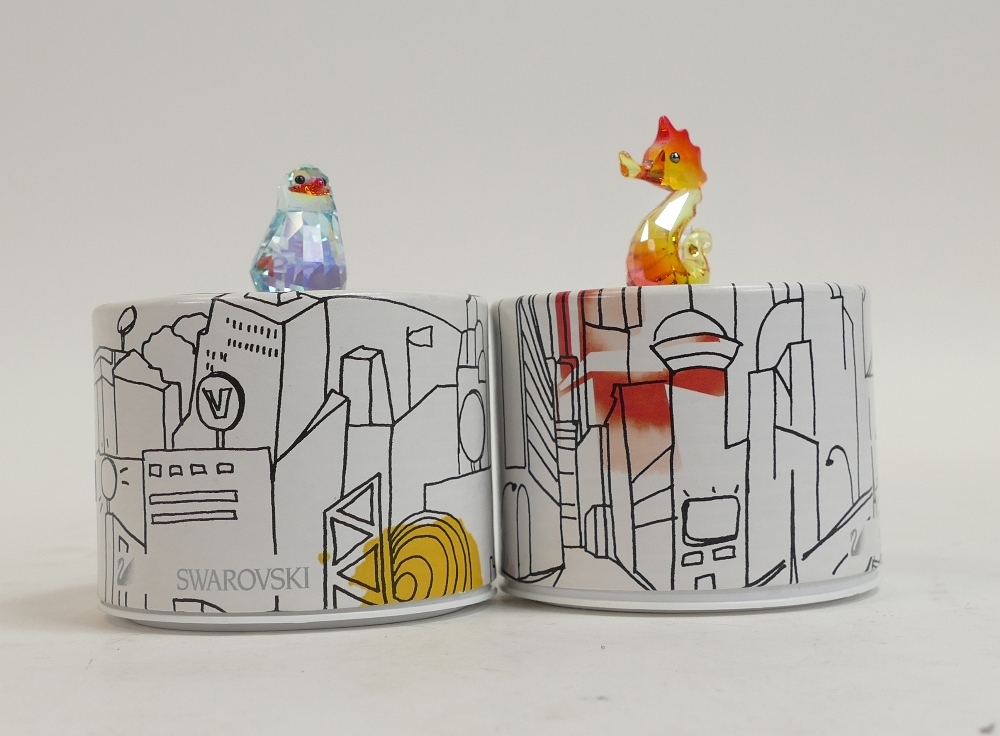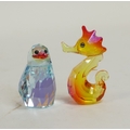 Swarovski Crystal Johnny The Penguin (1115219) Lovlots Sealife Collection retired 2014 designed by Peter Heidegger together with Gina The Seahorse (1121757) designed by Edith Mair, retired 2014. Tallest:-4cm. boxed with certificate of authenticity. (2)