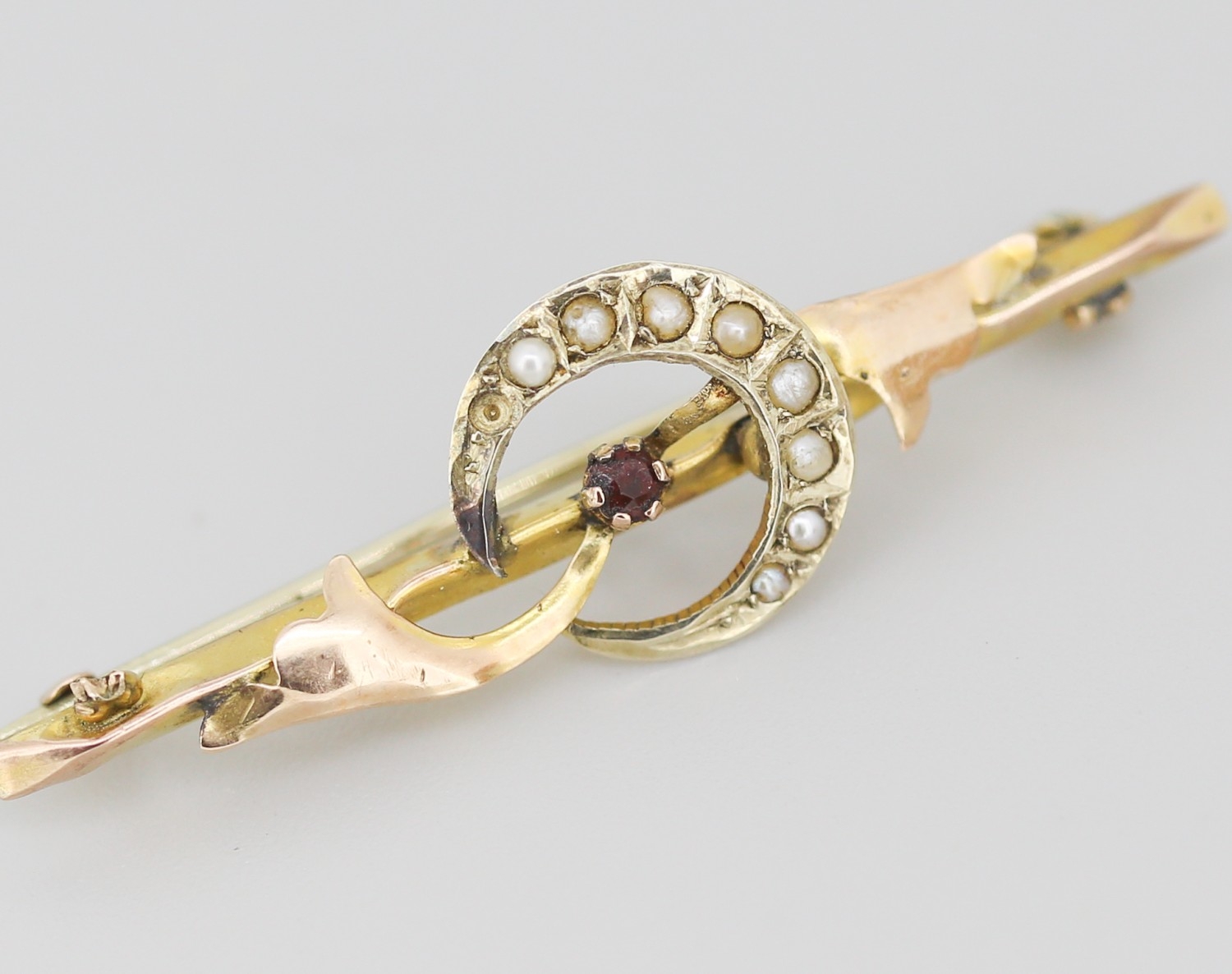 Attractively Detailed Seed Pearl and Garnet Set Brooch 4.5cm