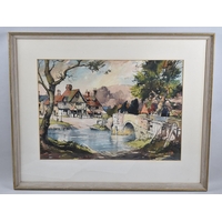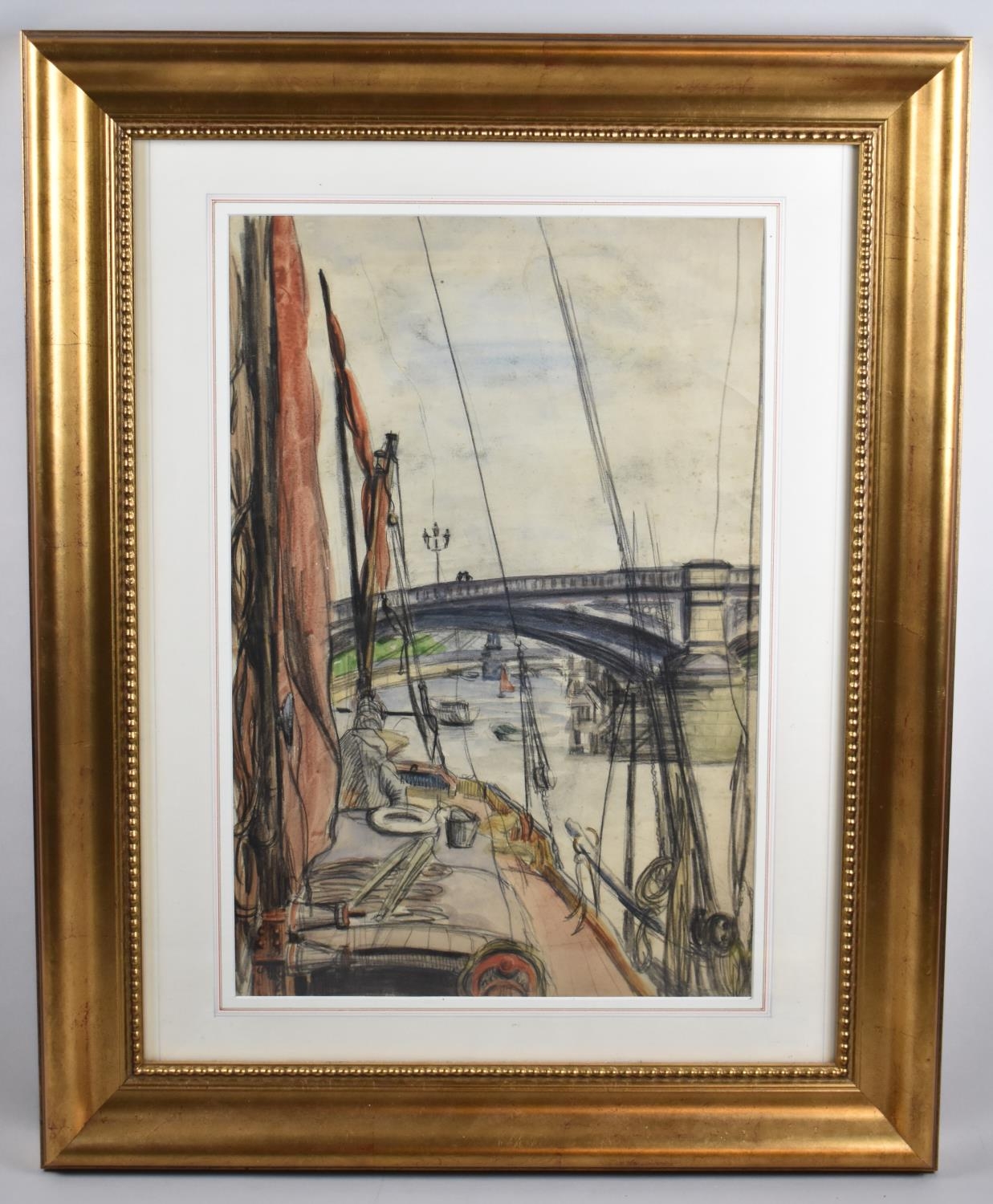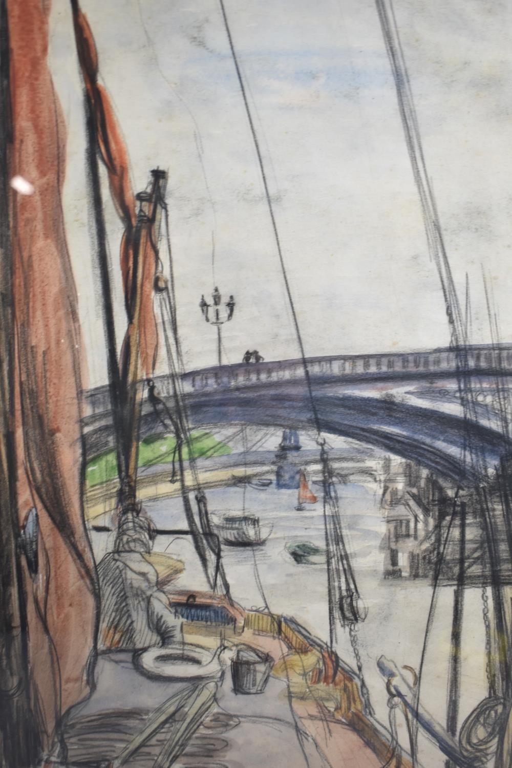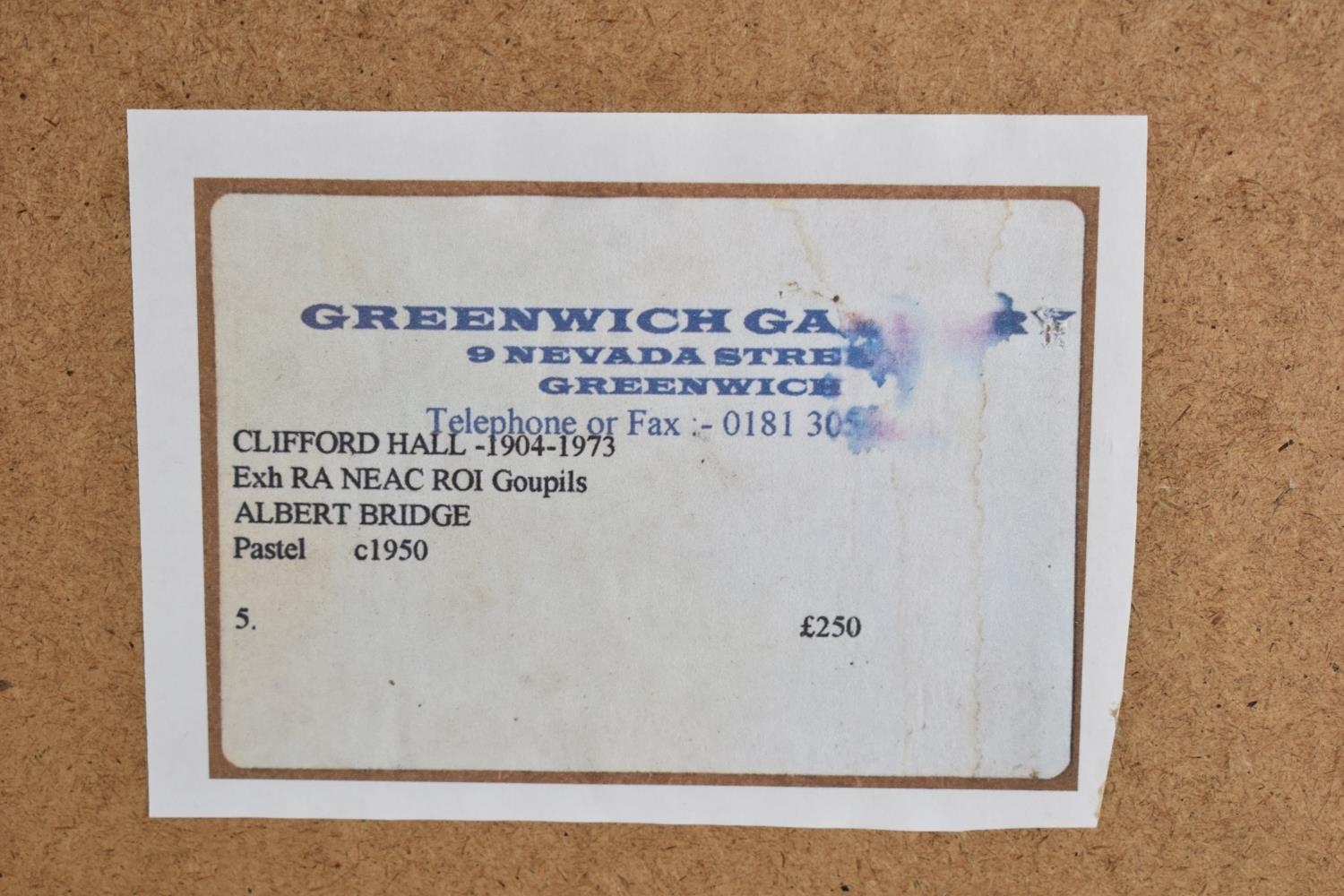 WITHDRAWN . A Framed Pastel, Albert Bridge by Clifford Hall (1904-1973) c.1950, 34x50cm