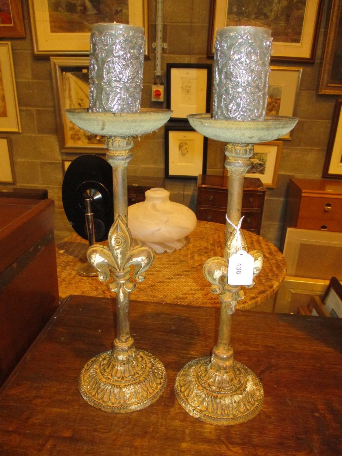 Pair of Antique Style Metal Candle Stands, 41cm