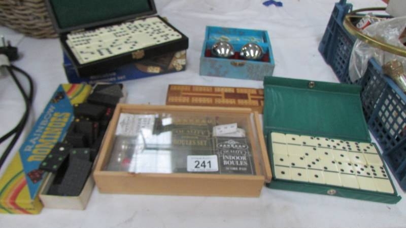 Three sets of dominoes, crib board etc.,