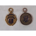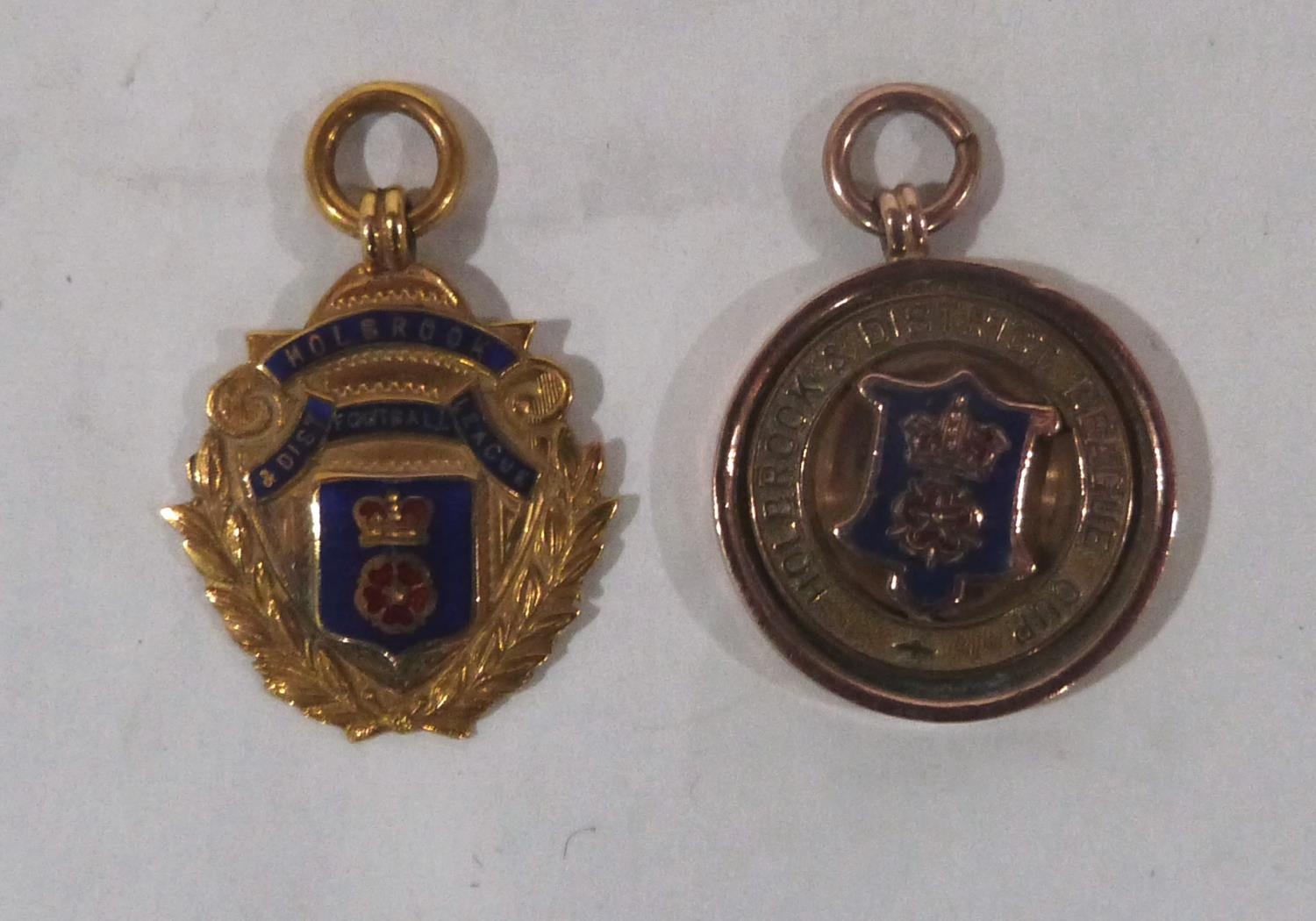 Two 9ct and enamel soccer medals, Holbrook League Cup. 16.2g