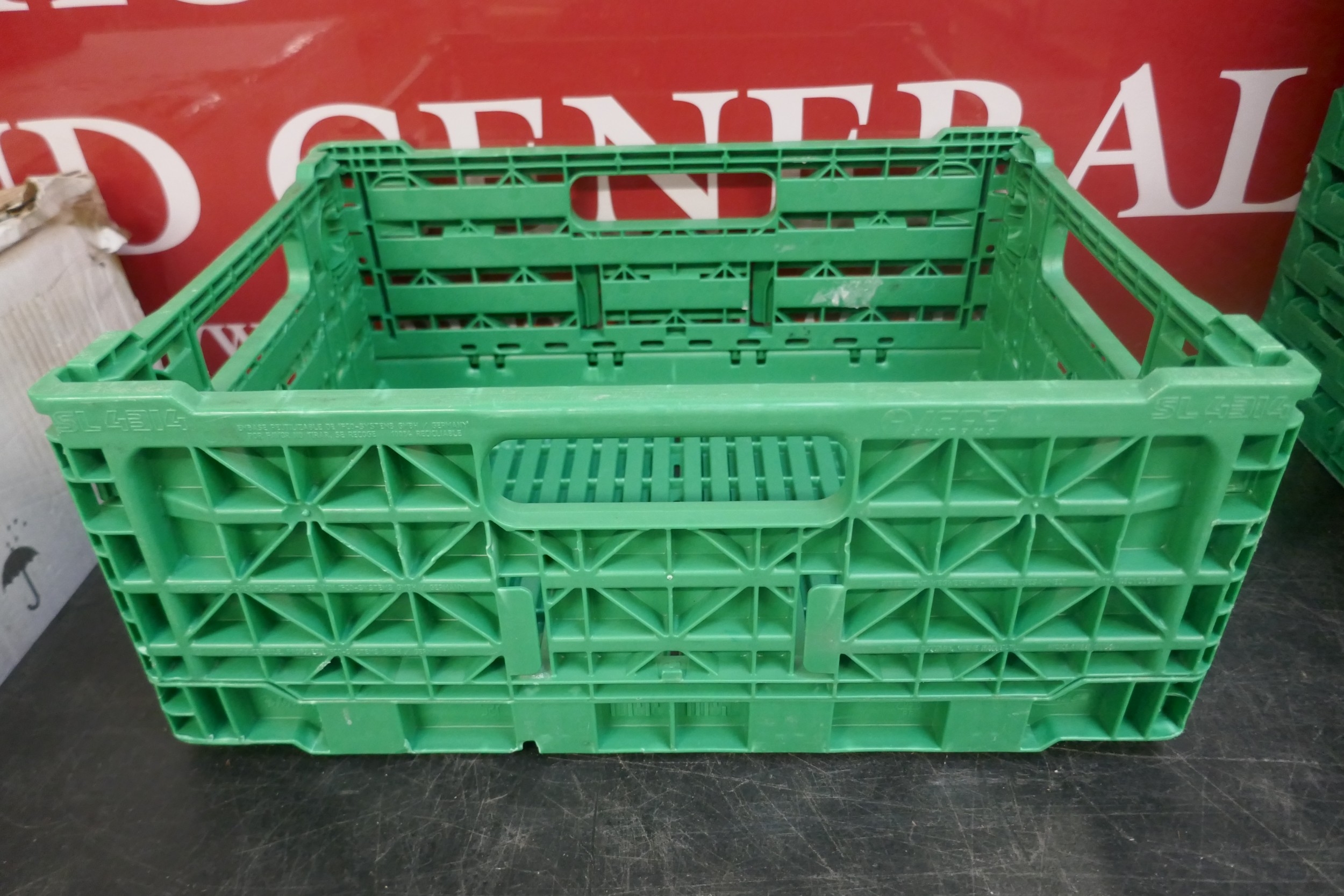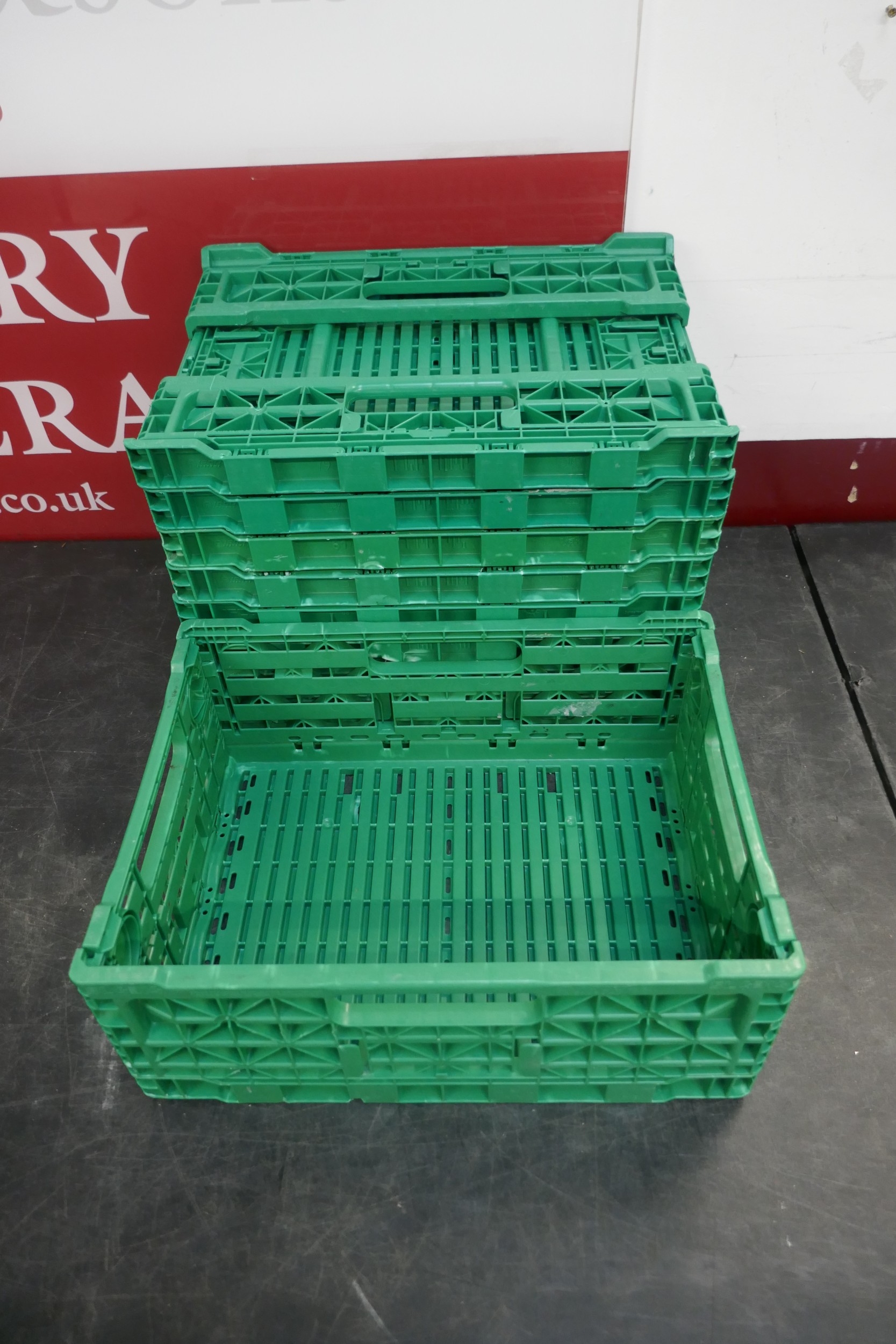 10 x green plastic folding stackable crates