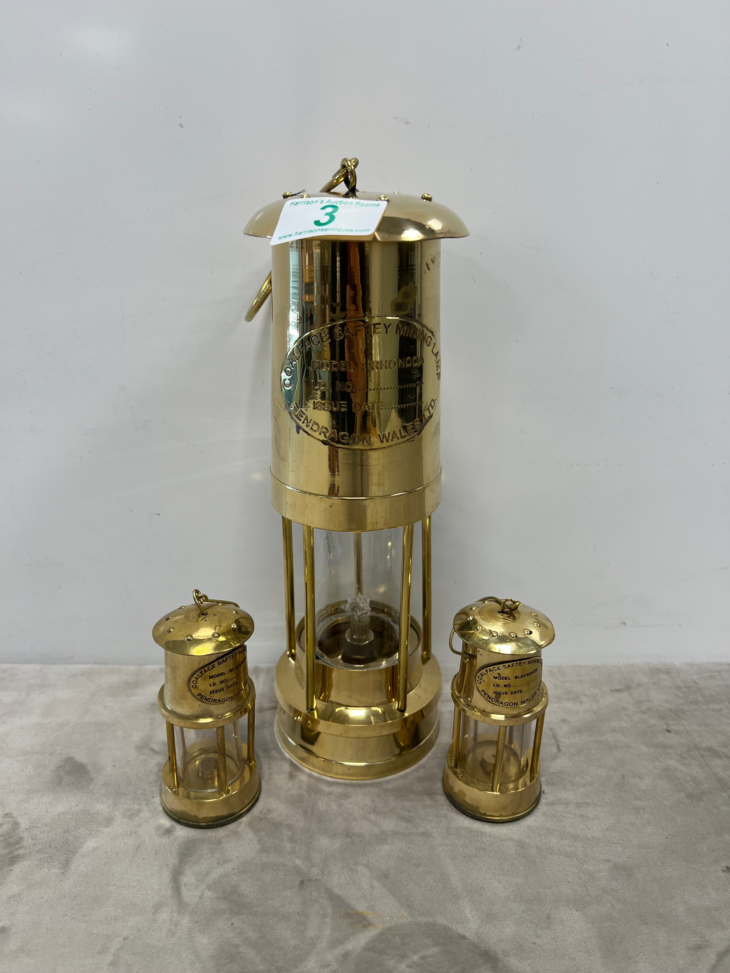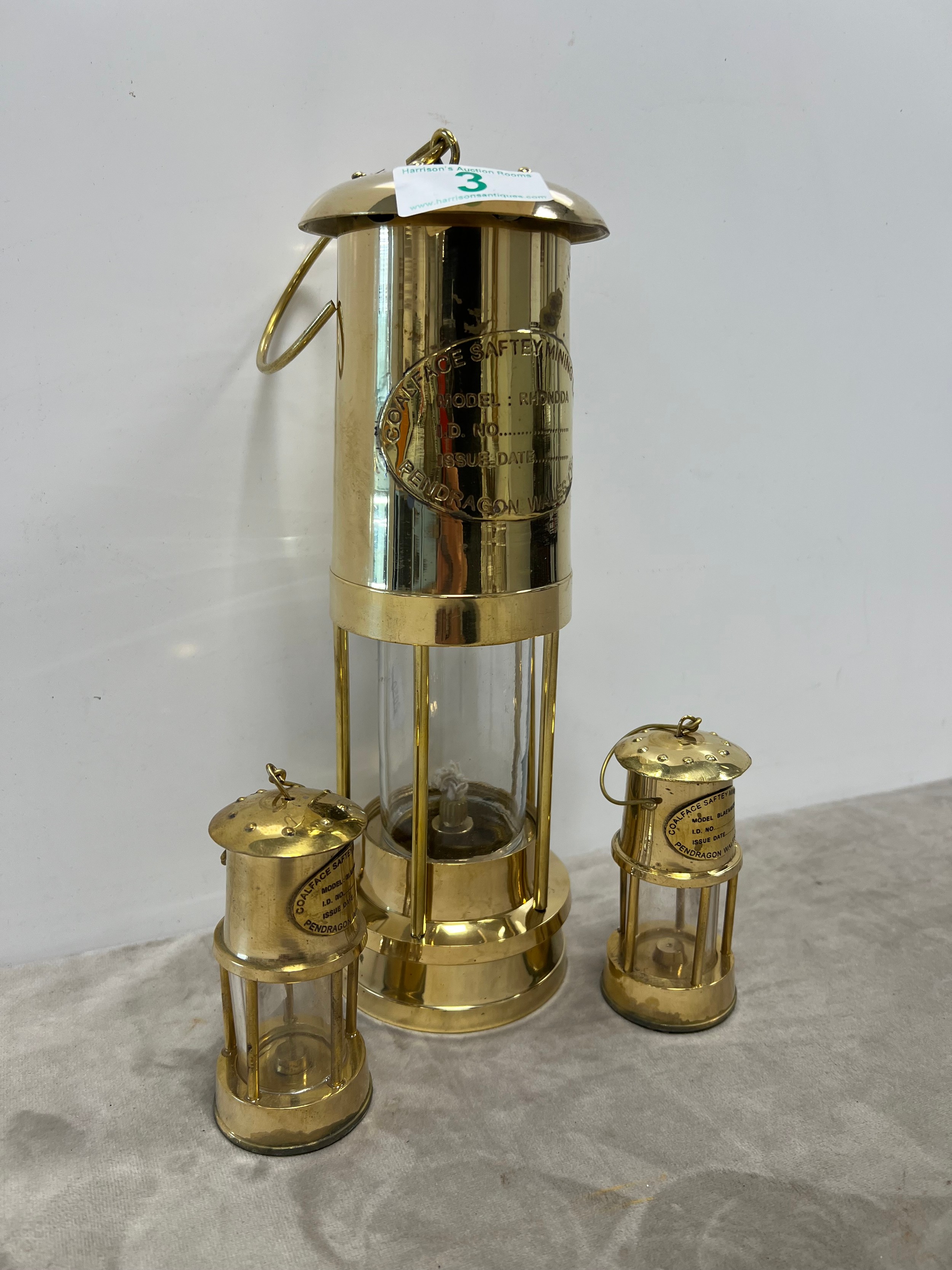 1 Large & 2 small brass miners lamps