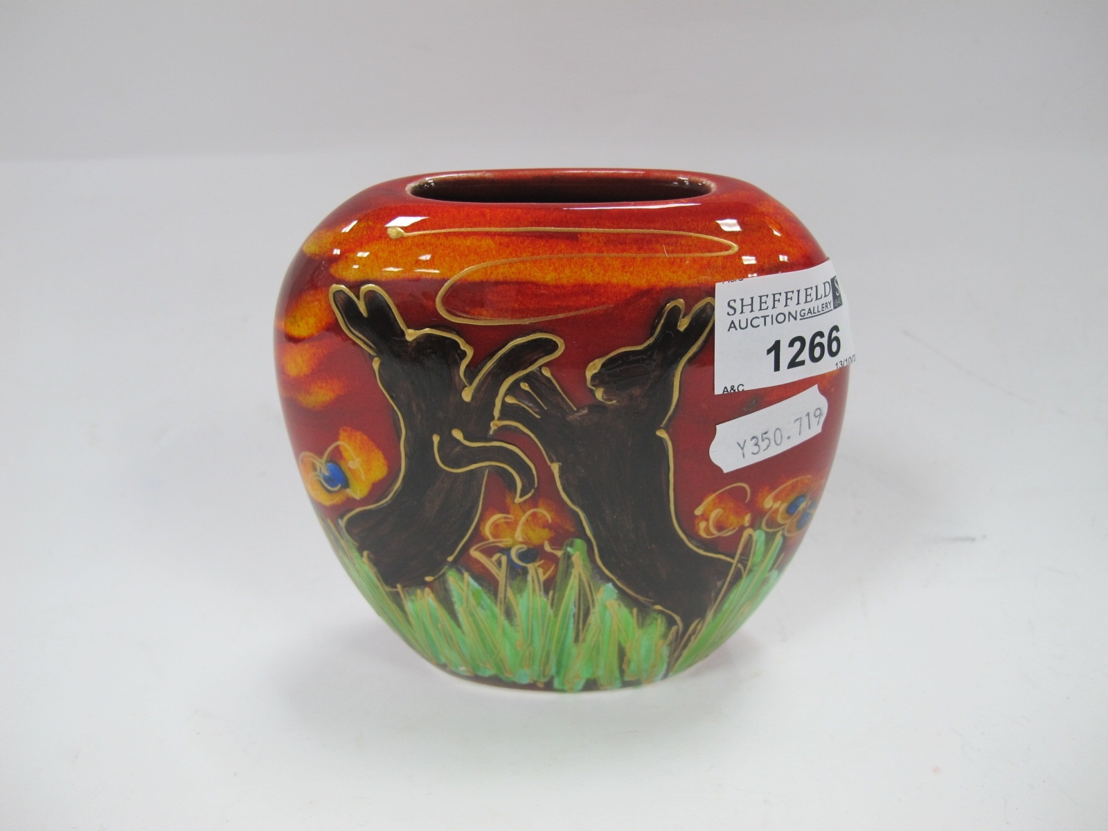 Anita Harris 'Boxing Hares' Delta Vase, gold signed, 12cm high.