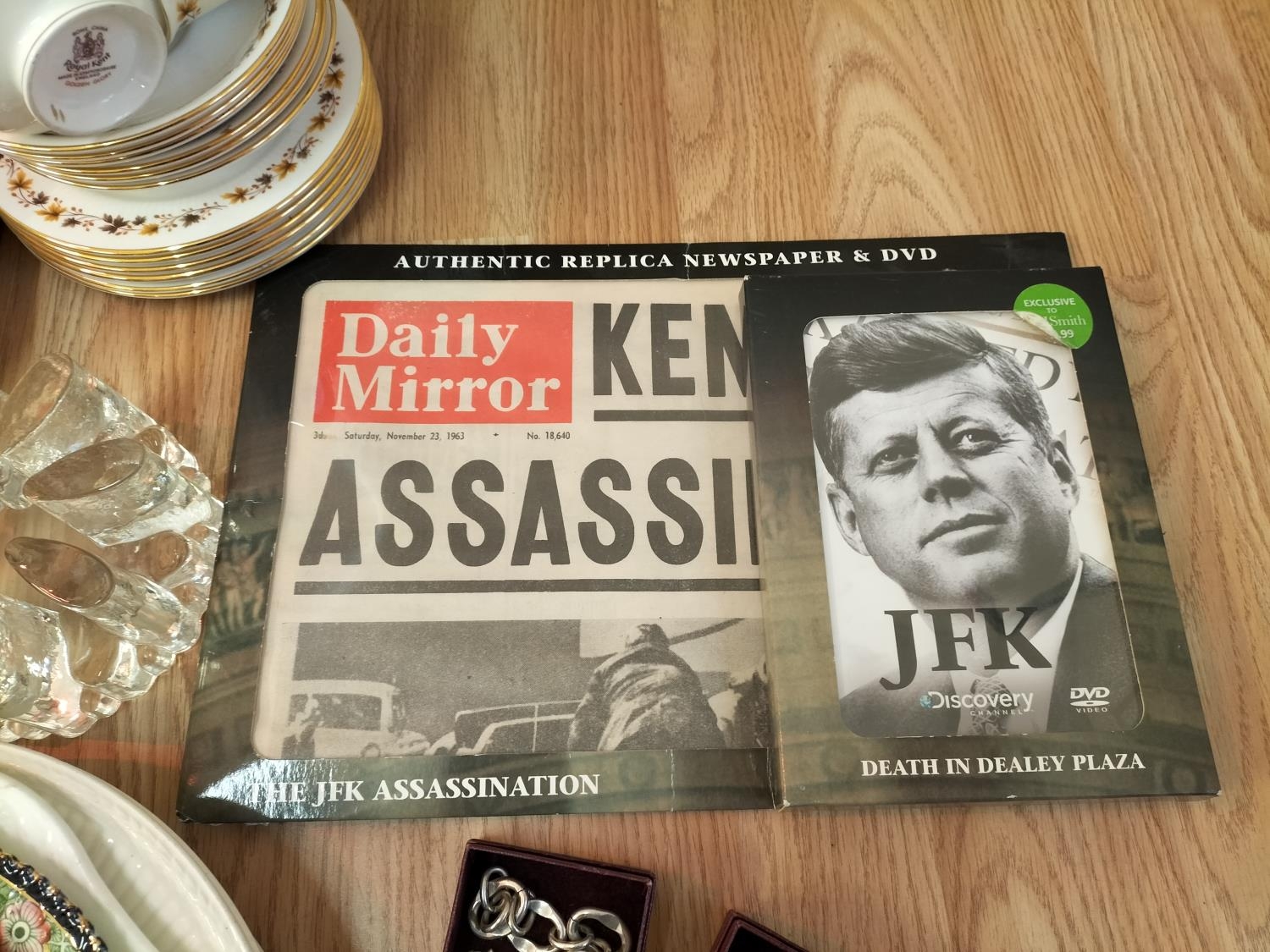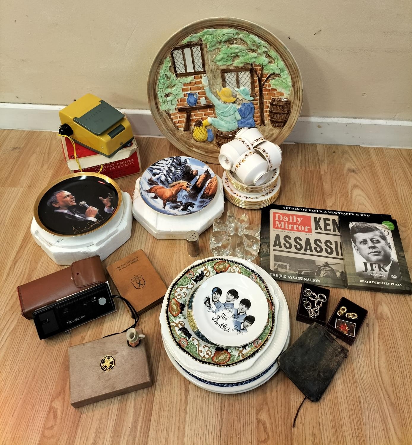 Collection of Mxed Items to include Large 42cm H.J.Woods Wall Charger, Kennedy Assassination Papers, etc.