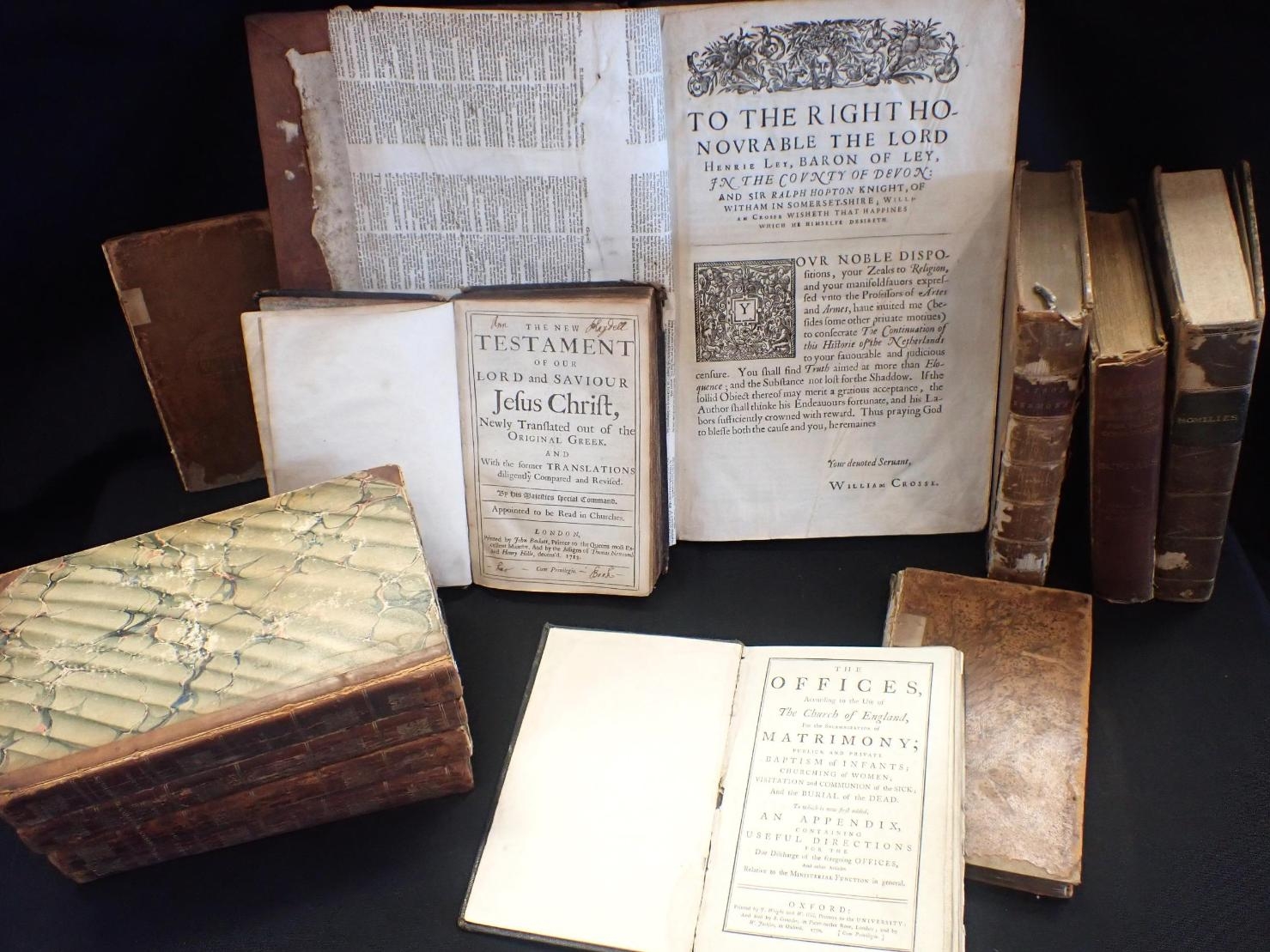 WILLIAM CROSSE:'HISTORIE OF THE NETHERLANDS' 1608-1627 (one vol), with a New Testament, printed by John Baskett, 1713, and other books