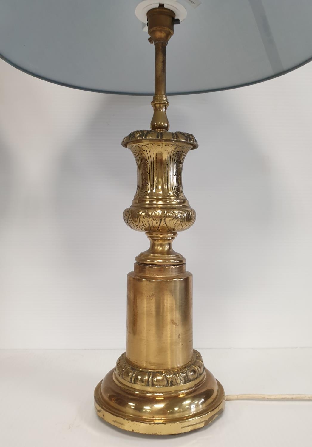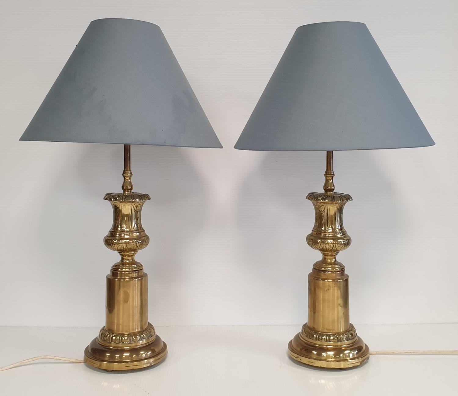 Pair of Brass Table Lamps with Shades, Height 64cm