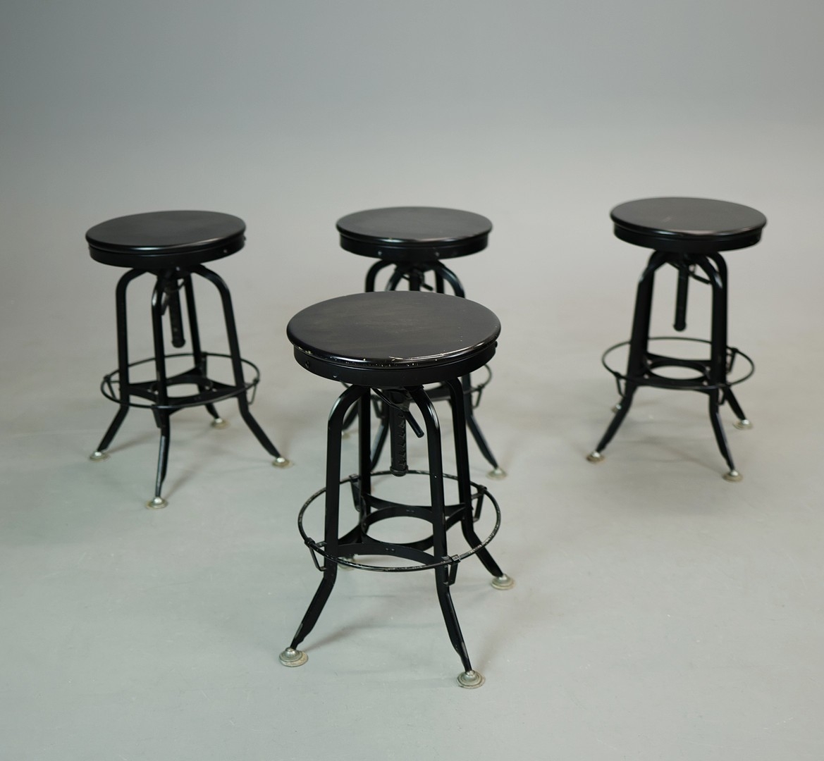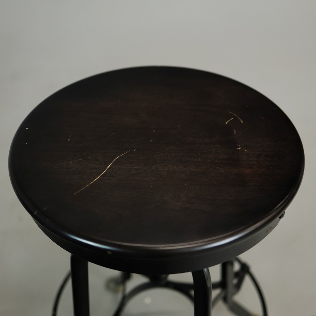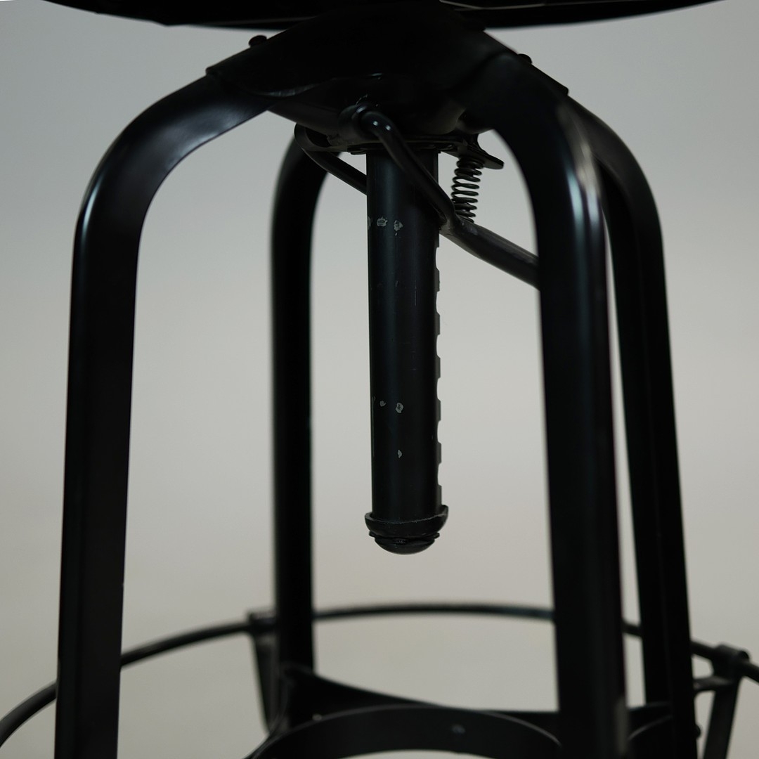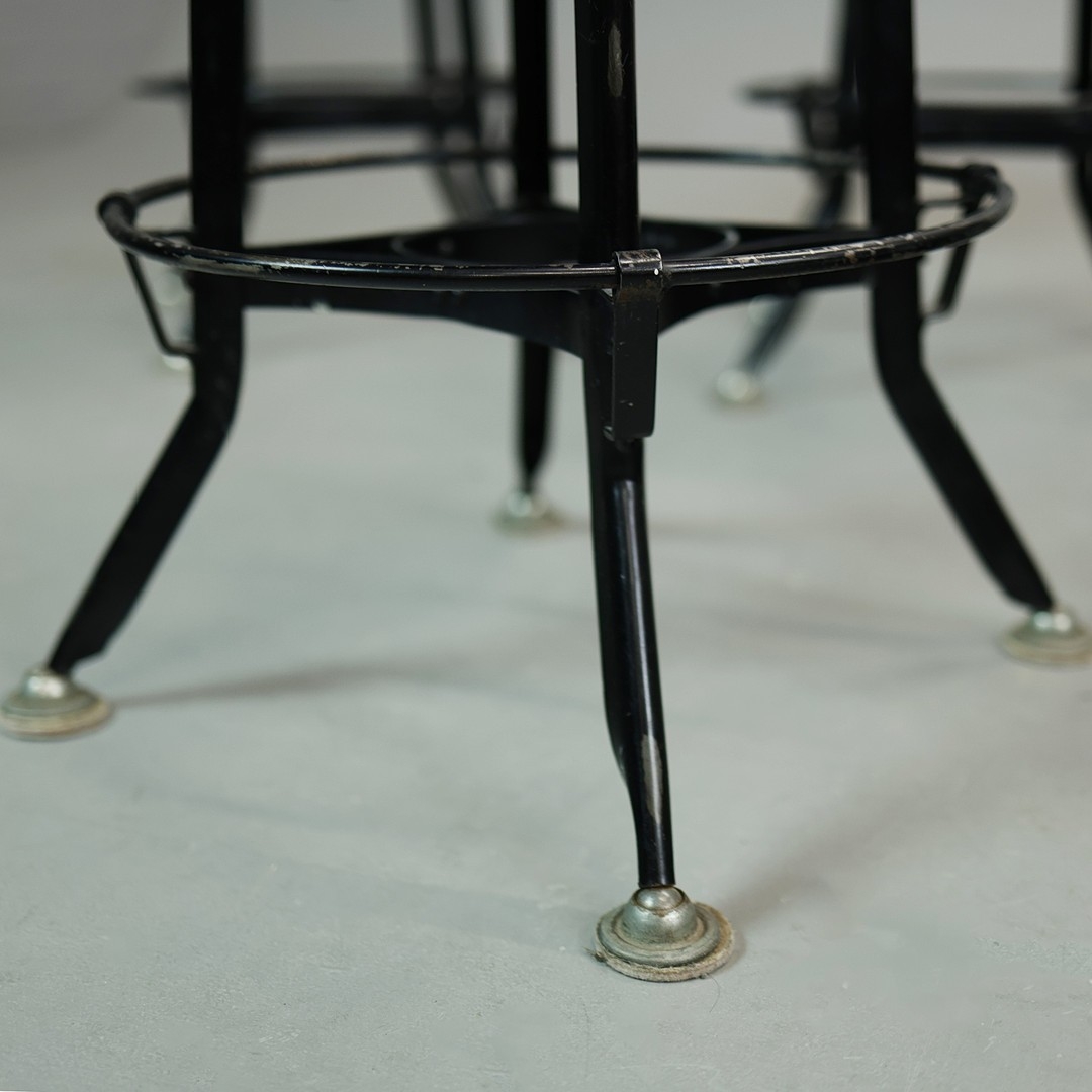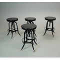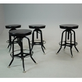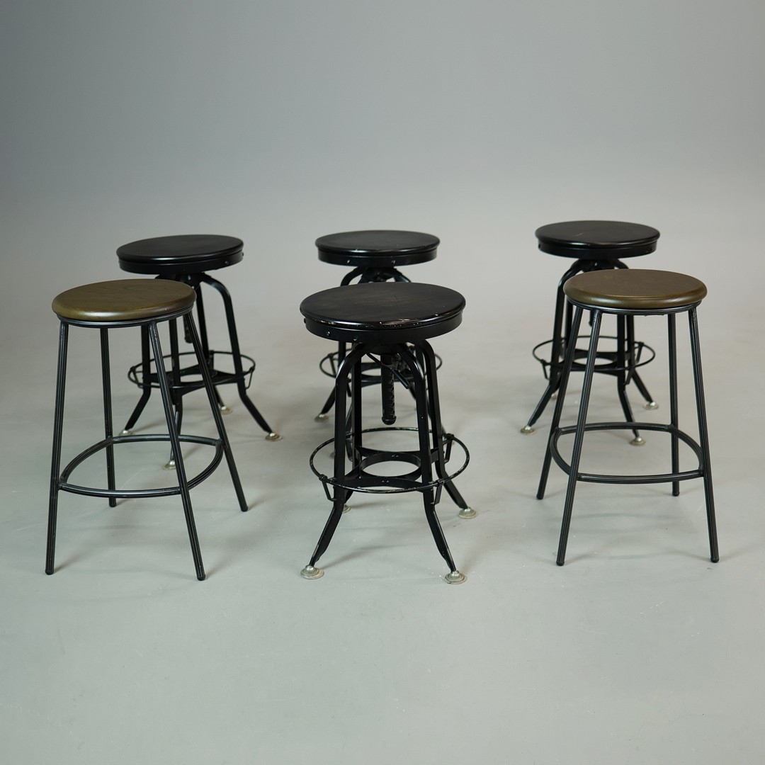 STOOLS, FOUR, AND TWO OTHERS IN A DIFFERING STYLE (6). the first four industrial style ,adjustable a each 40cm w x 66cm t w, plus tow others 67cm t x 35cm w (6).