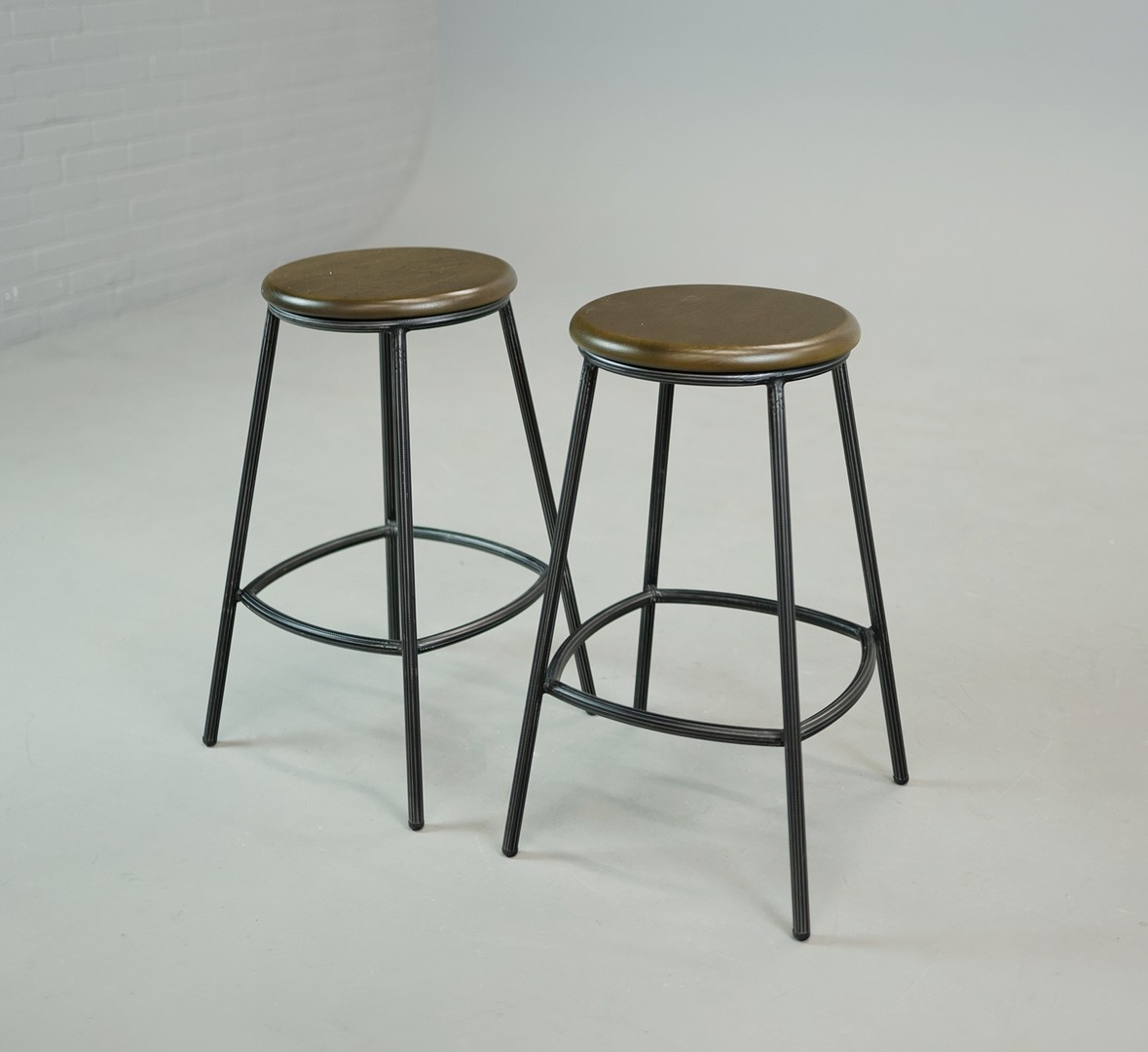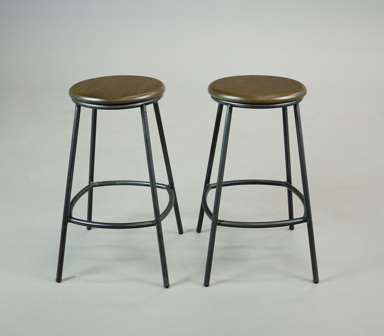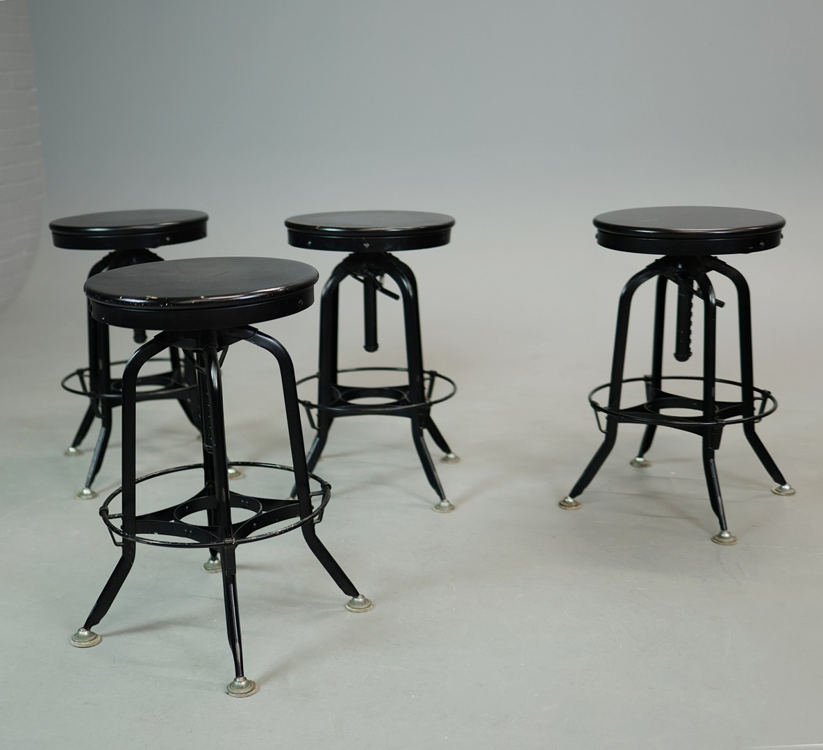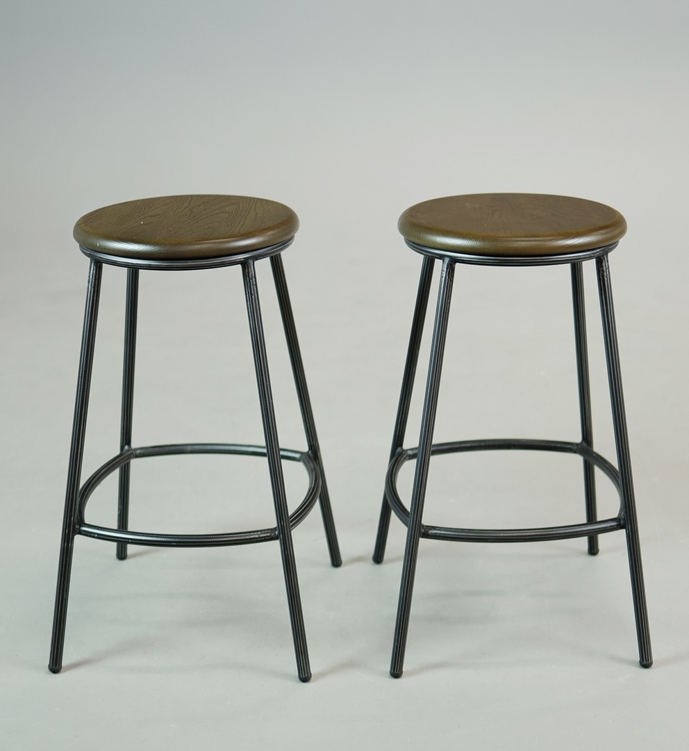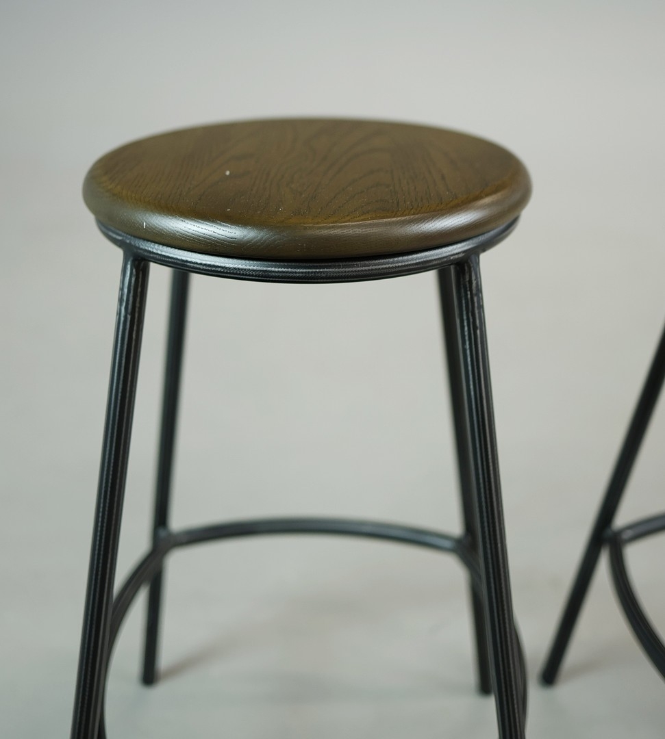 STOOLS, FOUR, AND TWO OTHERS IN A DIFFERING STYLE (6). the first four industrial style ,adjustable a each 40cm w x 66cm t w, plus tow others 67cm t x 35cm w (6).