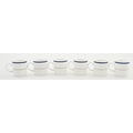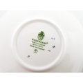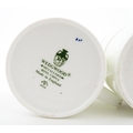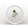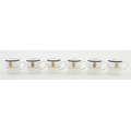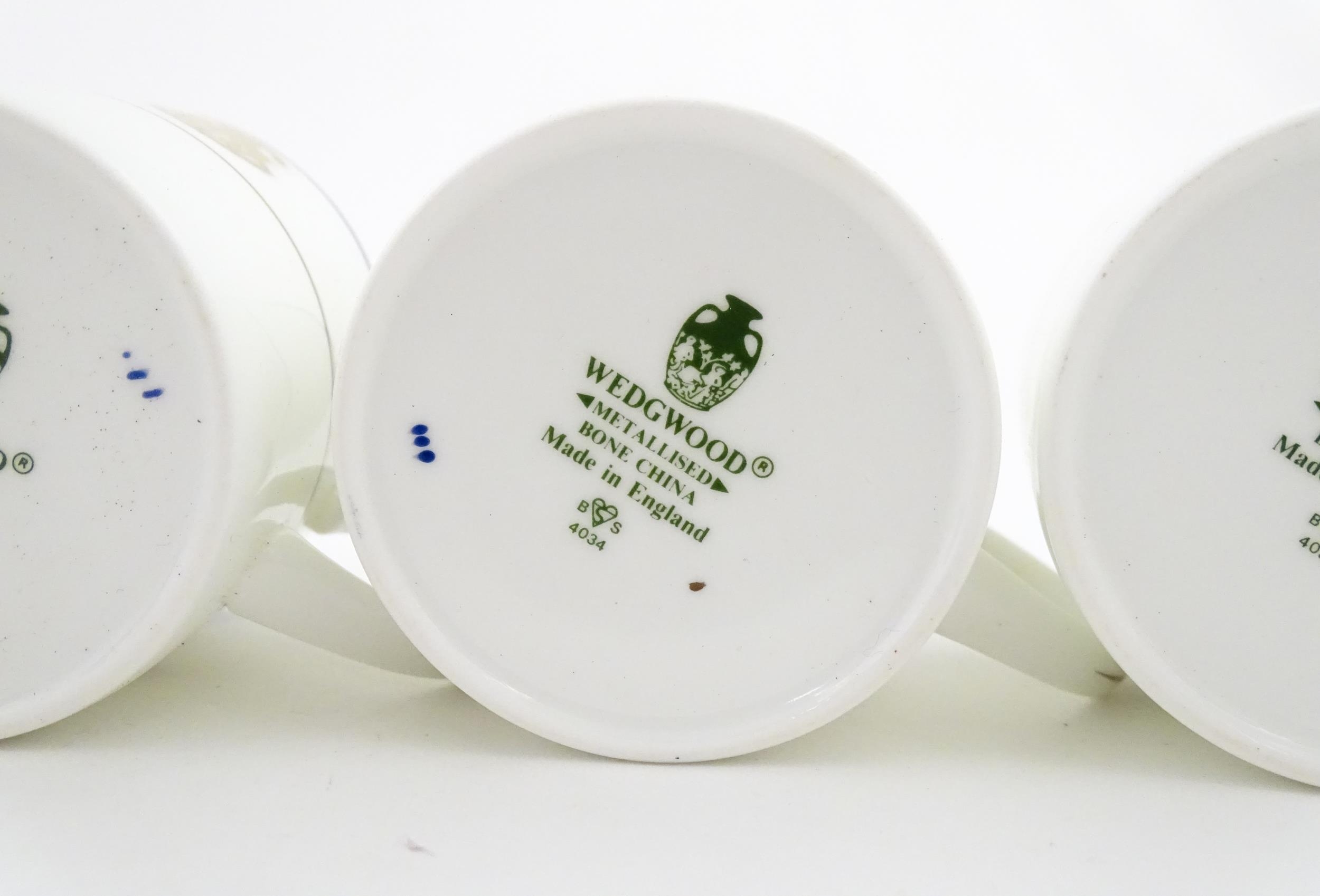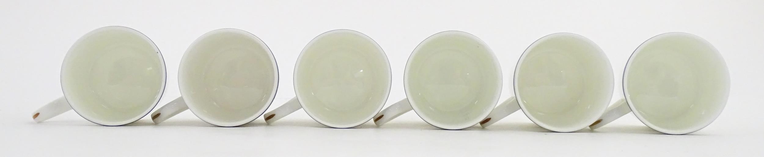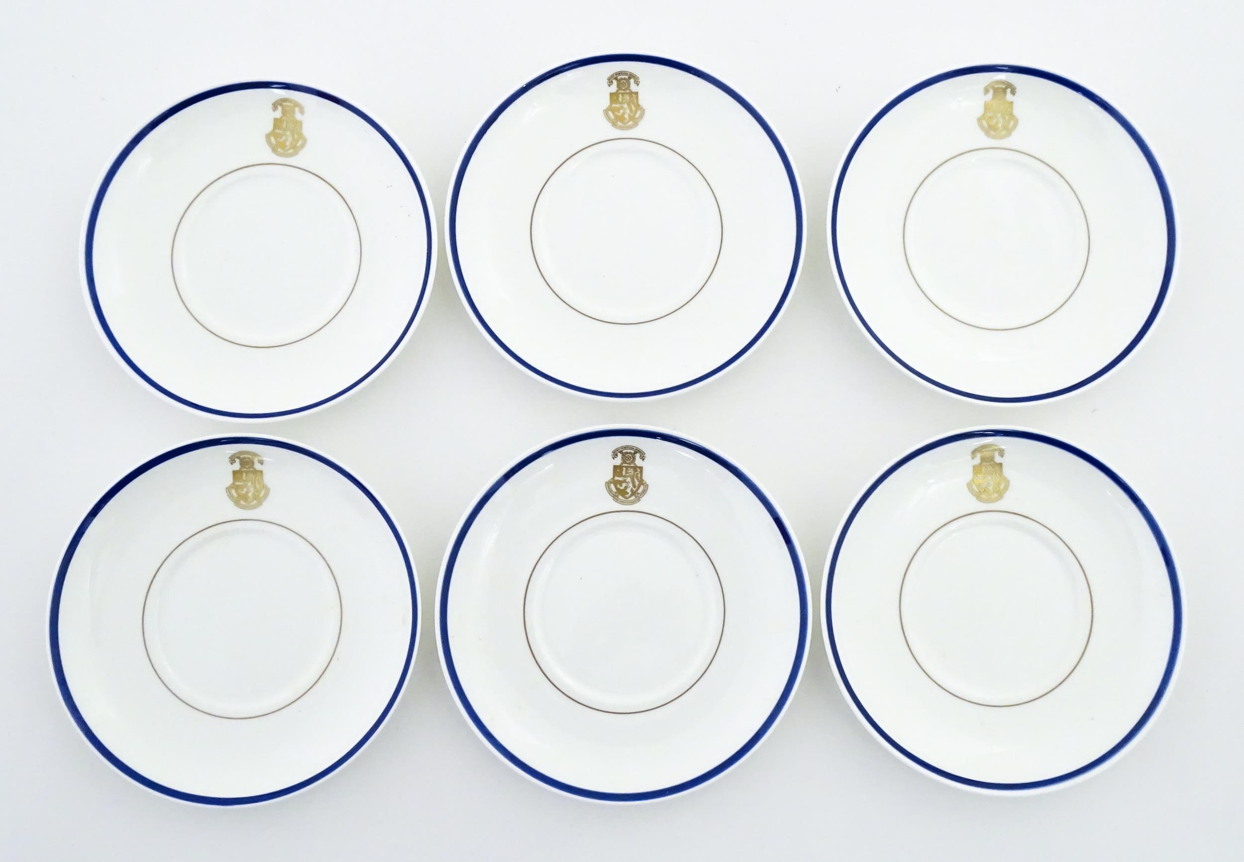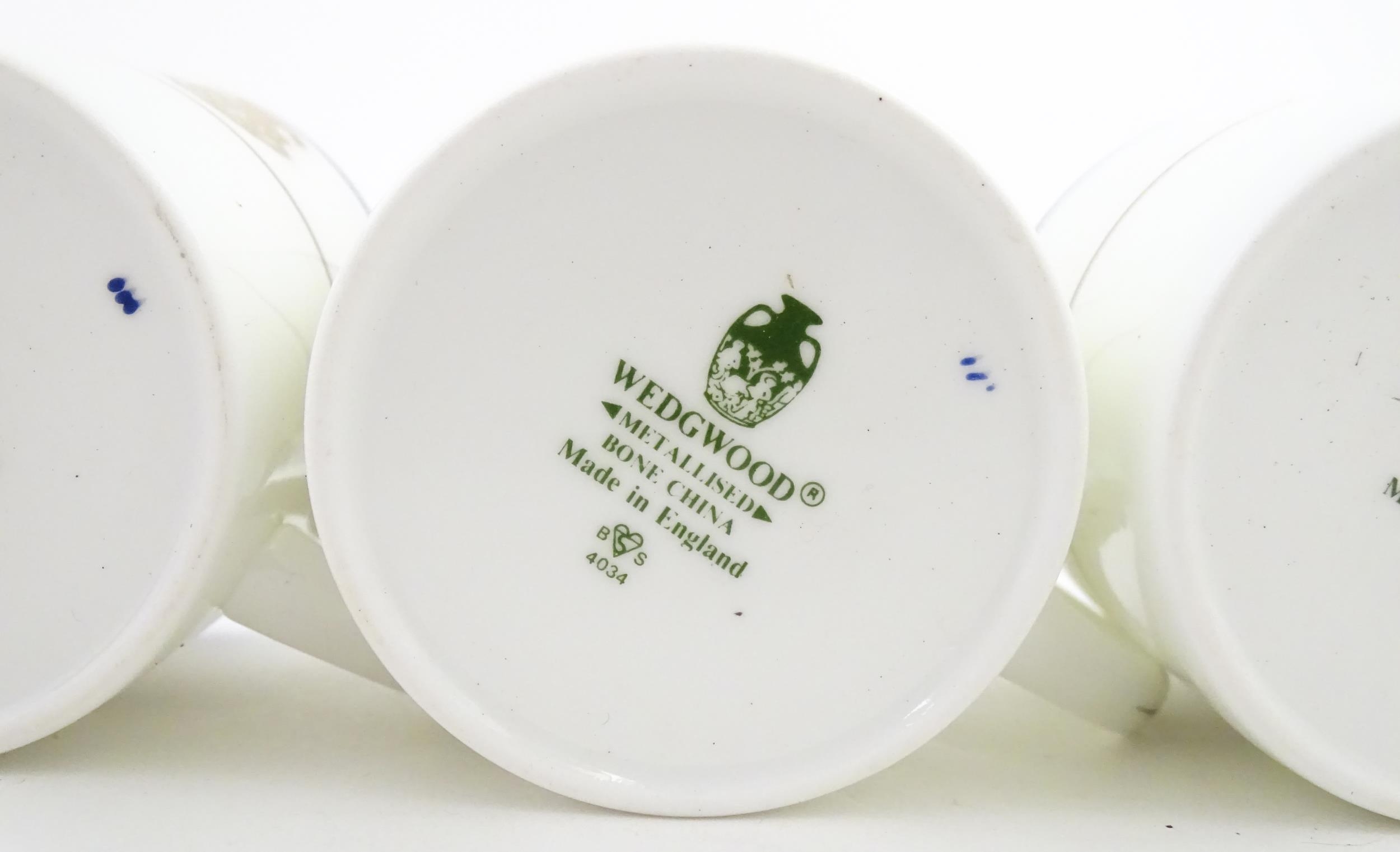 A set of six Wedgwood coffee cups and saucers with gilt Harrow School crest detail. Box approx. 12 3/4" wide