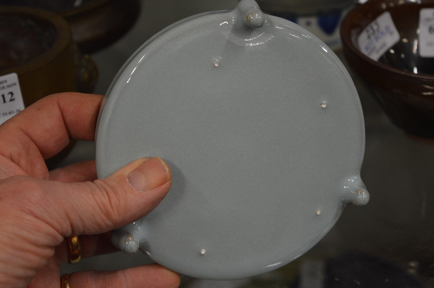 A Chinese pale celadon glazed porcelain brush washer.
