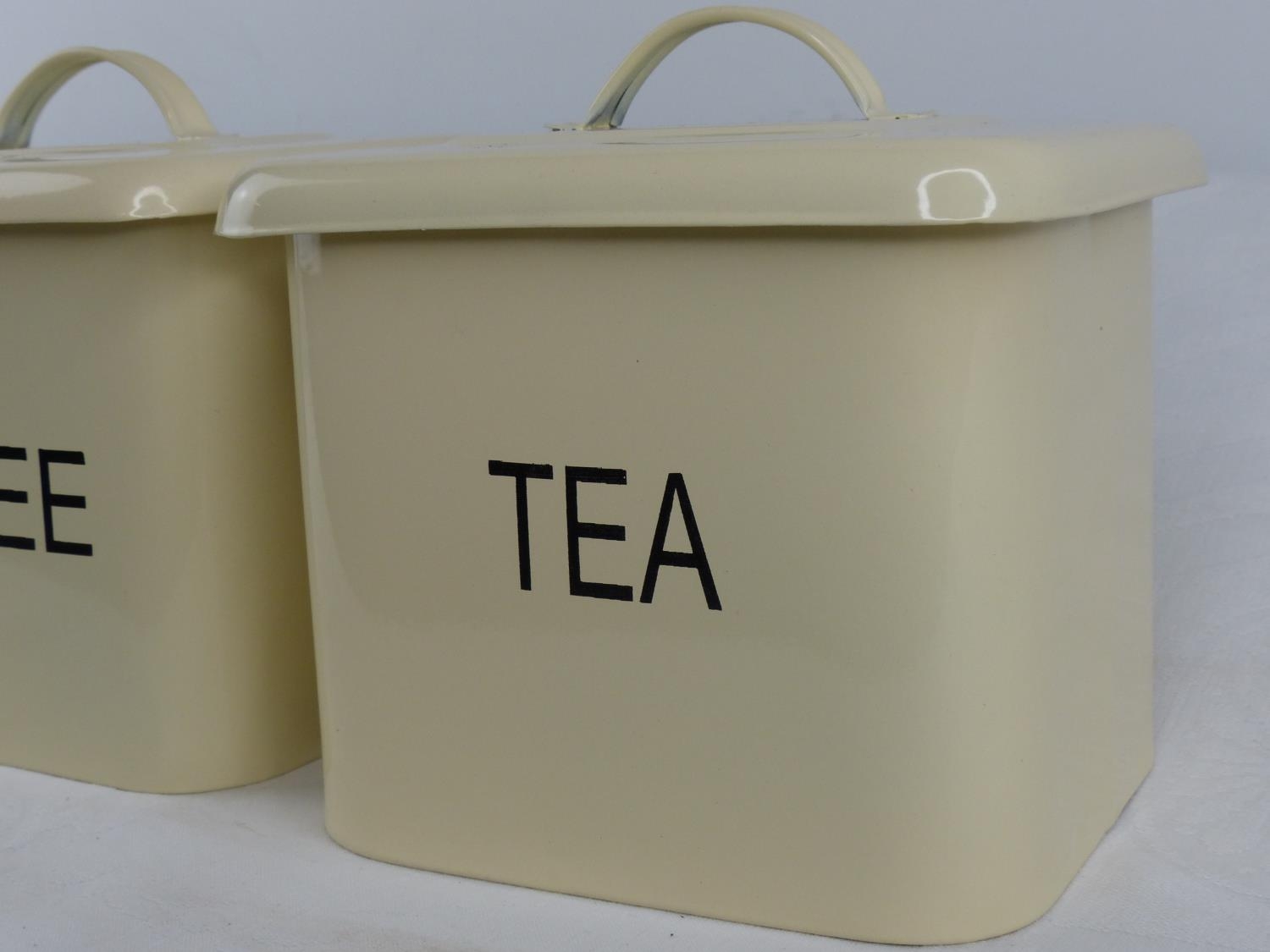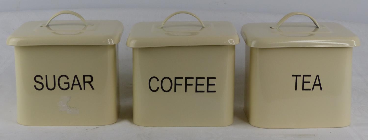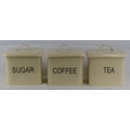 A set of 3 retro style Tea, Coffee and Sugar cannisters.