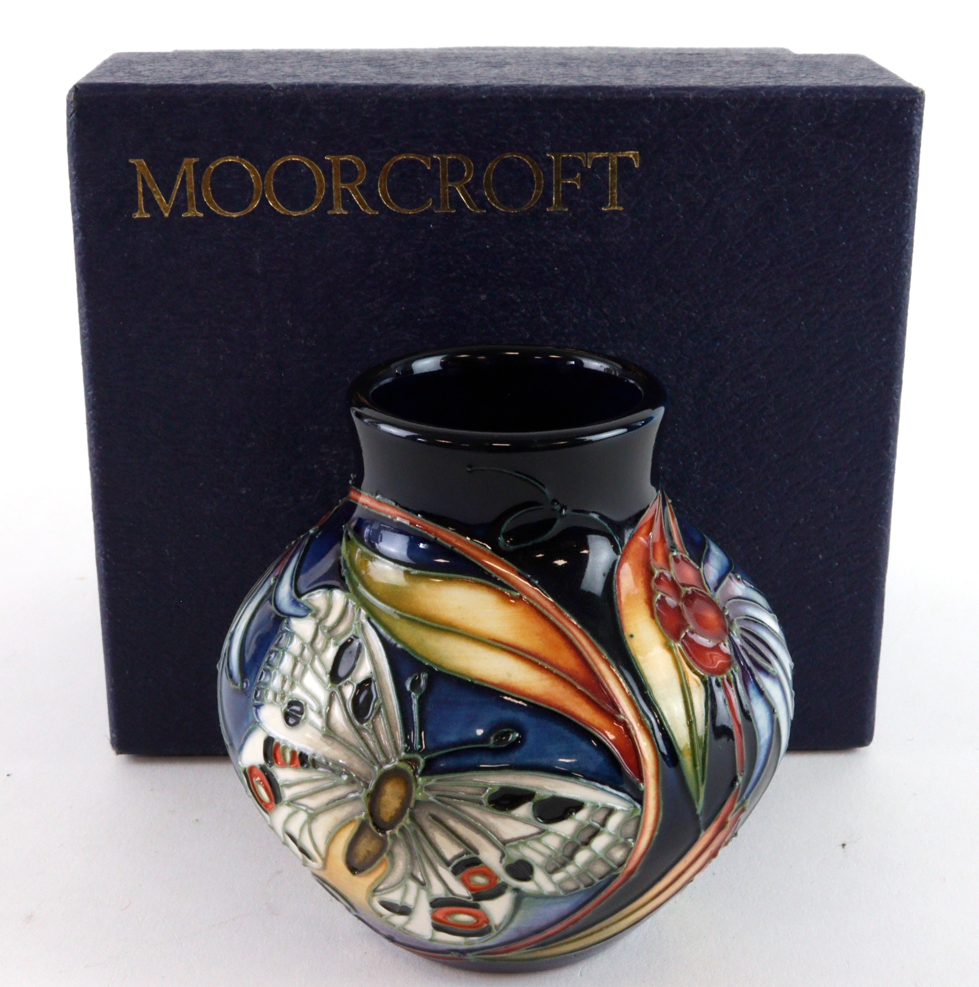 Moorcroft 'Apollo' pattern vase, dated 2005, makers marks to base, height 8cm approx., contained in a Moorcroft box