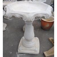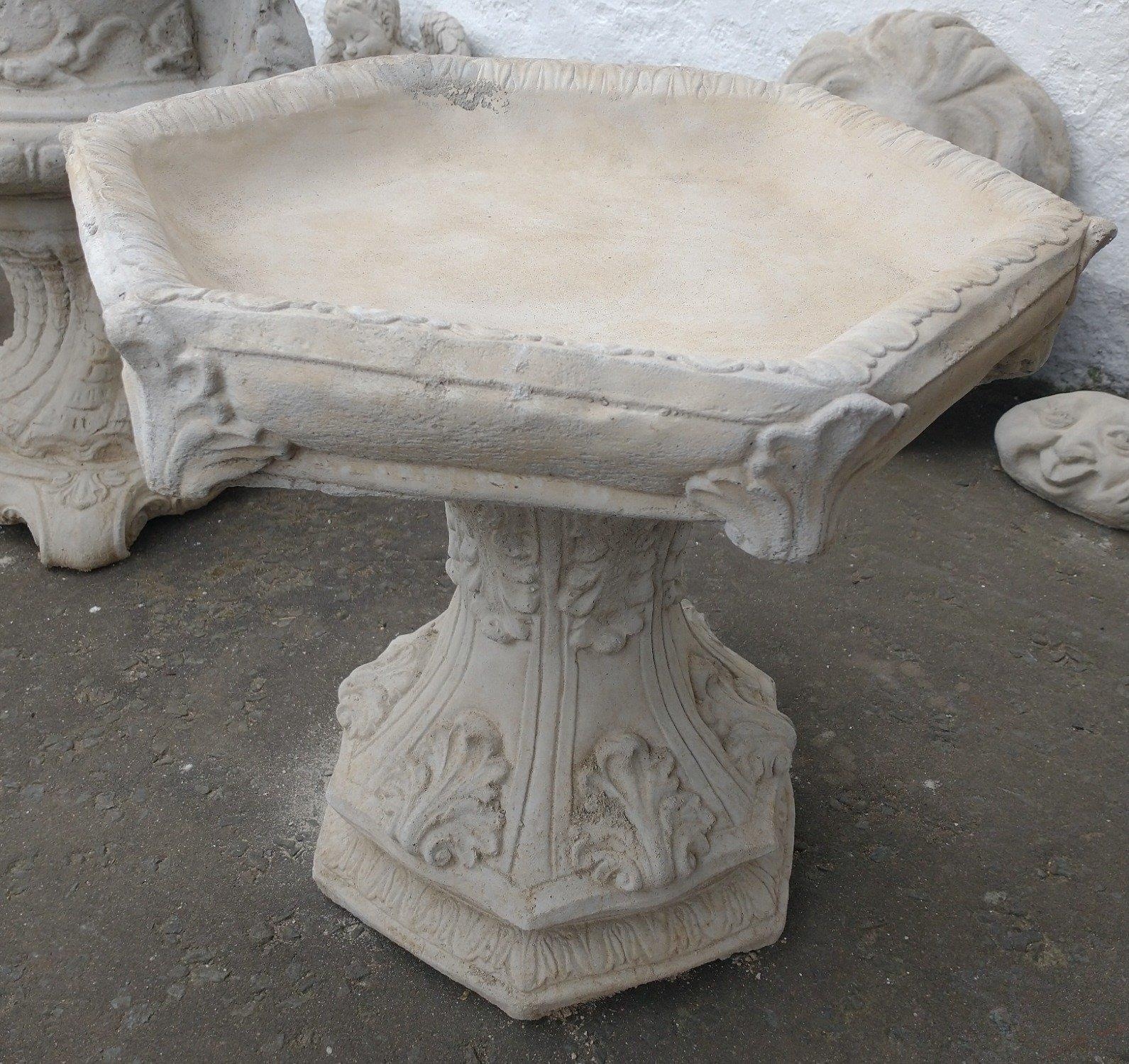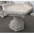 A floral style stonework birdbath with hexagonal top in 2 pieces 47cm dia x 43cmH - brand new item