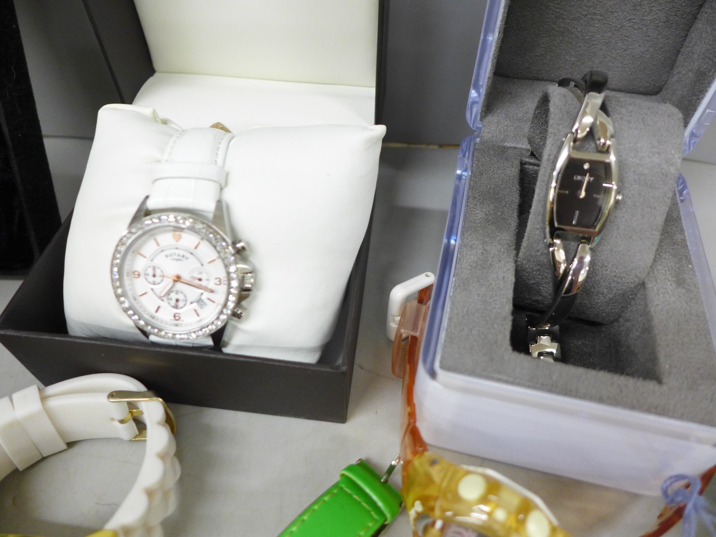 A collection of fashion wristwatches including Baby-G, Rotary, DKNY, Claude Valentini, etc.