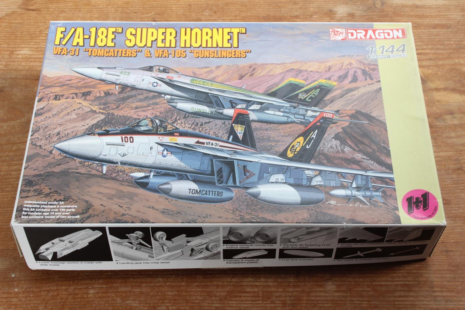 A boxed Dragon F/A-18E Super Hornet VFA-31 'Tomcatters' and 'Gunslingers' model kit.