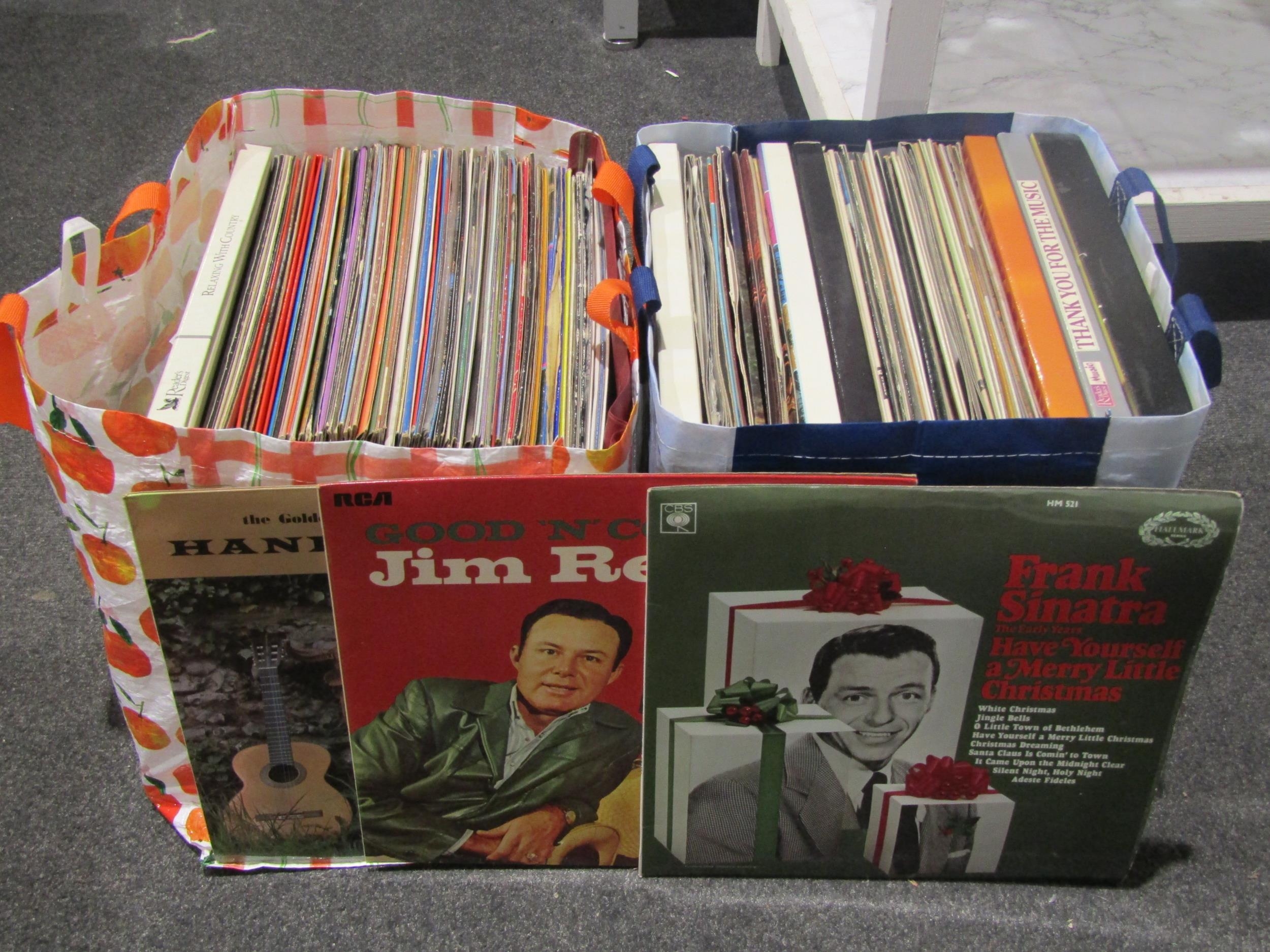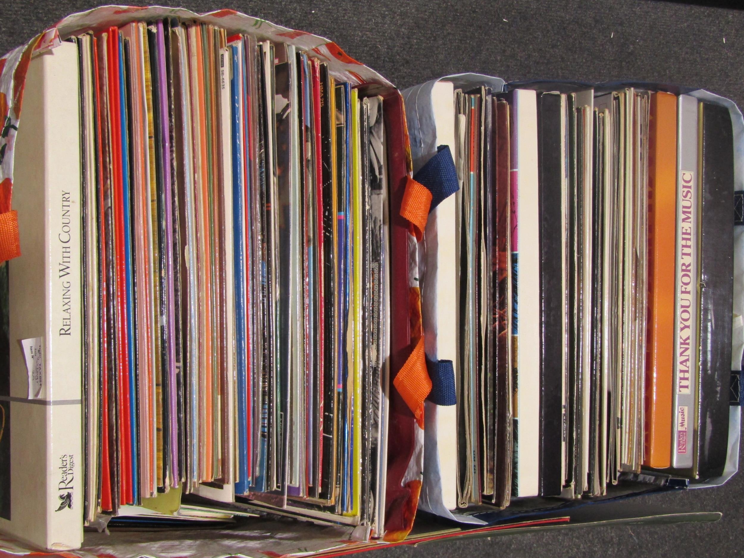 Two bags containing a quantity of vinyl LP records