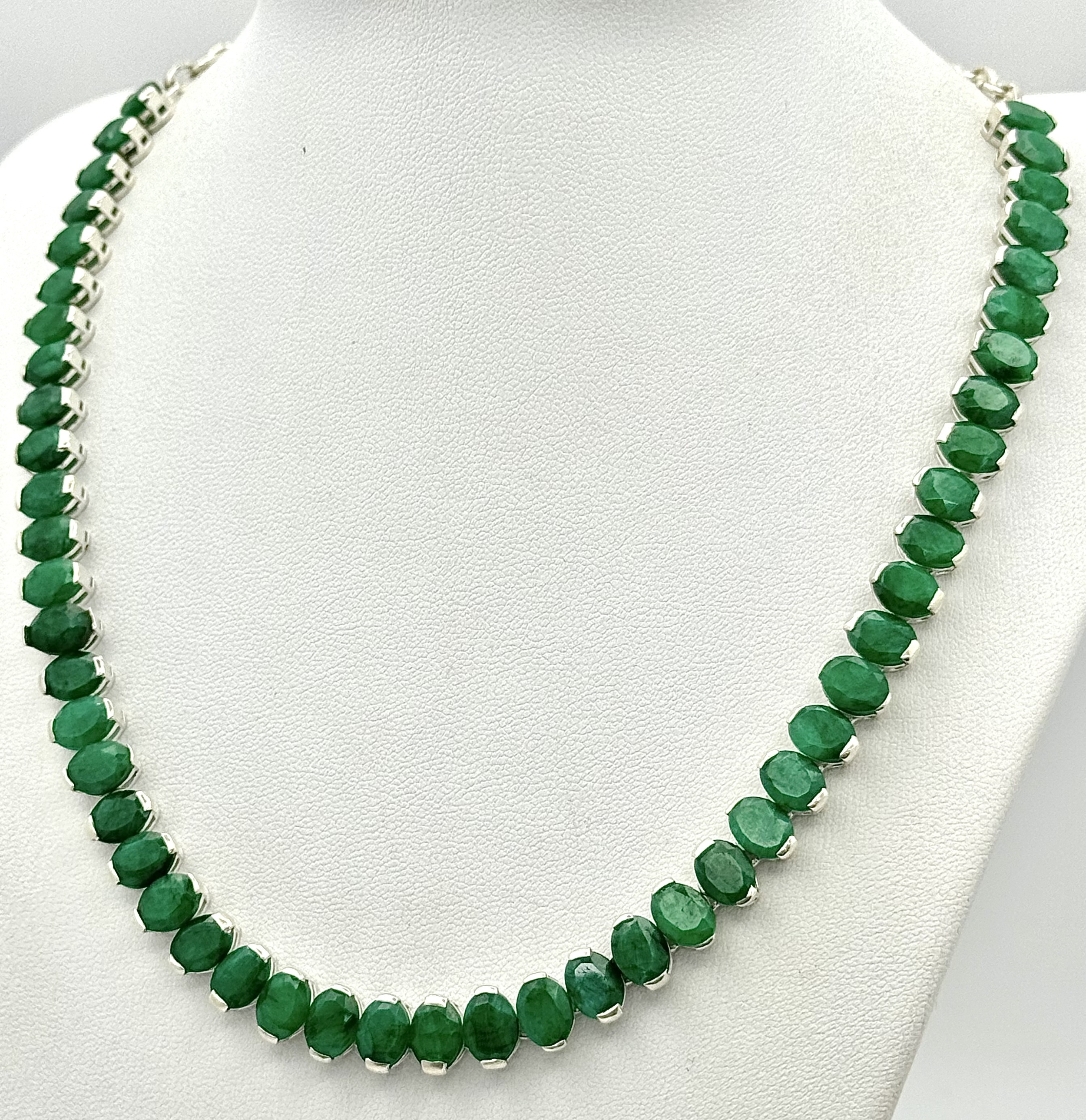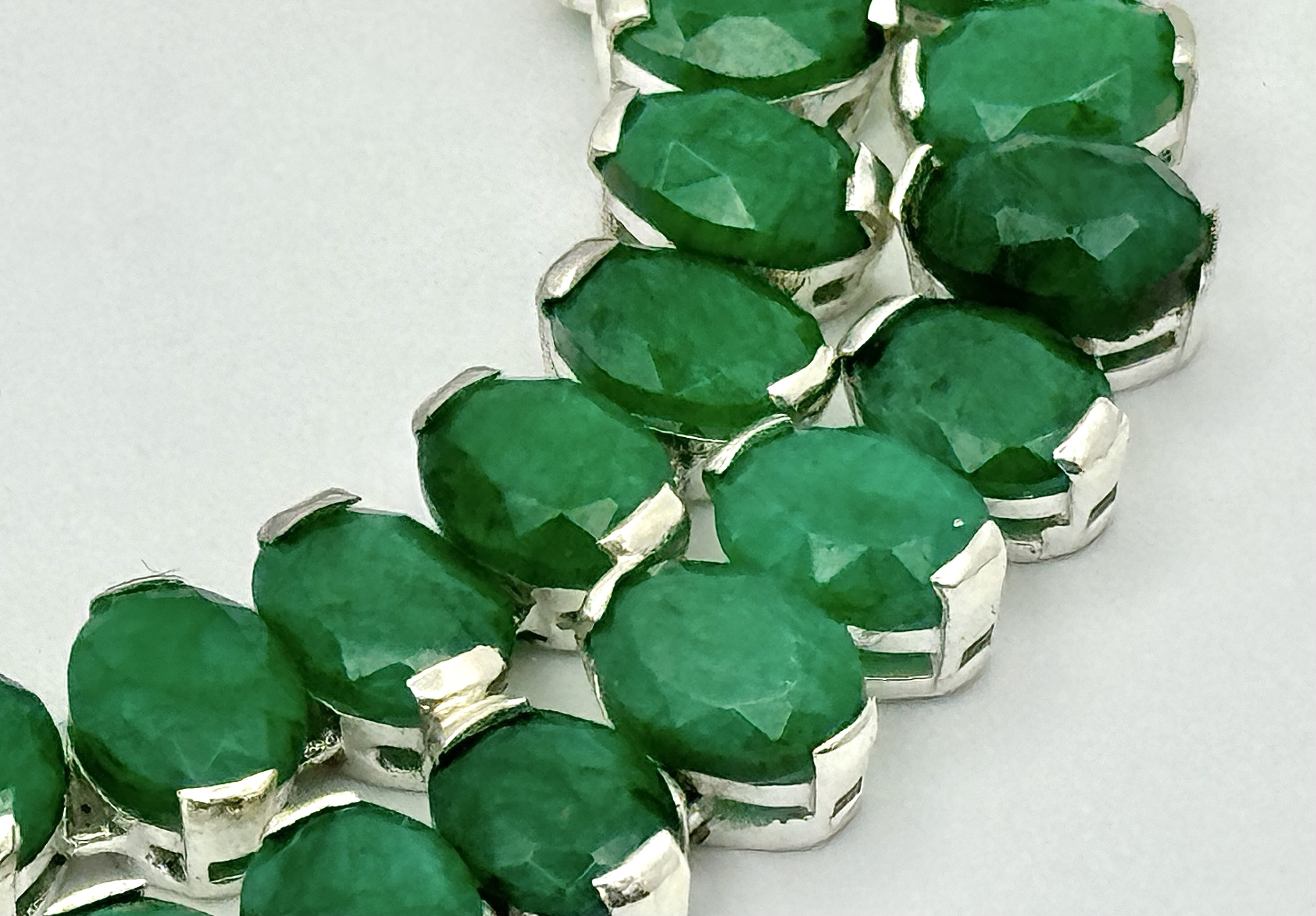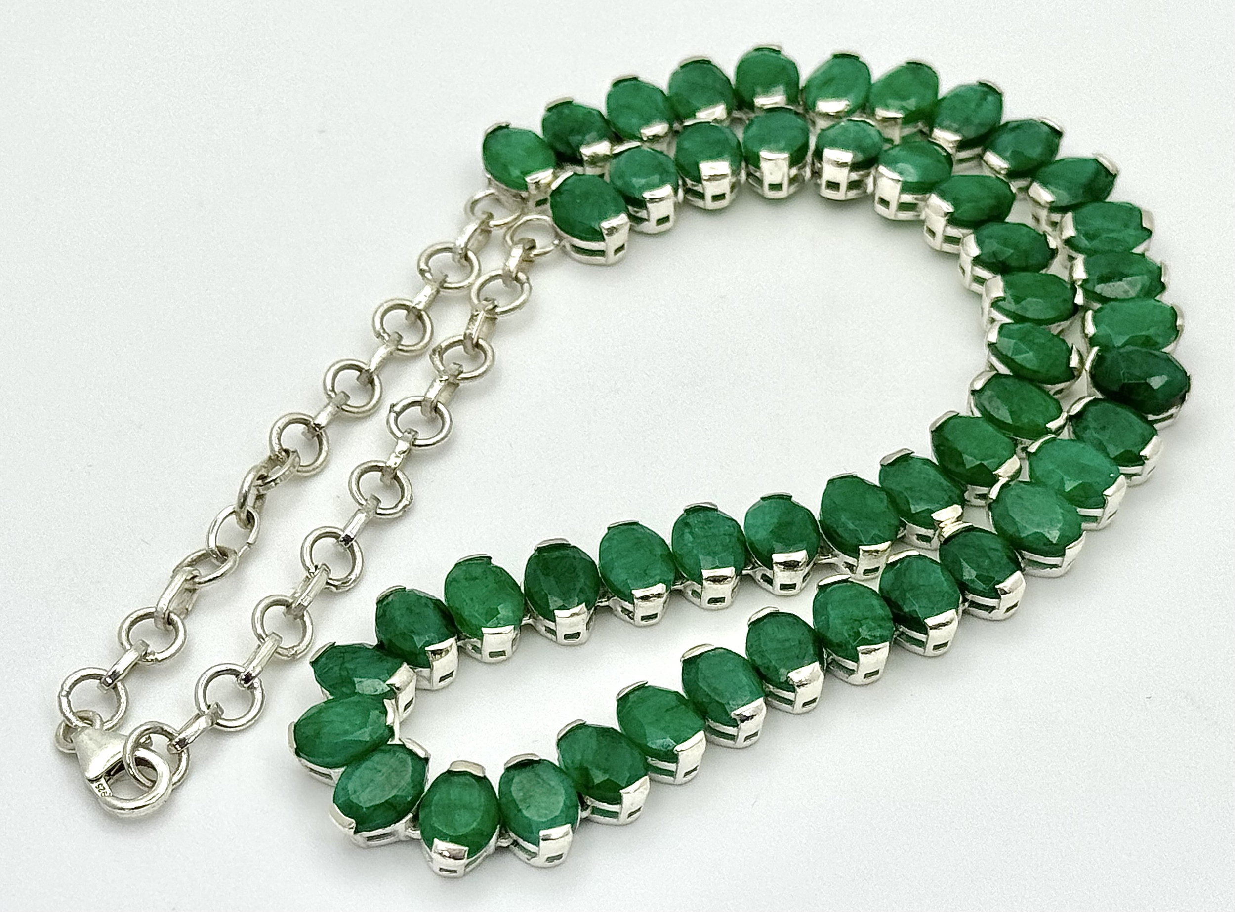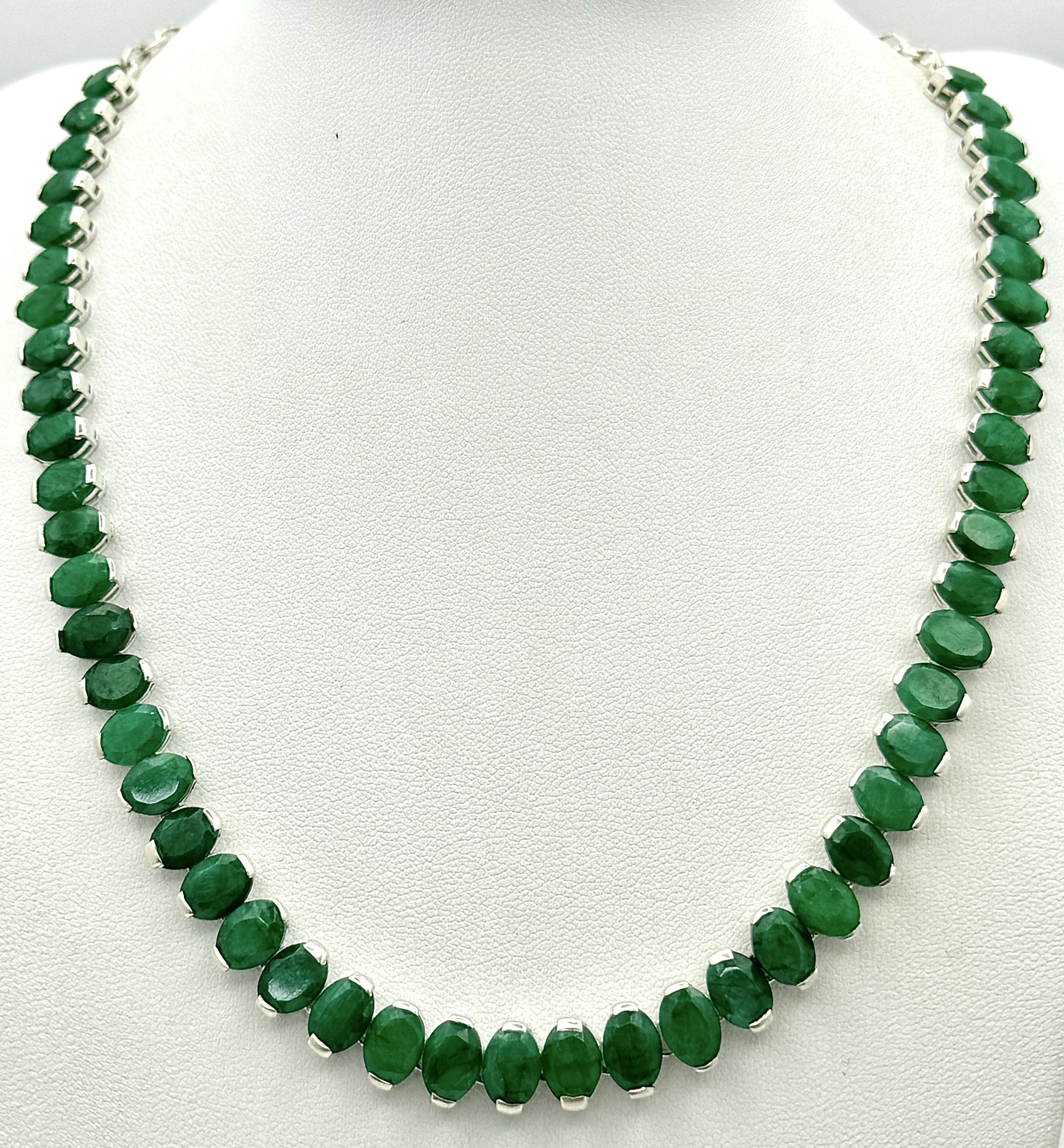 An Emerald Gemstone Necklace Set in 925 silver with links for adjustment. 42cm. Cd-1935