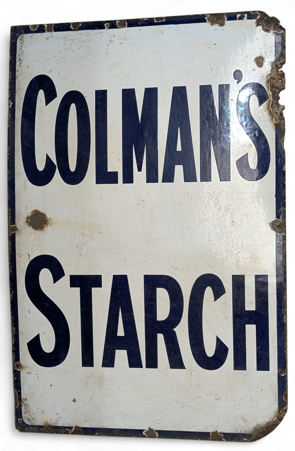 Vintage Enamel Advertising Sign for Colman`s Starch - single sided sign with wear - size 61cm x 93cm