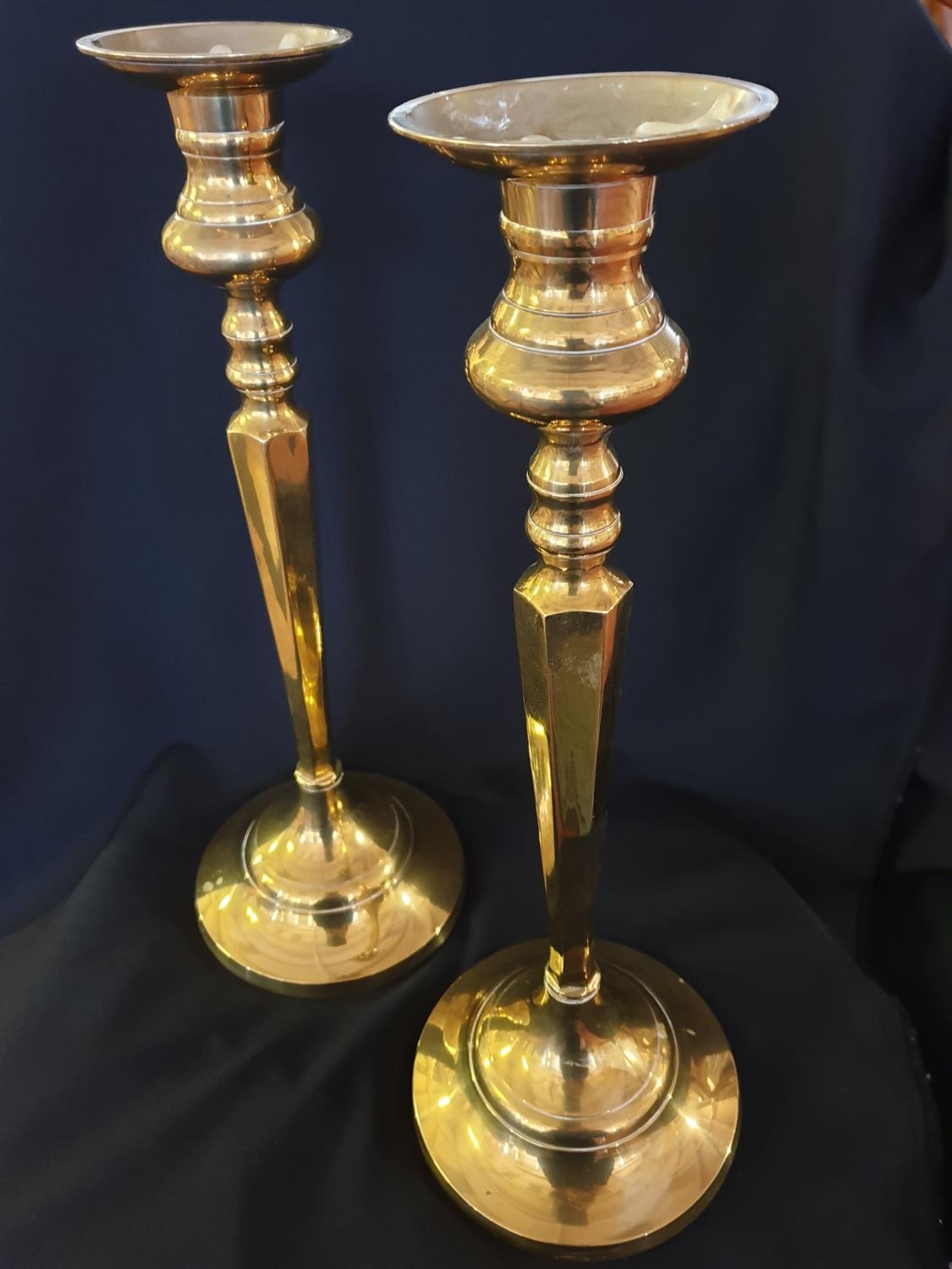 Large pair of brass candlesticks