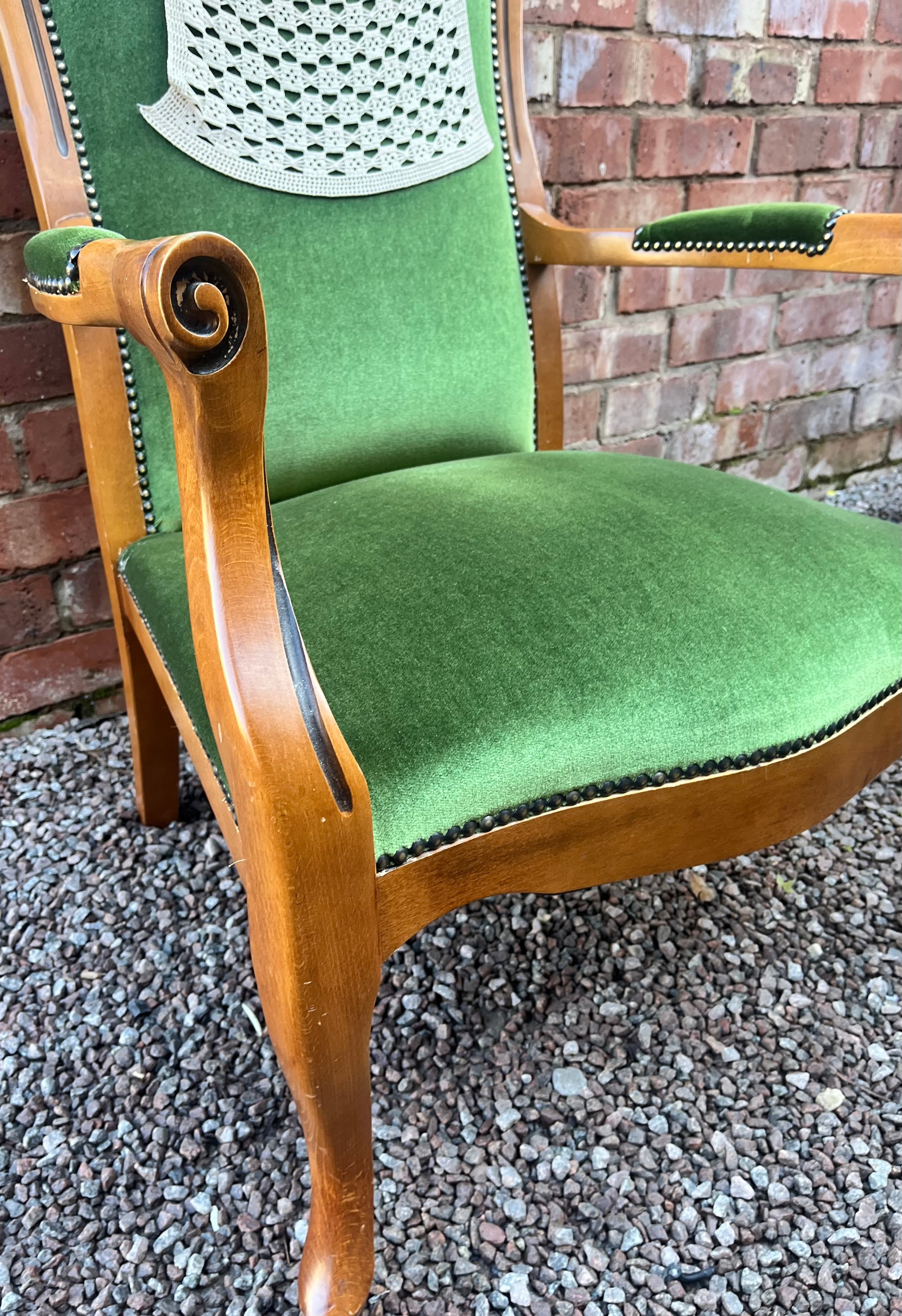 REPRODUCTION GREEN DRALON UPHOLSTERED HIGH BACK ARMCHAIR