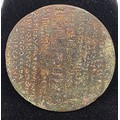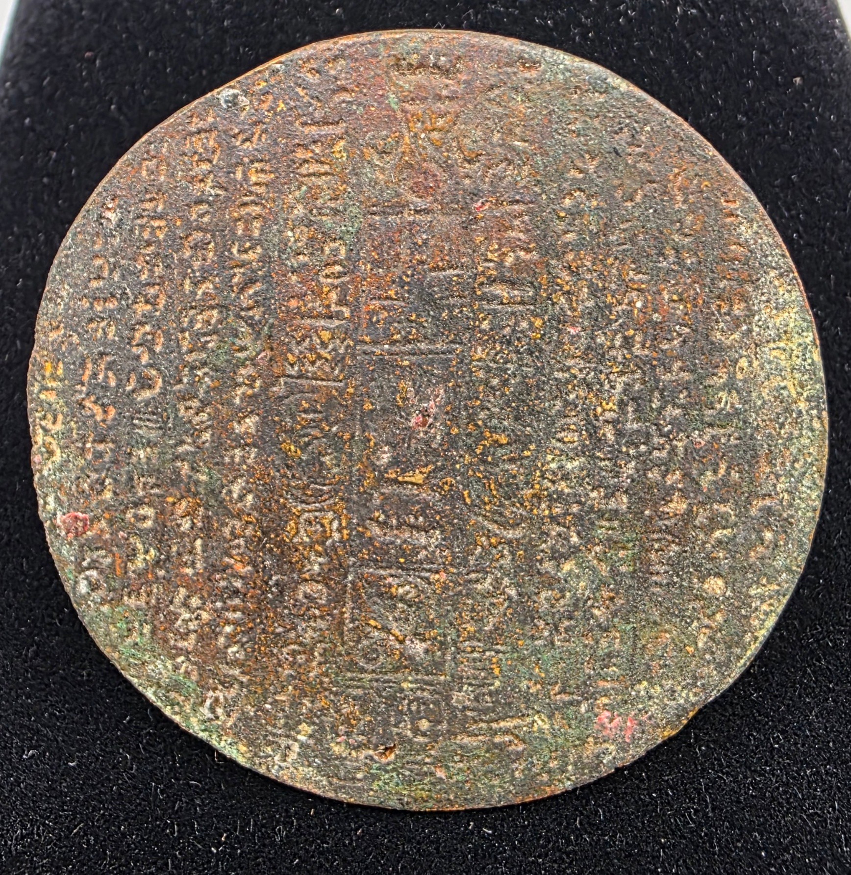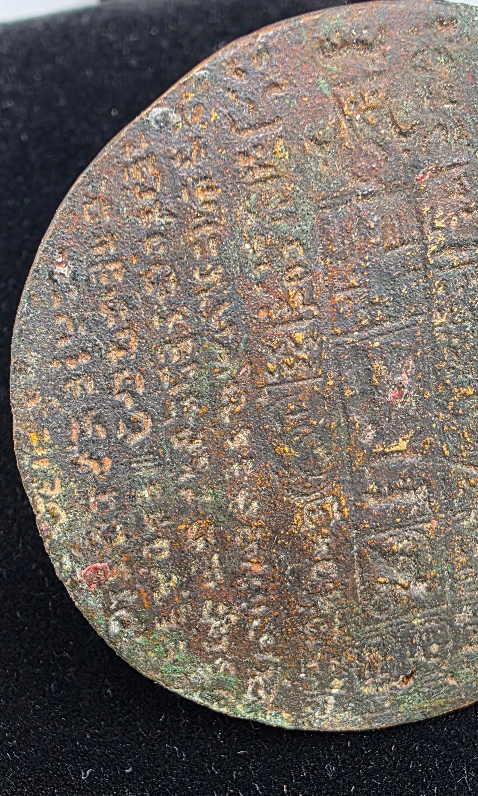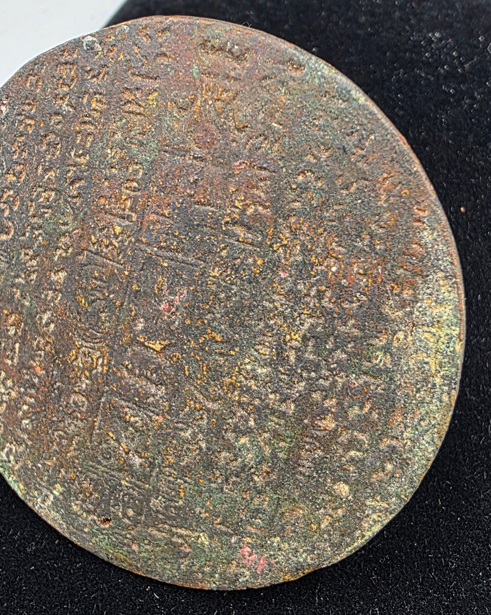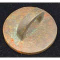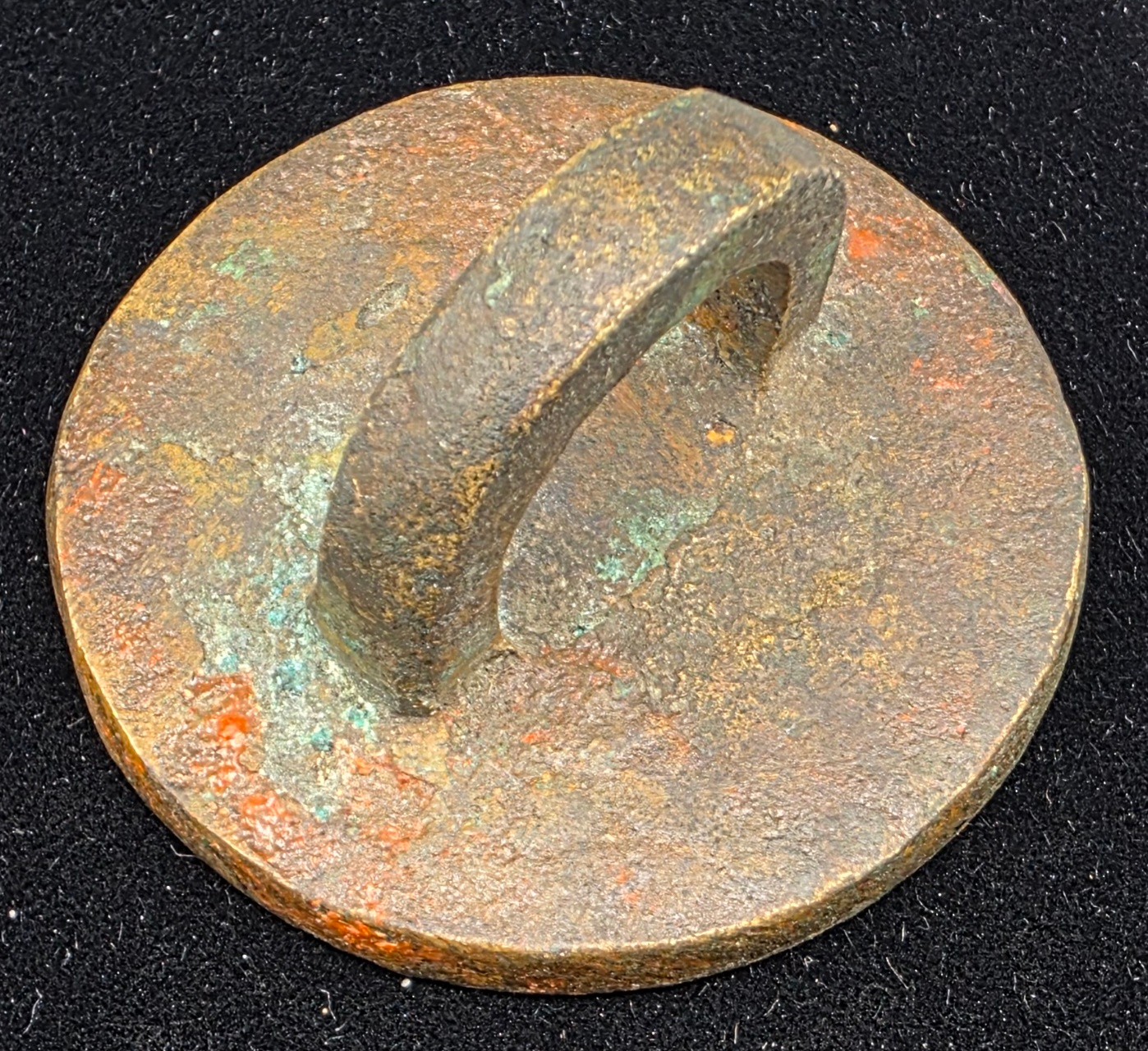 A Medieval Bronze Seal Matrix with crowned figure amongst Cypher with loop, 5.5cms diameter
