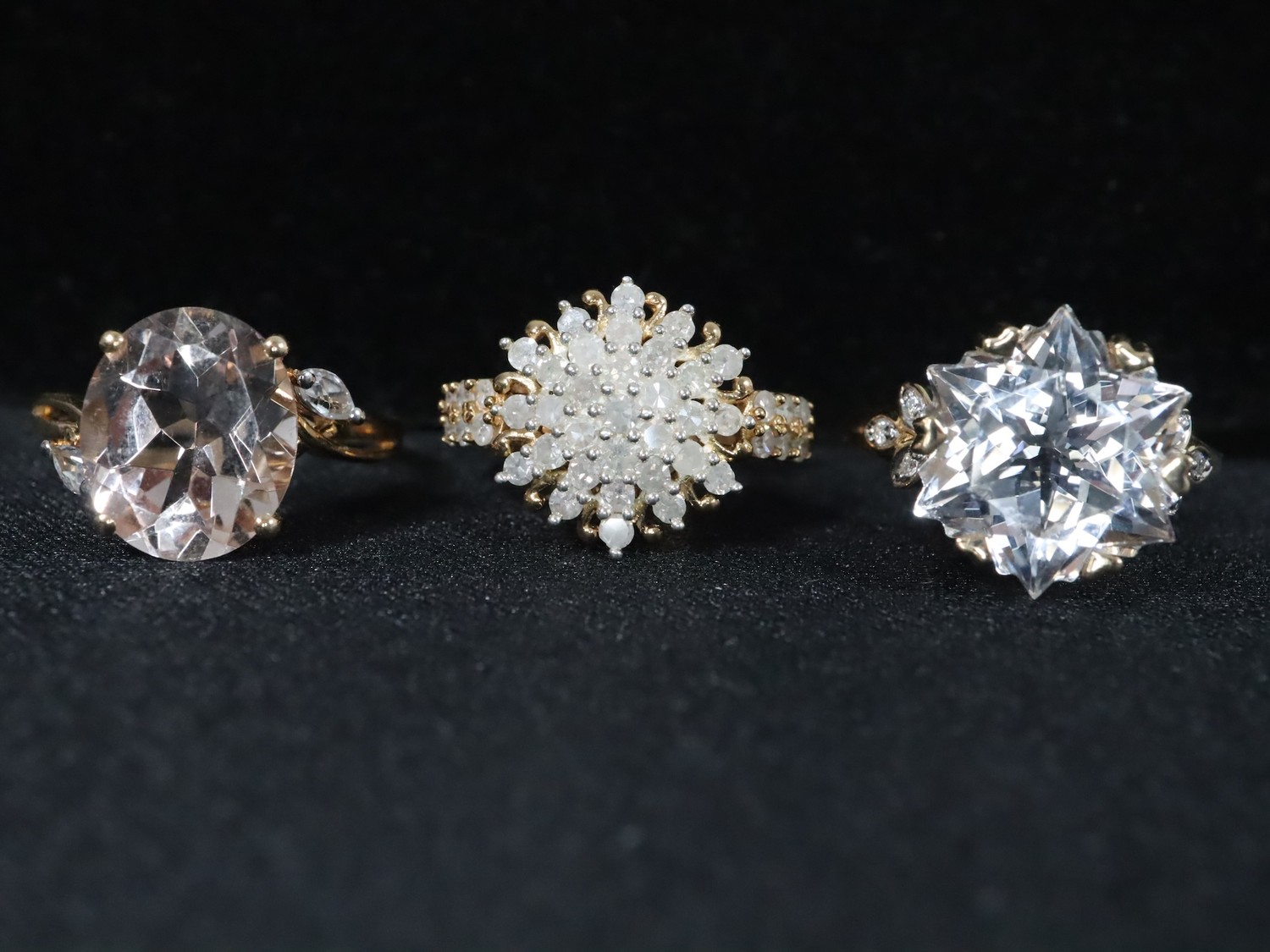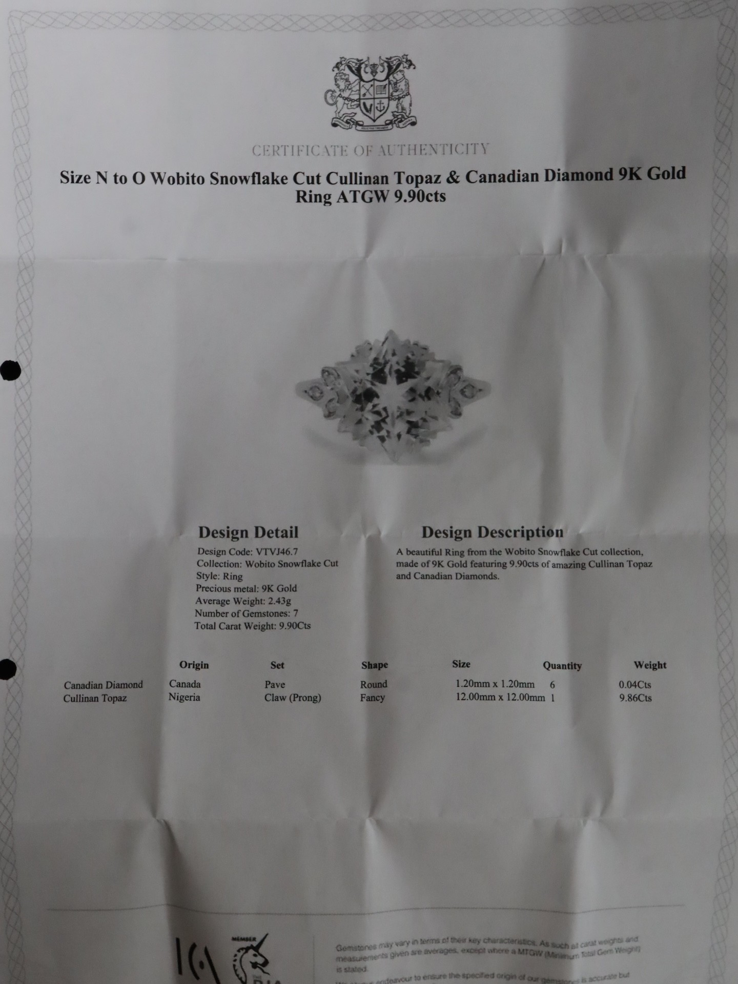 1ct Diamond Midas Ring Gold Plated Silver Size N to O, Rose Danburite & White Zircon 9K Gold Ring Atgw 4.54cts, Wobito Snowflake Cut Cullinan Topaz & Canadian Diamond 9K Gold Ring Atgw 9.90cts