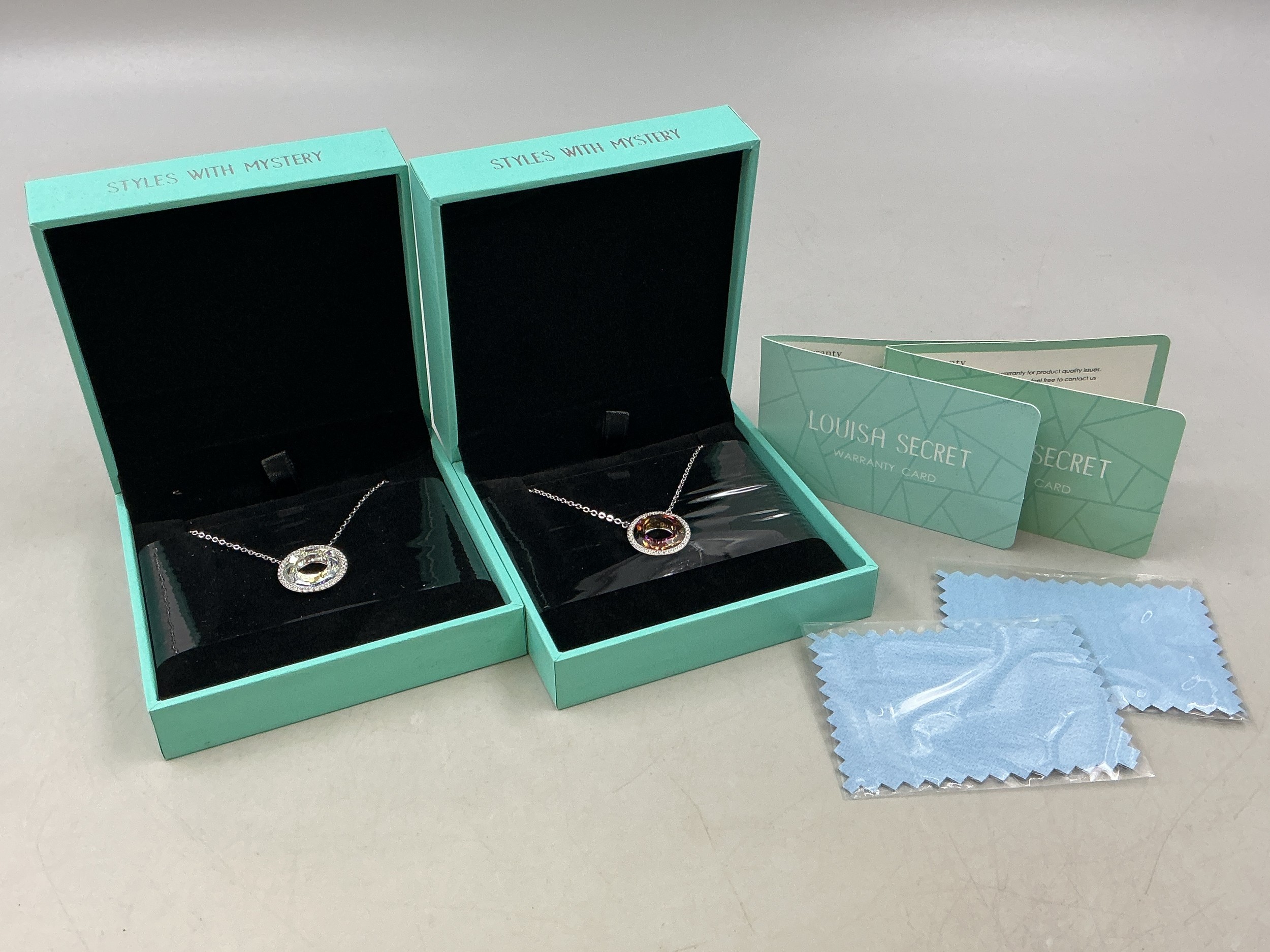 Two New Louisa Secret Styles with Mystery Silver 925 Ferris Wheel Pendant Necklaces Complete with Cases