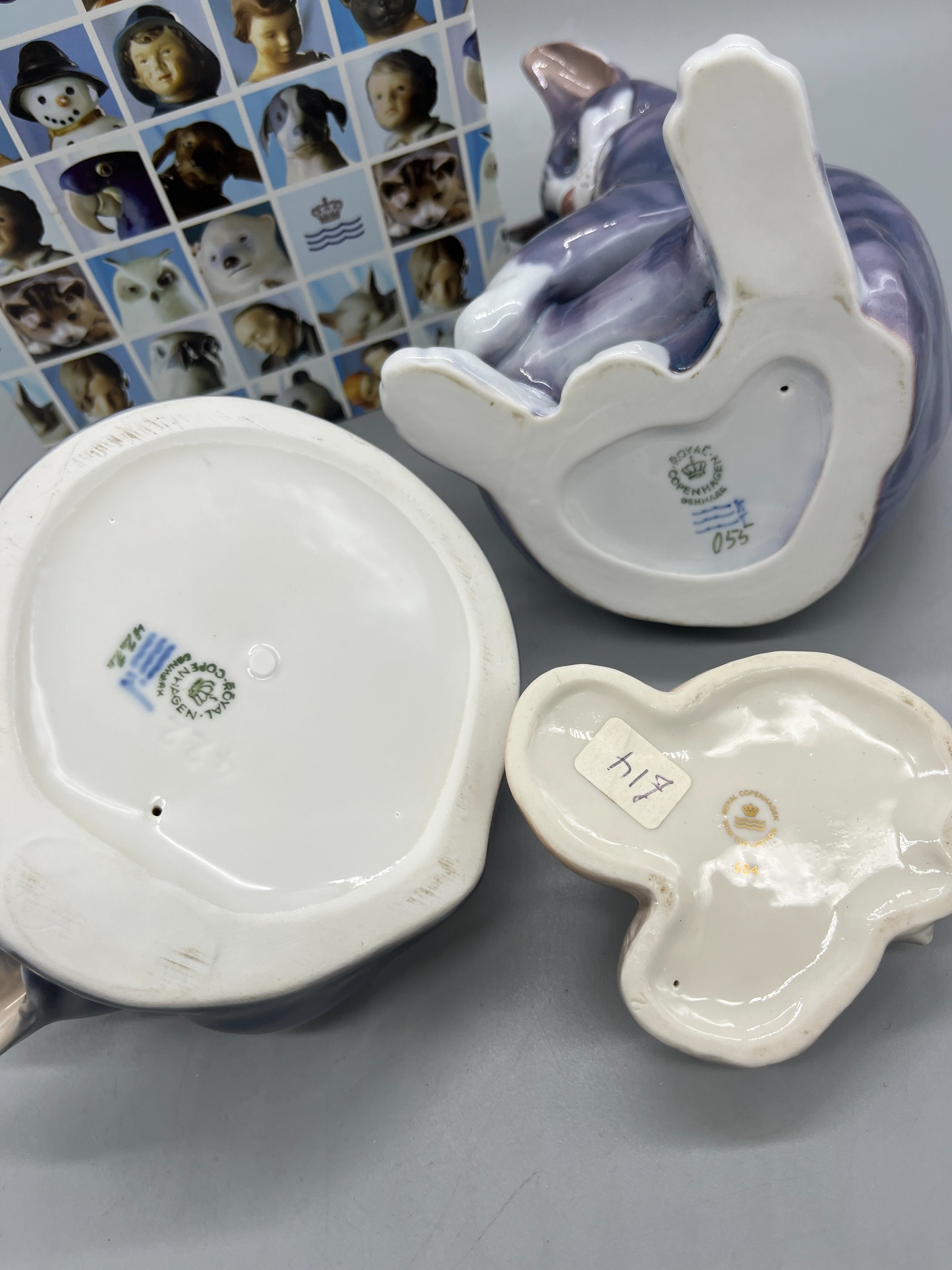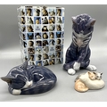 Three Royal Copenhagen cat figures - largest model no. 055, with box, H19.5cm