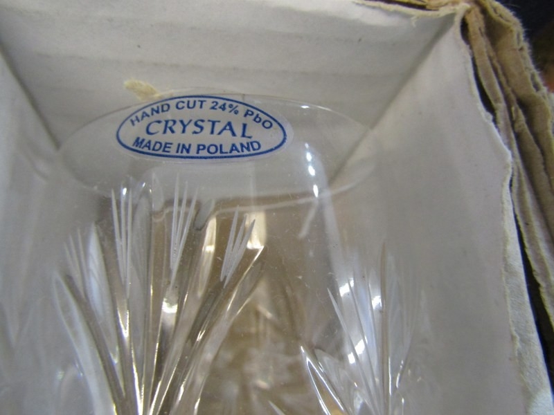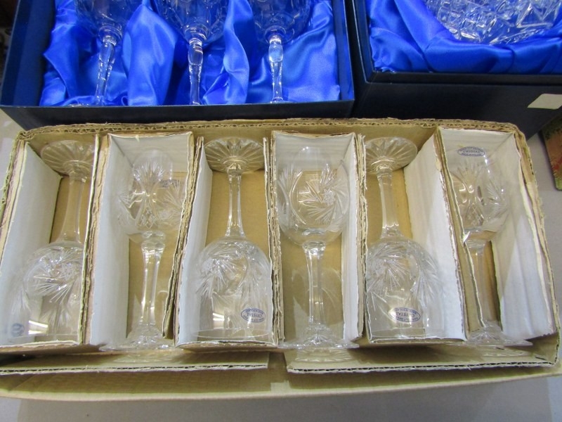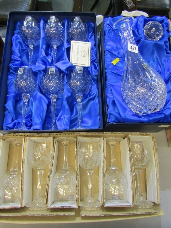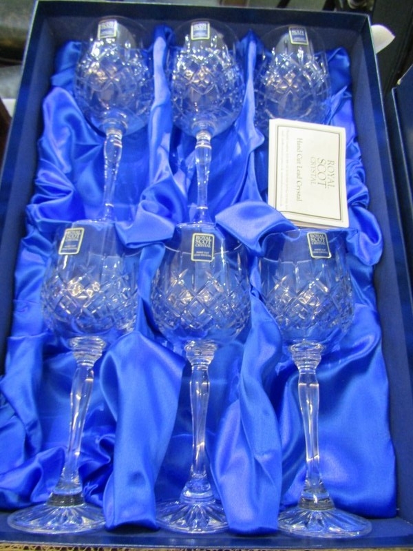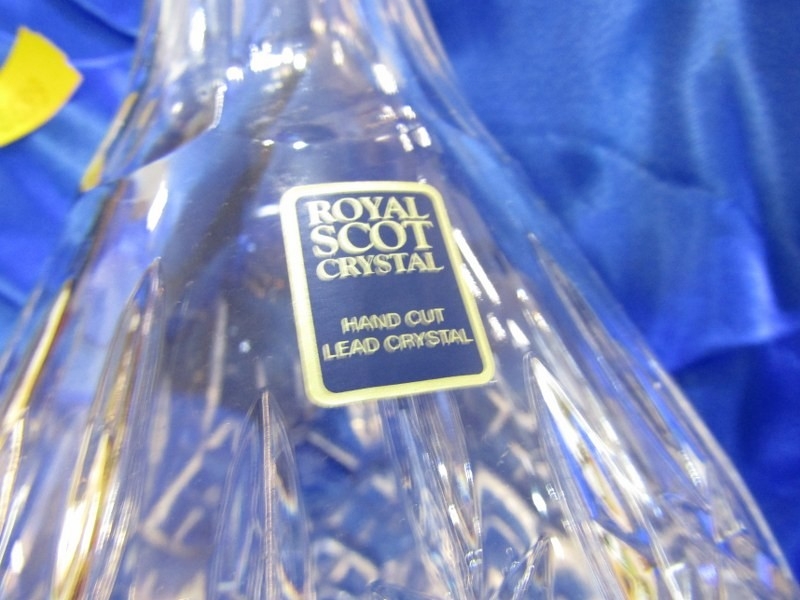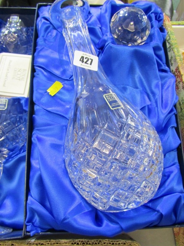 GLASSWARE, a Royal Scot Crystal boxed decanter and stopper together with a boxed set of 6 glasses