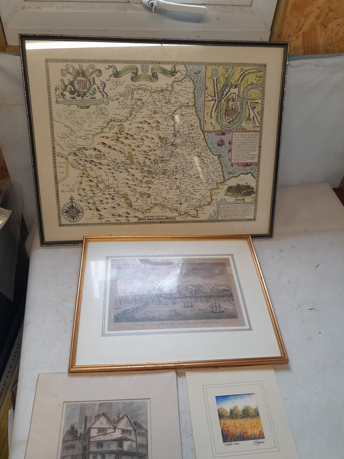 Pictures and prints : Copy of map of Durham, early 19th century book print Newcastle