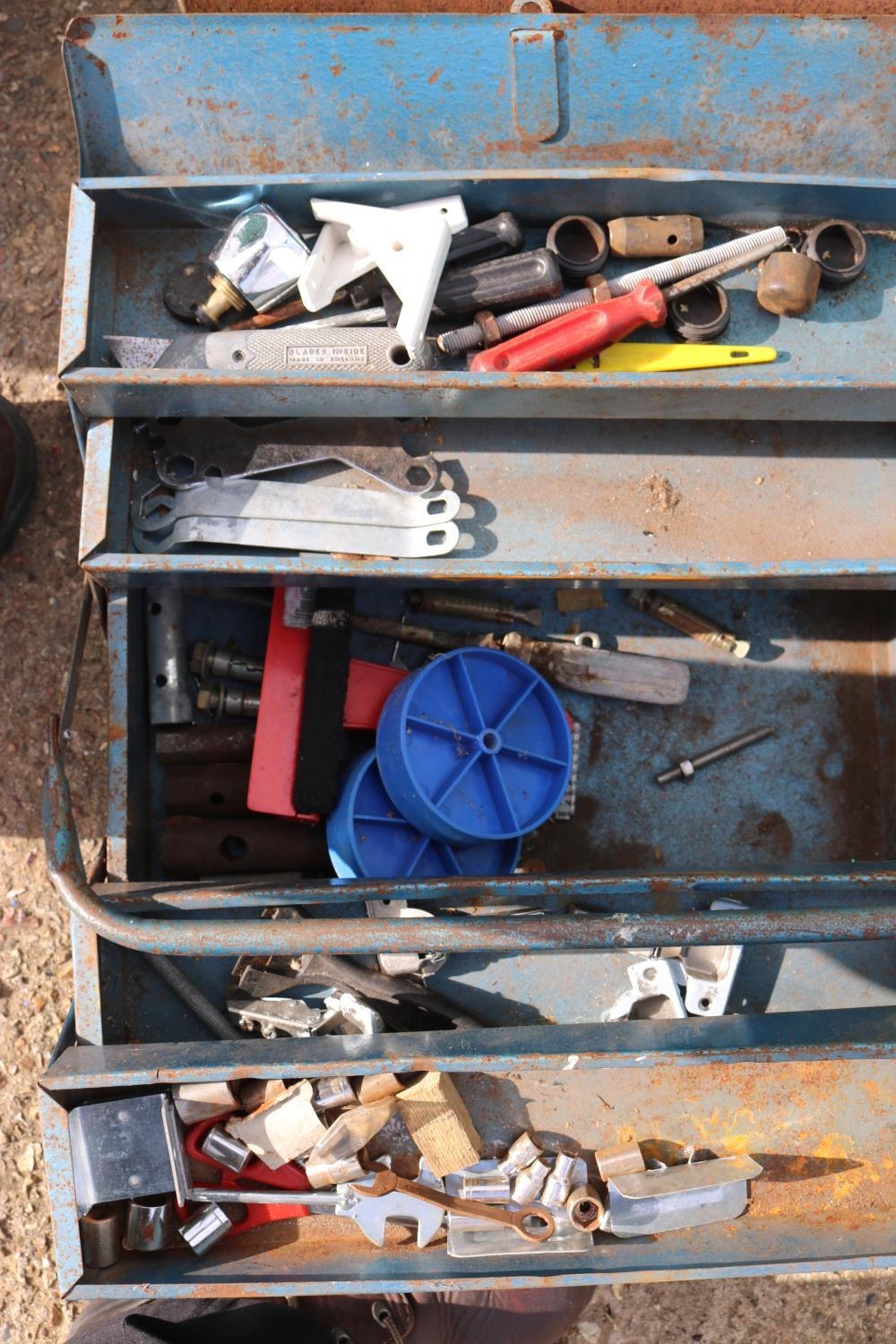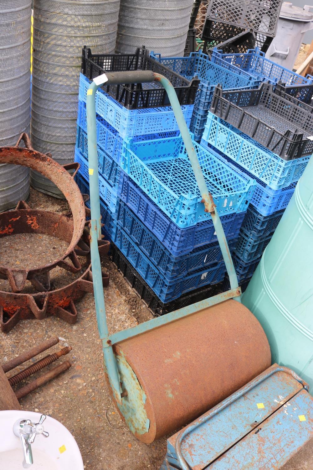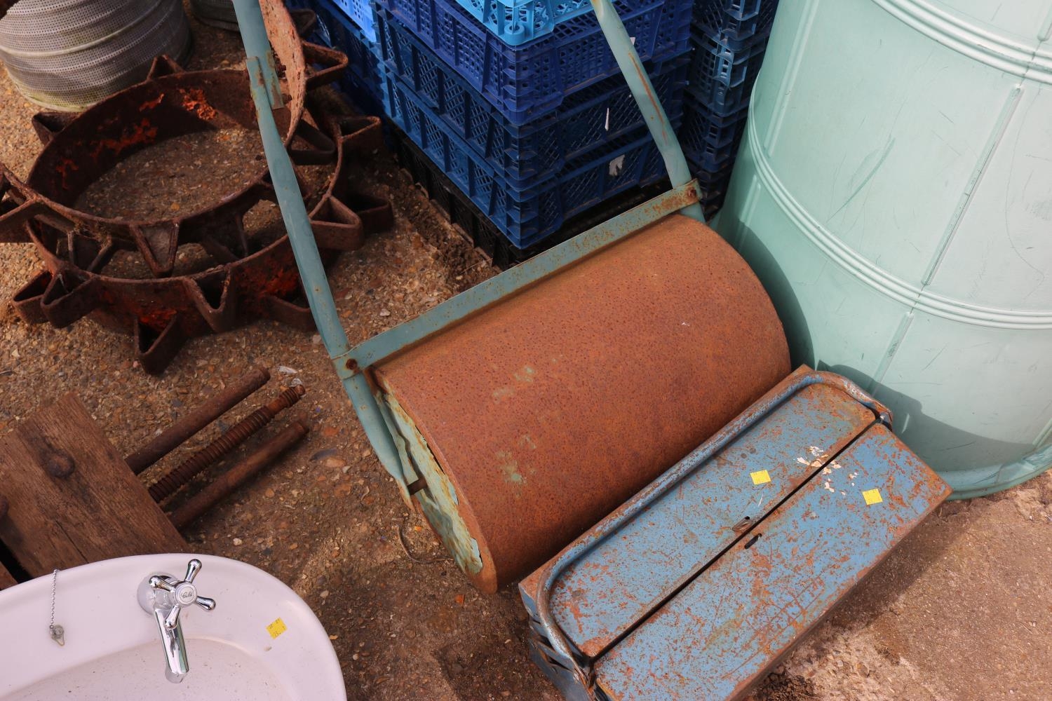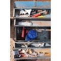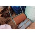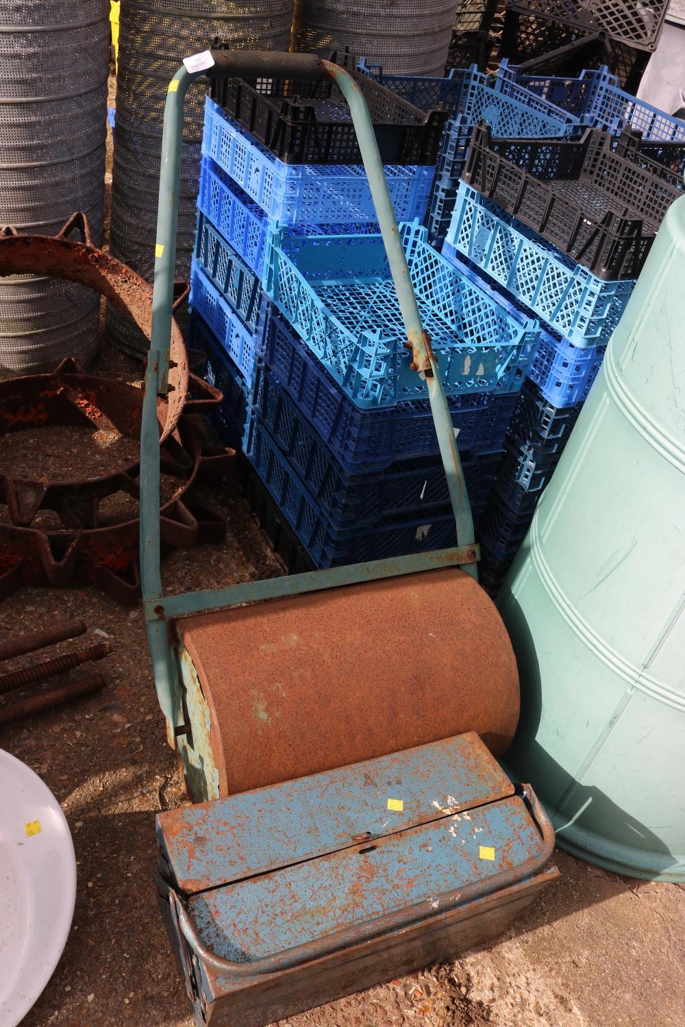 GARDEN ROLLER & TOOL BOX WITH CONTENTS