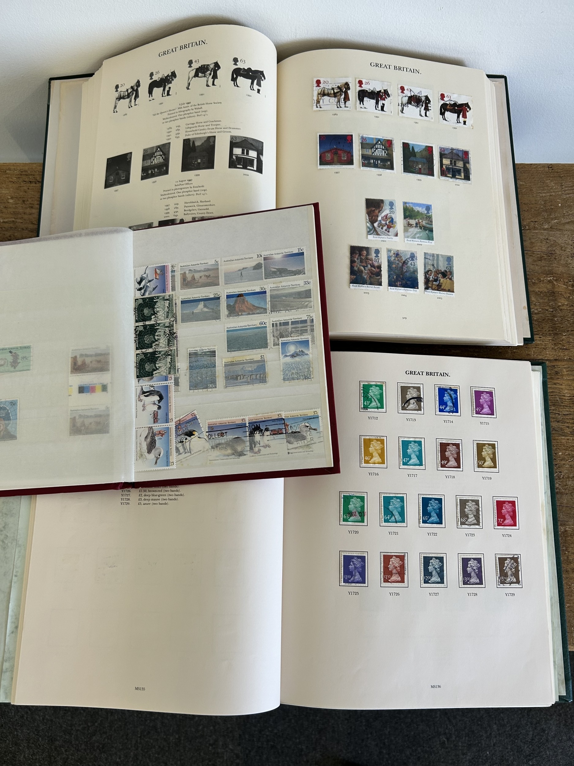 Two Stanley Gibbons Windsor album stamp collections, both approx. three quarters full, very good to mint condition plus a Christmas Island, Artic, Australian etc small stock book
