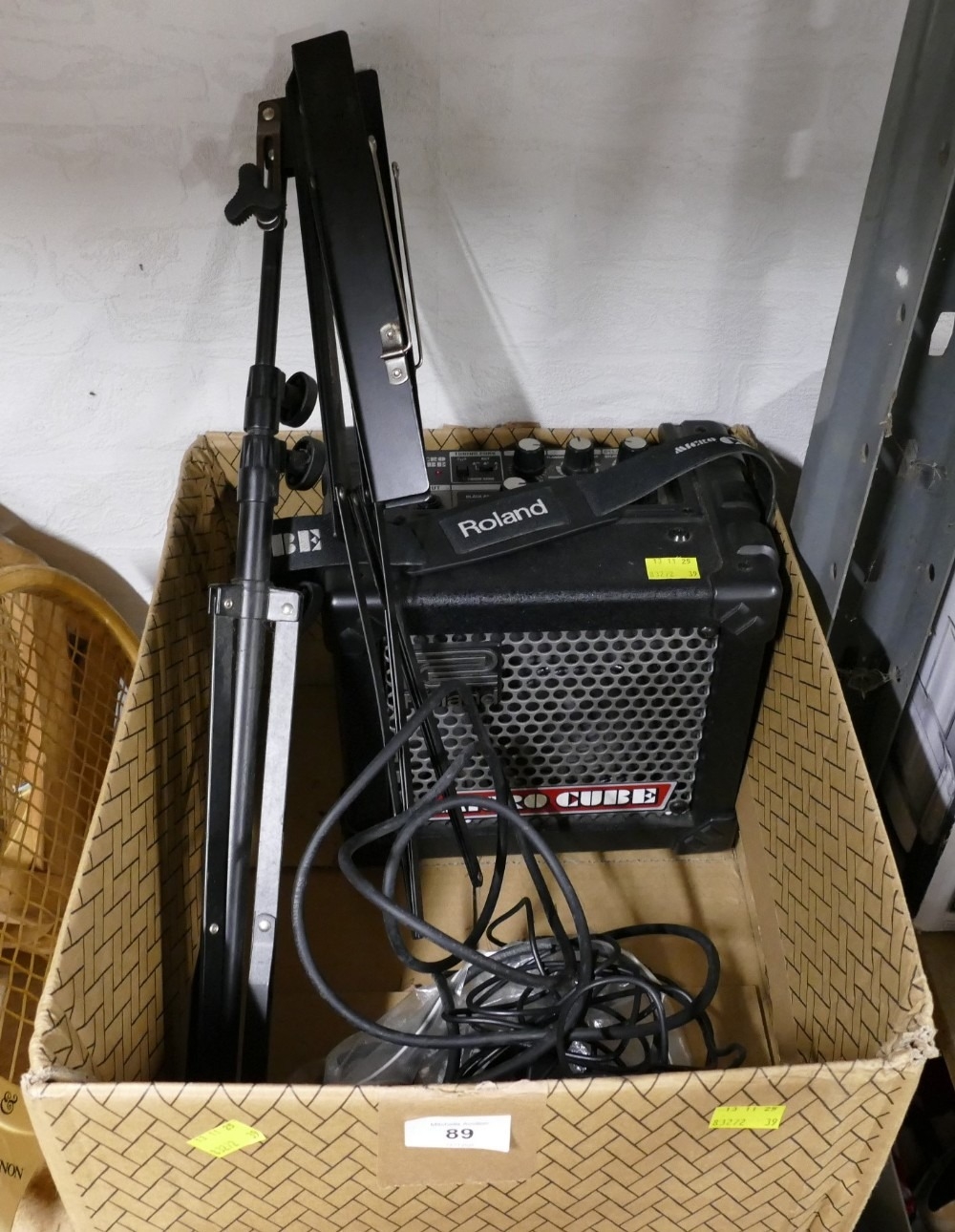 Roland Micro Cube, COSM amplifier, music stand cables etc
