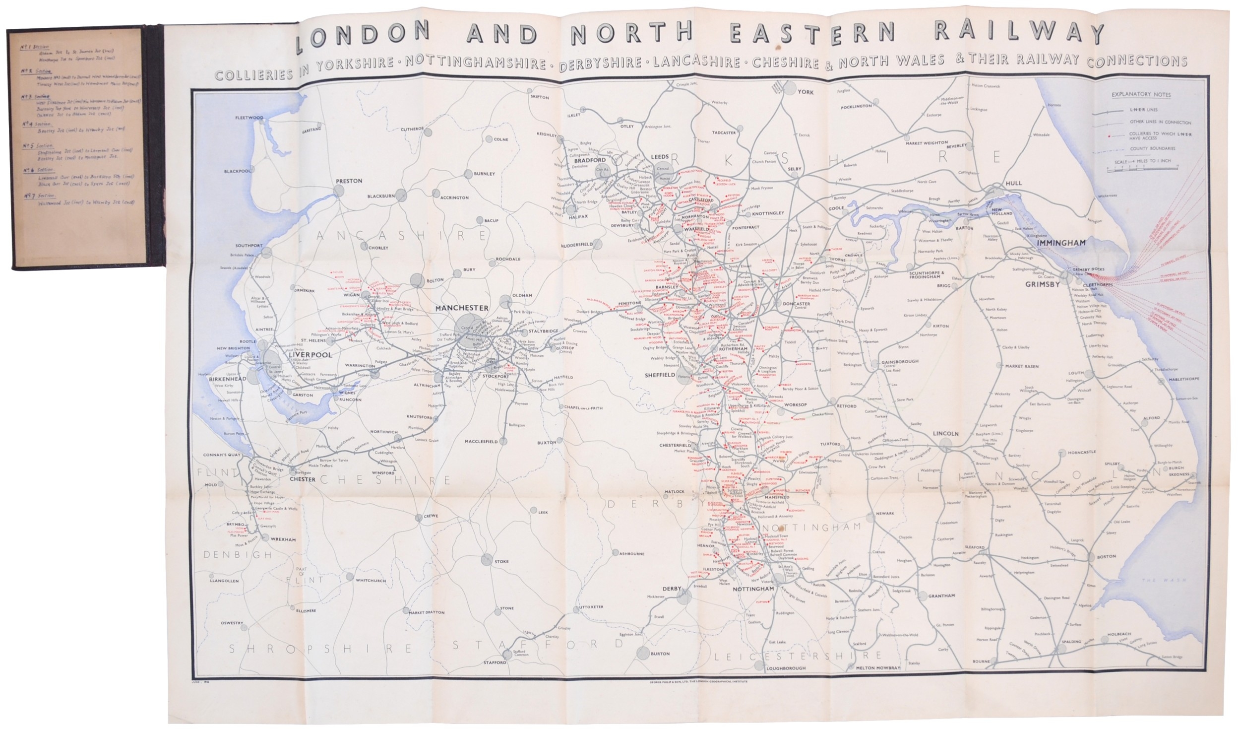 LNER Colliery Map, Yorks, Notts, Derbys, Lancs, Cheshire and North Wales, 1925, d.m.f, 24"x38".(B2) (Dispatch by Mailboxes/Collect from Banbury Depot)