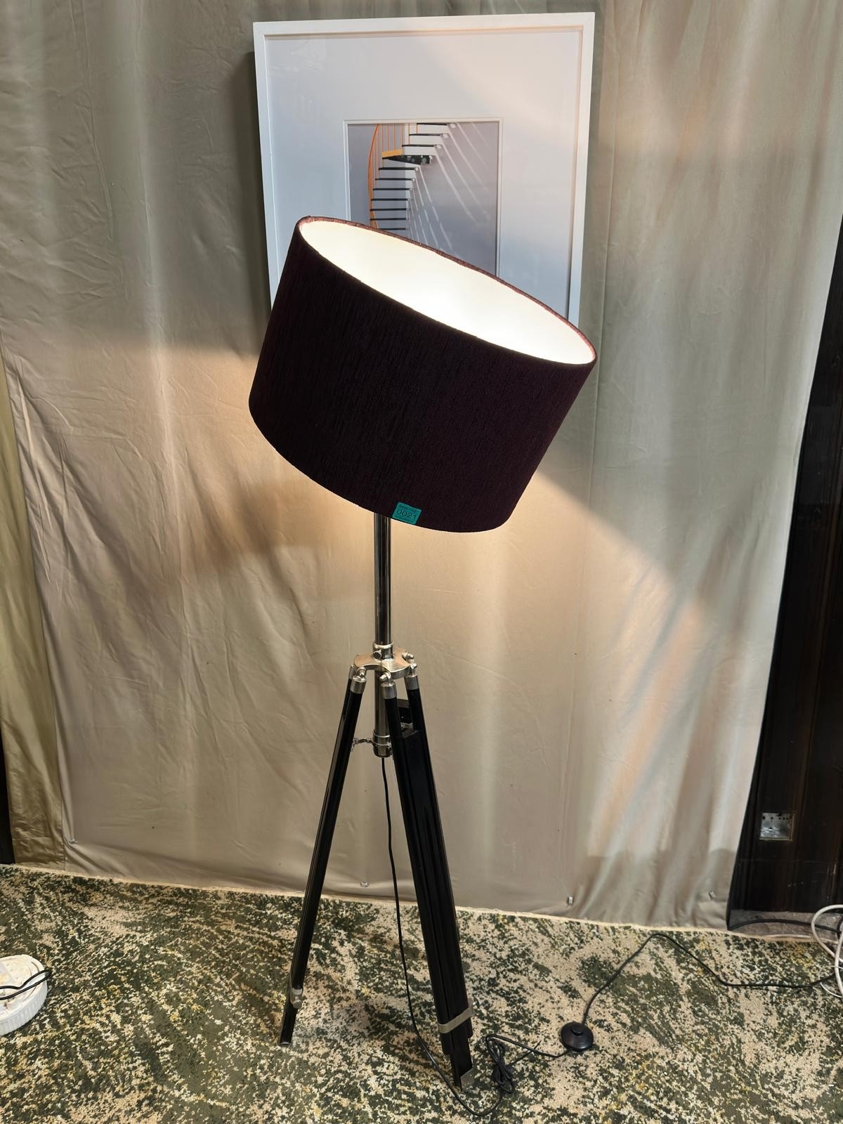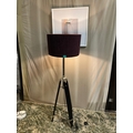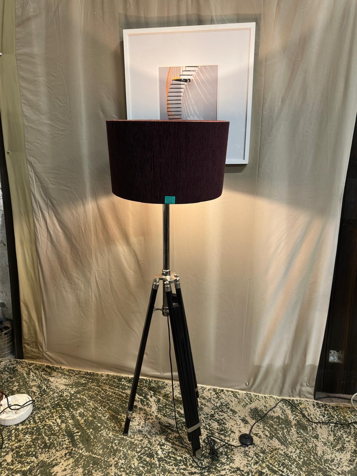 Tripod Standard Lamp, Black Chrome, Adjustable Height (115cm - 200cm from base), Burgundy Shade (47cm x 27cm)