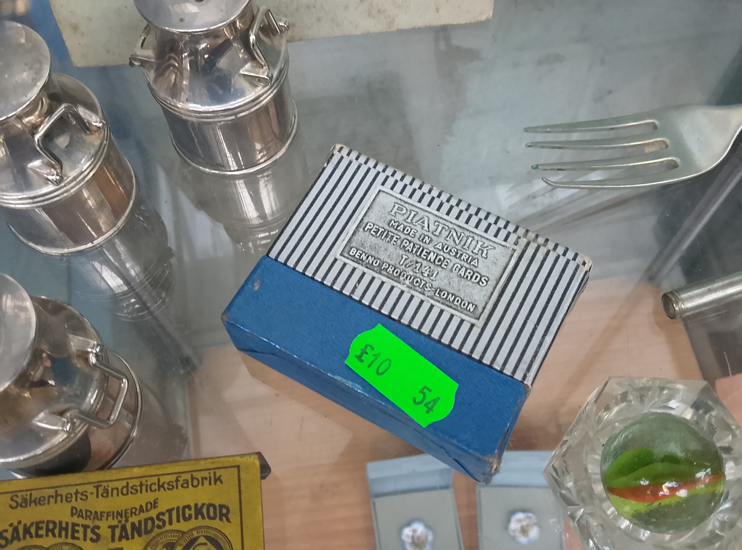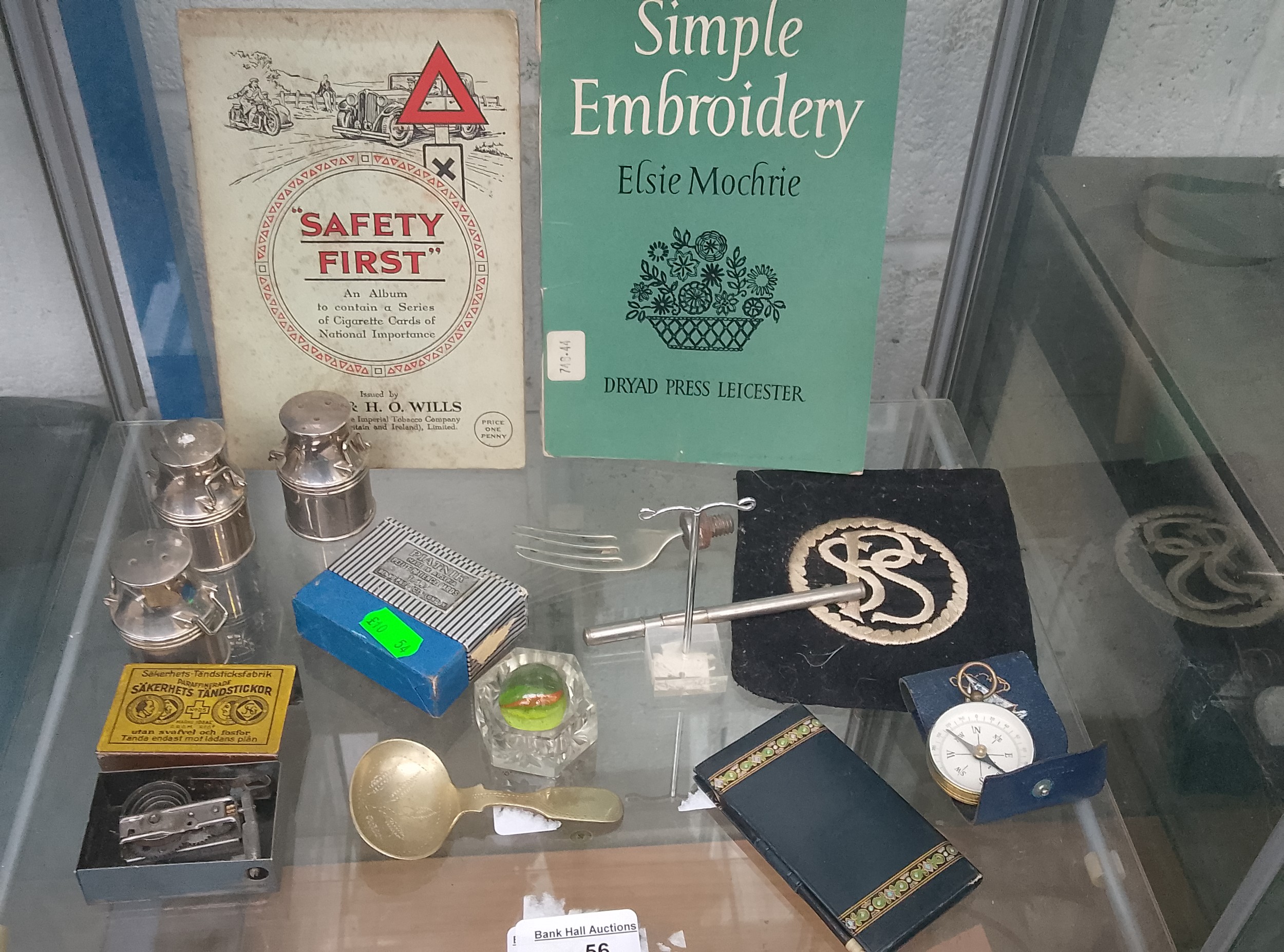 Lot inc Salt & Pepper pots, compass, first aid book, marble, etc
