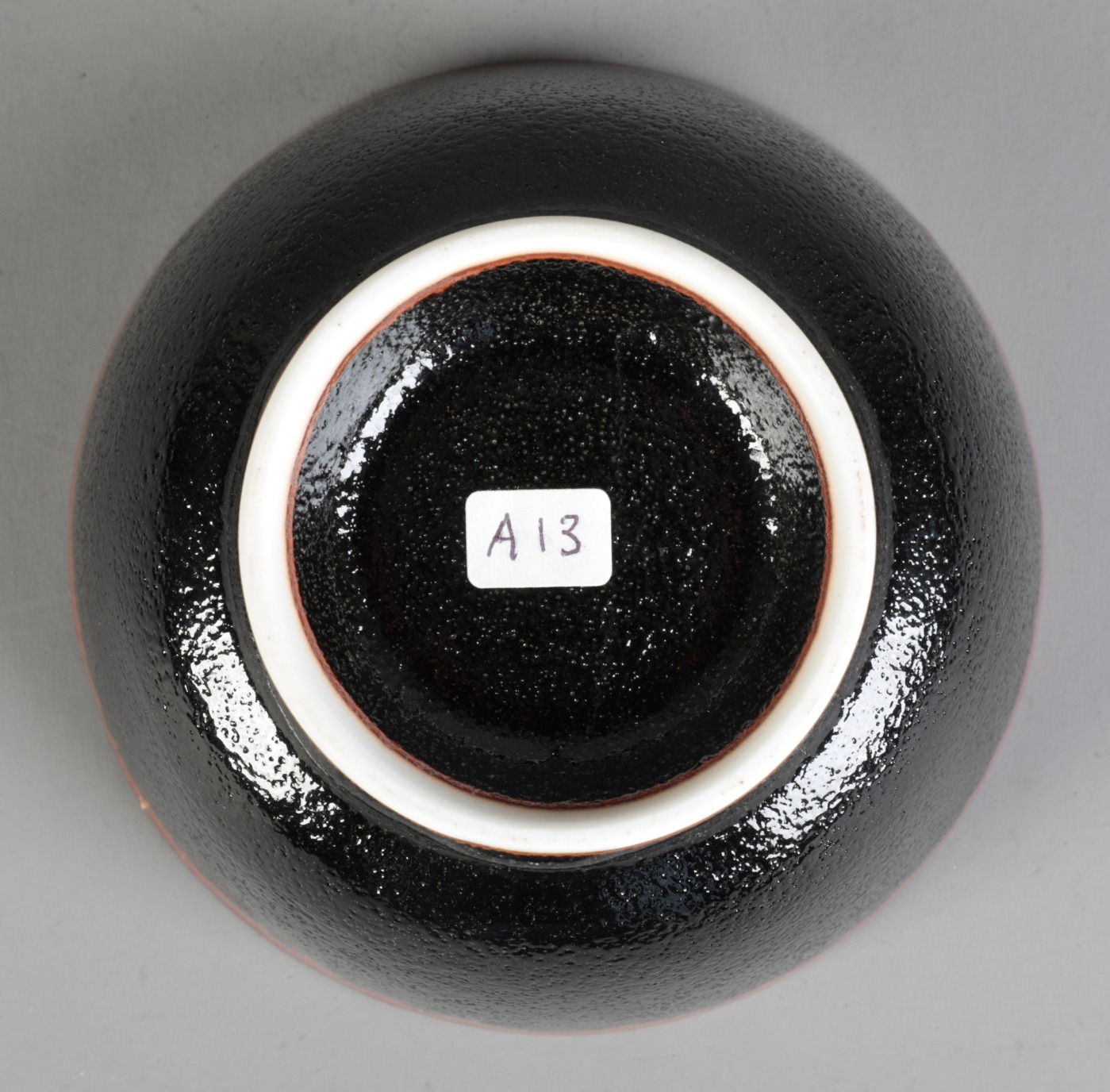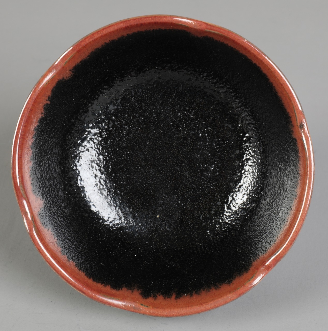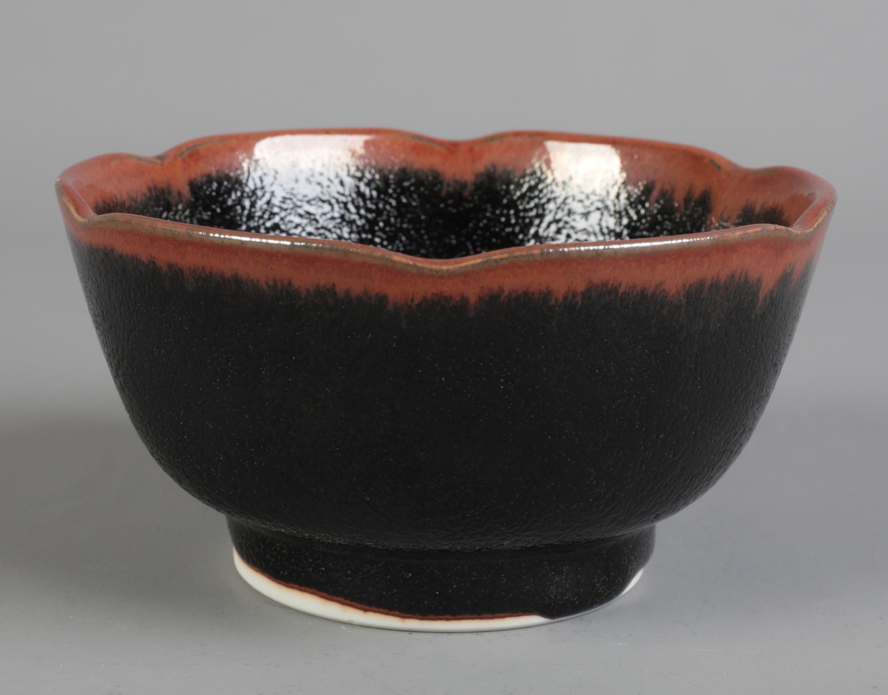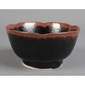 A CHINESE PORCELAIN 'HARE'S FUR' GLAZE BOWL20th century, with a shaped rim and tapered body on a raised foot, 6cm high x 11.5cm diameterThe Law Collection 羅.