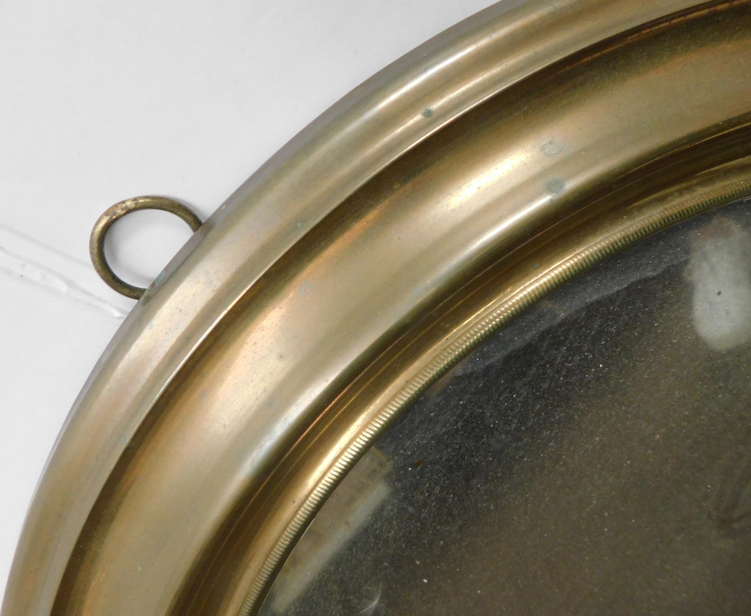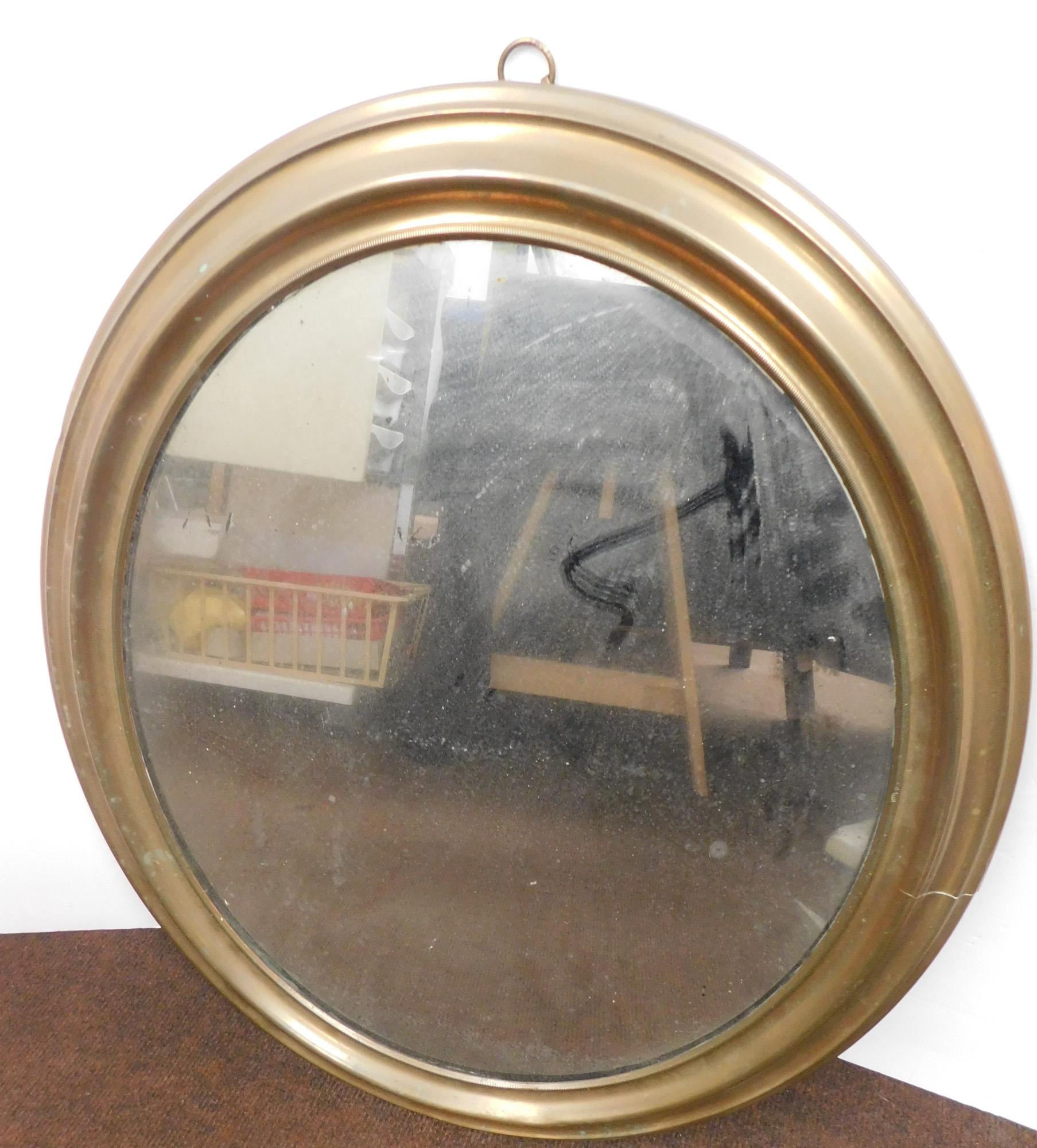 Antique brass cased oval mirror - approx. 21" x 24"
