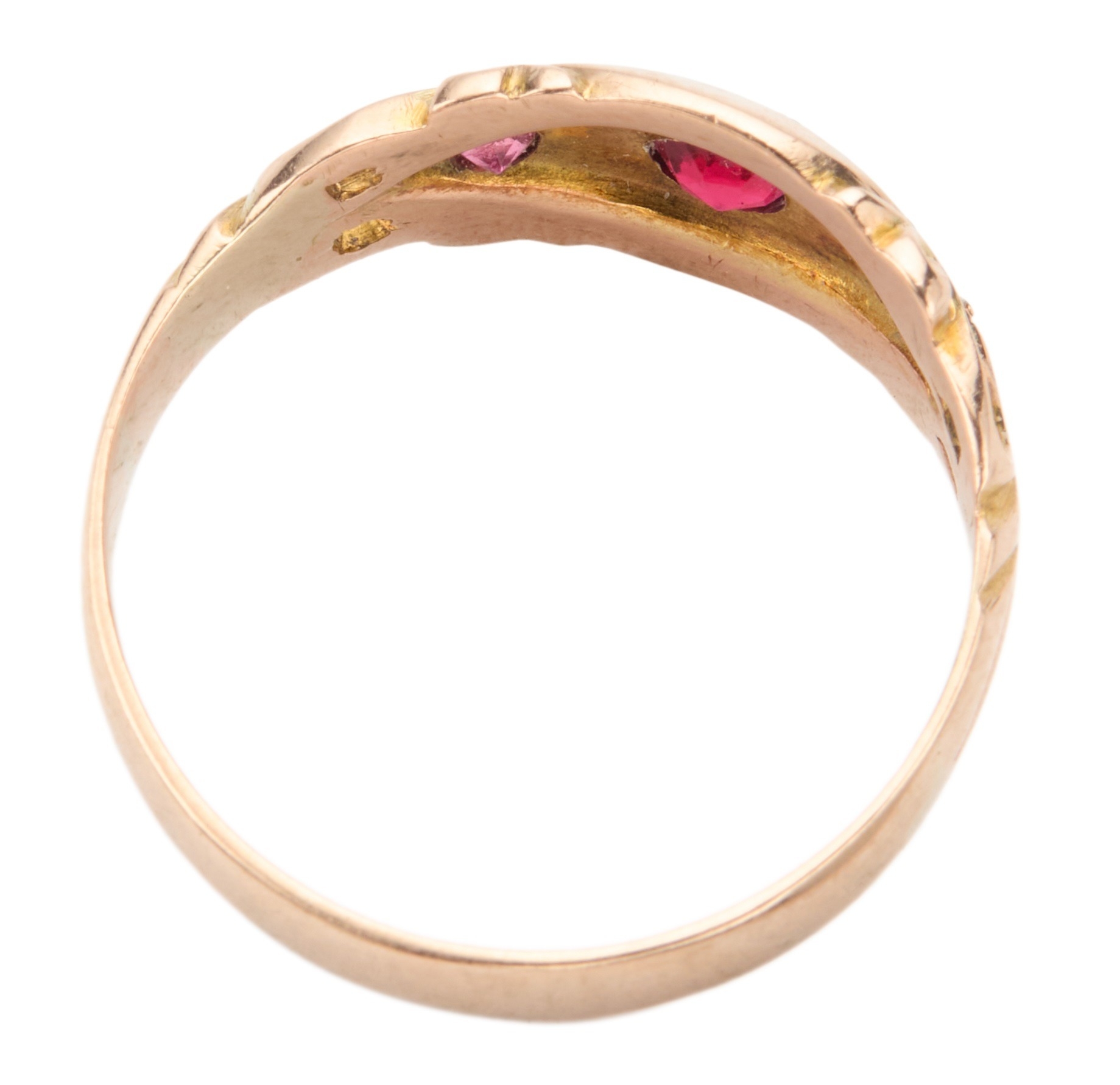 AN 9CT GOLD RUBILLITE TOURMALINE AND DIAMOND GYPSY RING