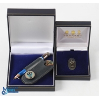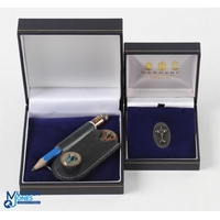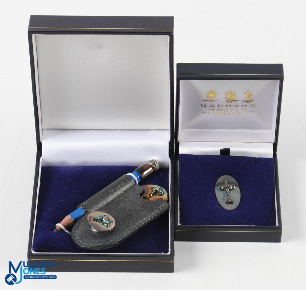 2003 PGA Cup Matches Silver Golf Set (2) - Garrard London Oval Silver Pin Badge in maker's case; and a players set comprising a Pitch Repairer Fork hallmarked Birmingham and stamped 925, ball marker and pencil in small leather holder together with original case. Note Part II Collection from the Estate of The Late Sandy Jones CEO of The PGA