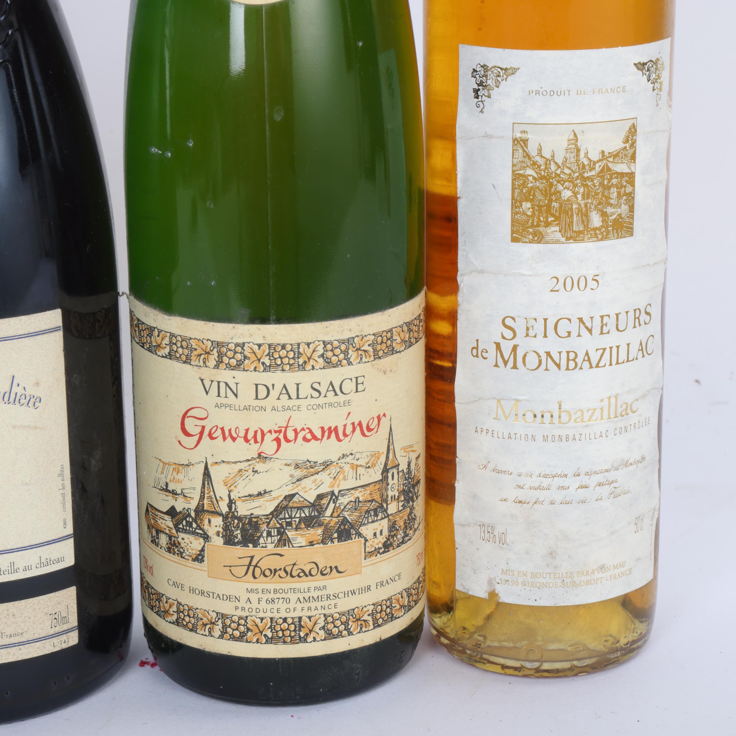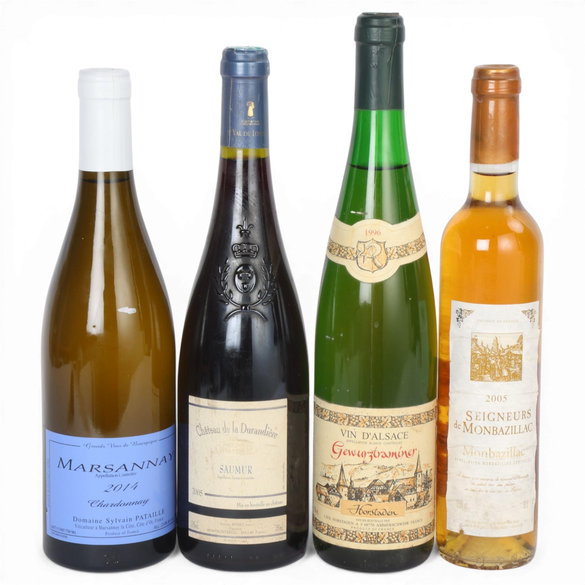 4 bottles of French wine, 2014 Marsannay Sylvian Pataille 750ml, 2005 Samur Chateau de la Durandiere 750ml , 1996 Alsace Gewurztraminer Horstaden 750ml, 2005 Monbazilliac Seigneurs 50cl