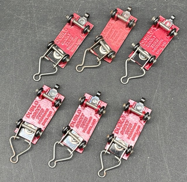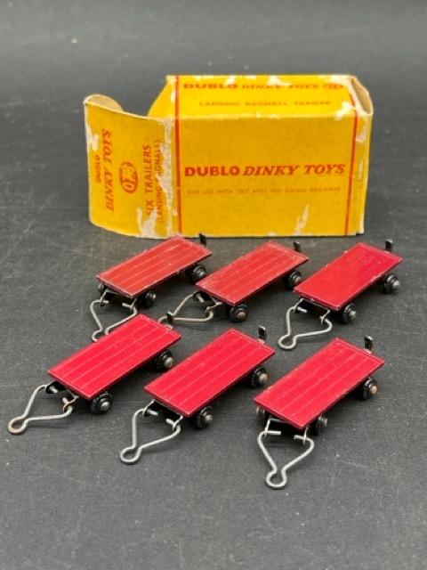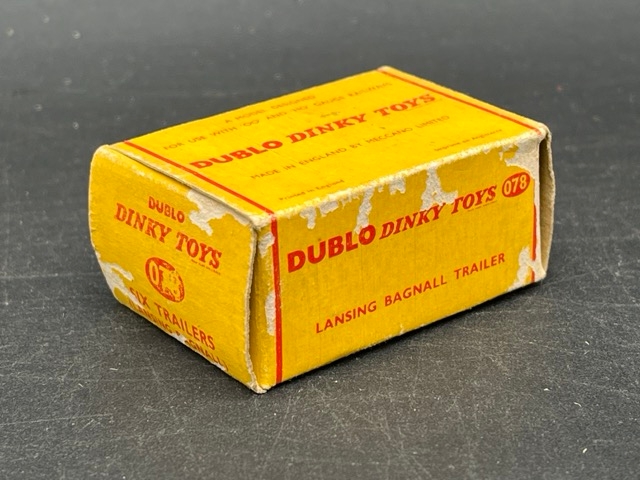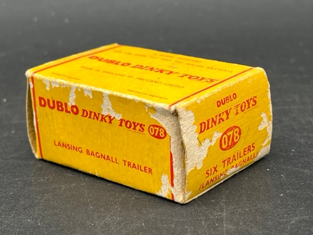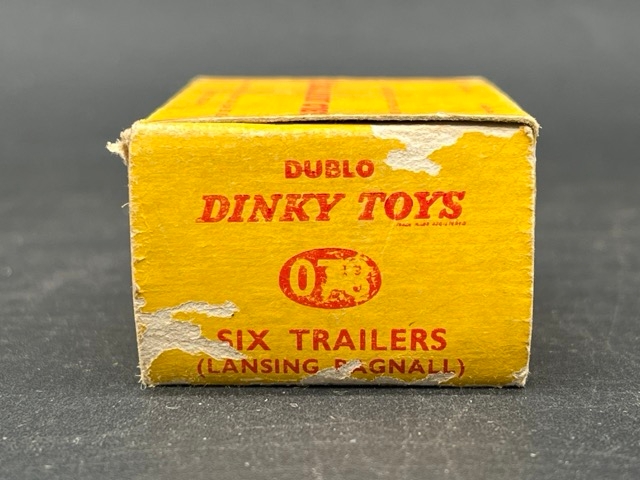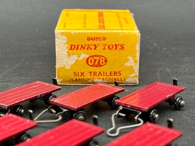 A Dublo Dinky Toys Trade Box containing six 078 Lansing Bagnall Trailers