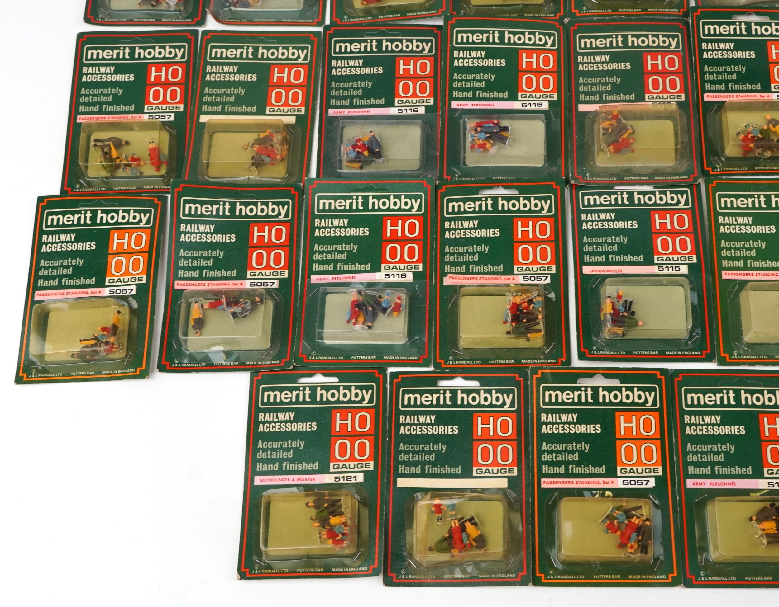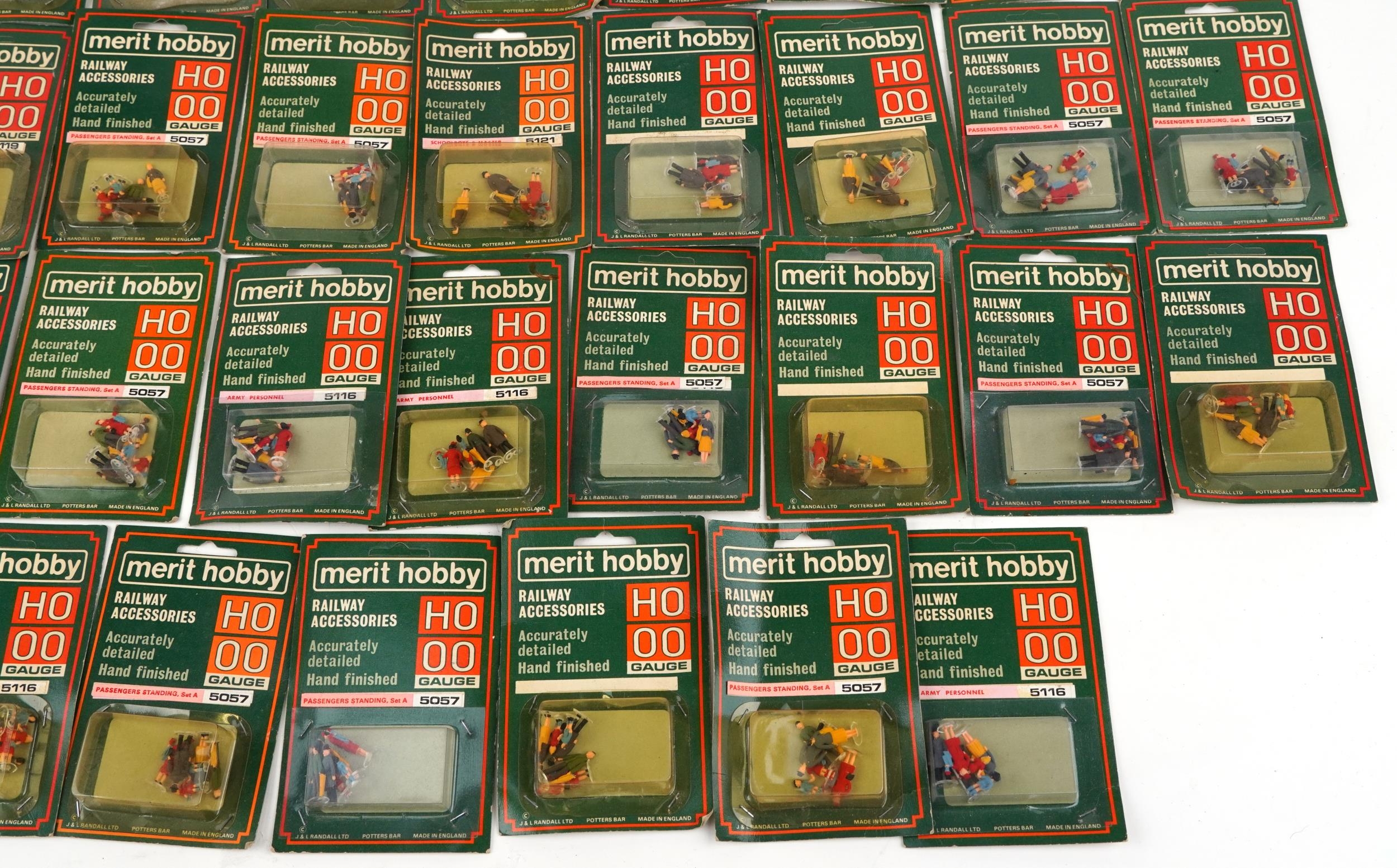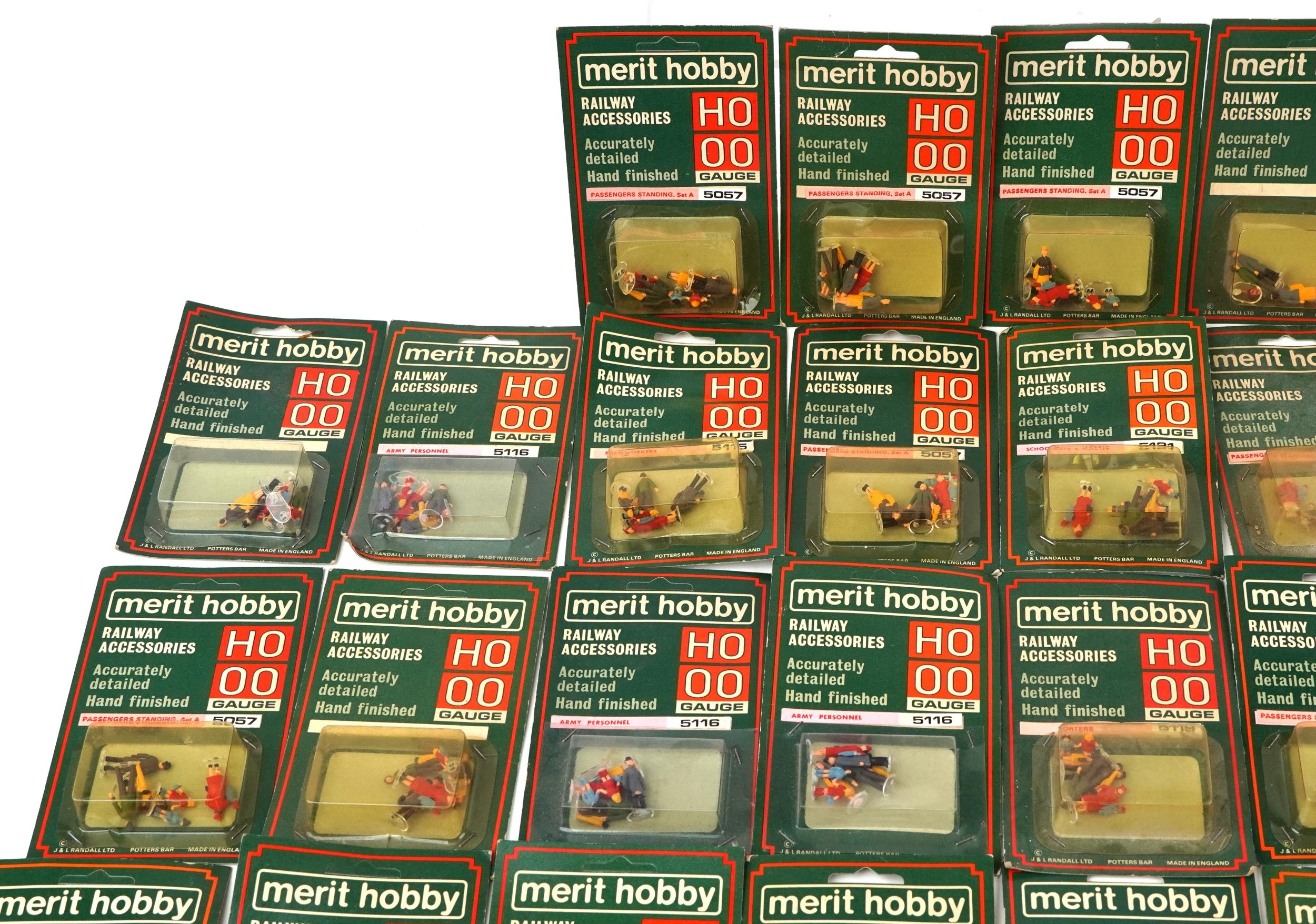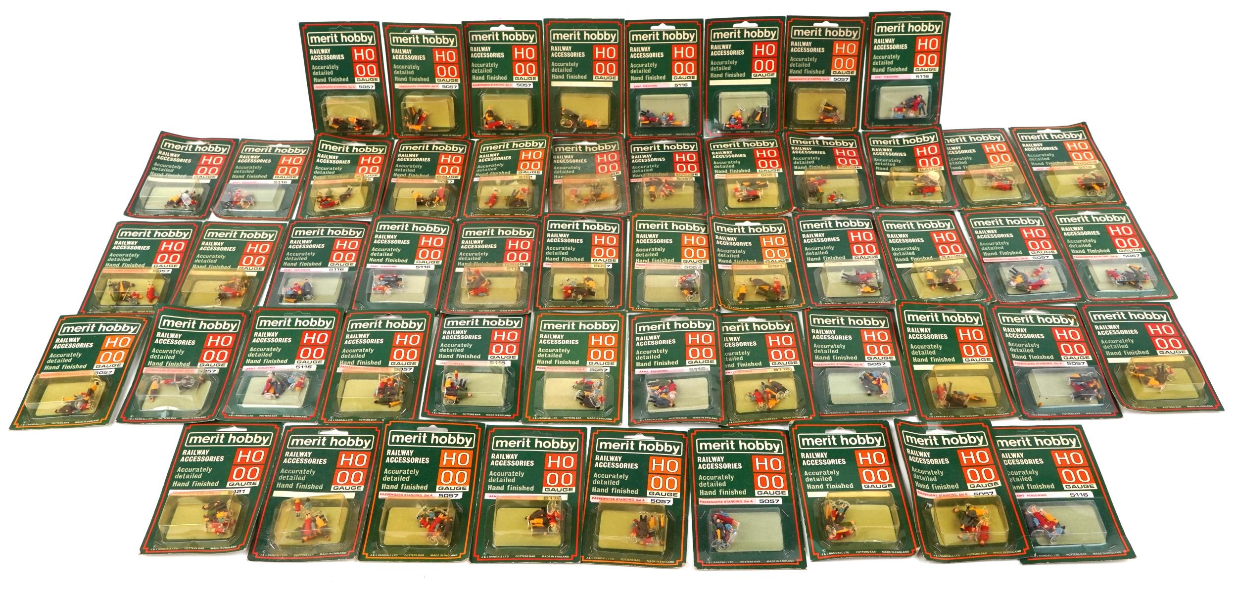A collection of approximately 50 Merit Hobby HO & OO gauge hand painted railway figures, various sets to include passengers standing, schoolboys & master and army personnel.
