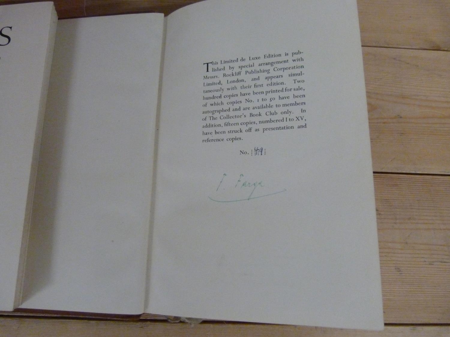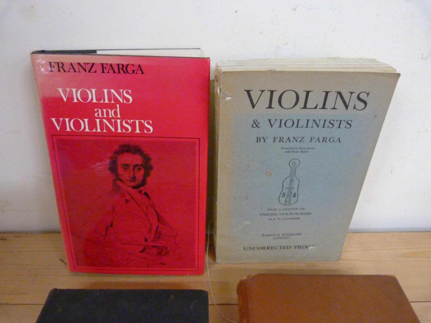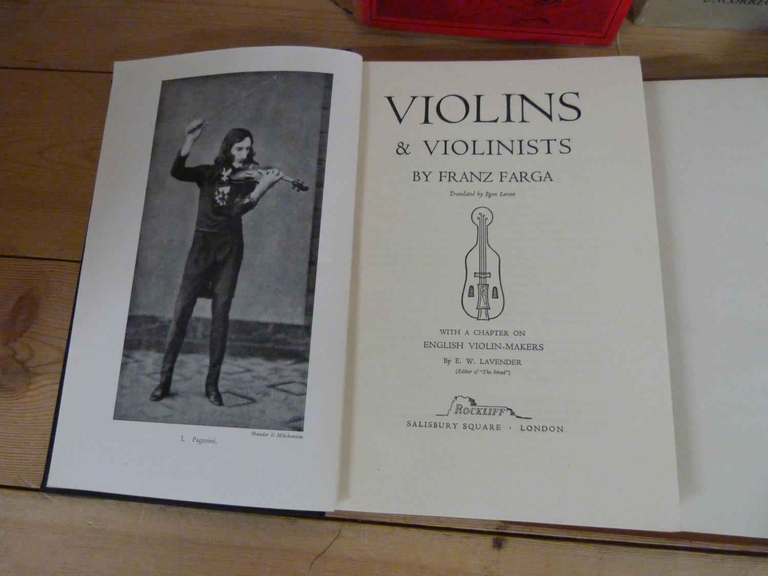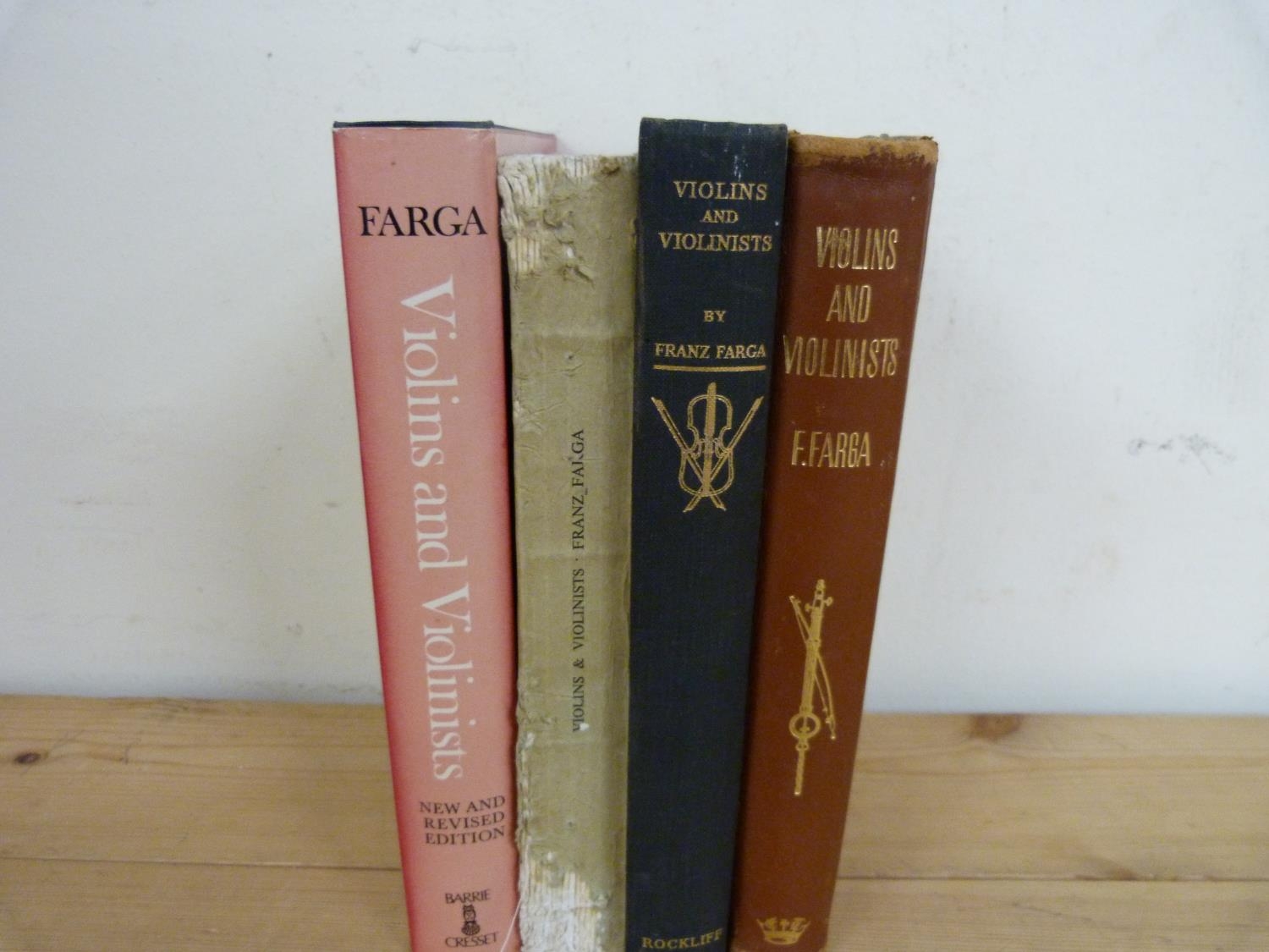 FARGA FRANZ. Violins & Violinists. Signed ltd. ed. deluxe 49/200. Calf, rubbing to extremities. 1950; also 3 other eds. of the same. (4).