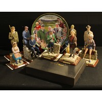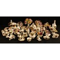 A Royal Albert Old Country Roses pattern miniature teapot, milk jug, sugar bowl, pair of teacups and saucers; other Old Country Roses pattern floral baskets, egg cups, bells, shoes, swan, wheelbarrows; qty