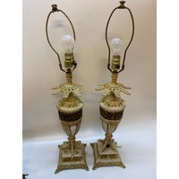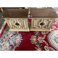 A pair of cream sprayed side cabinets with oak tops - 26in. ...