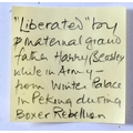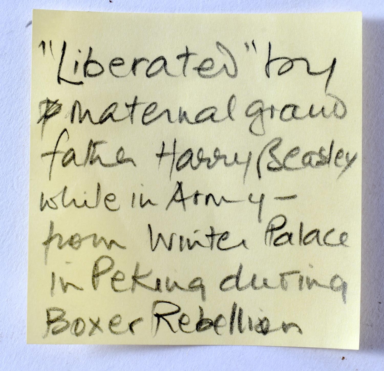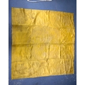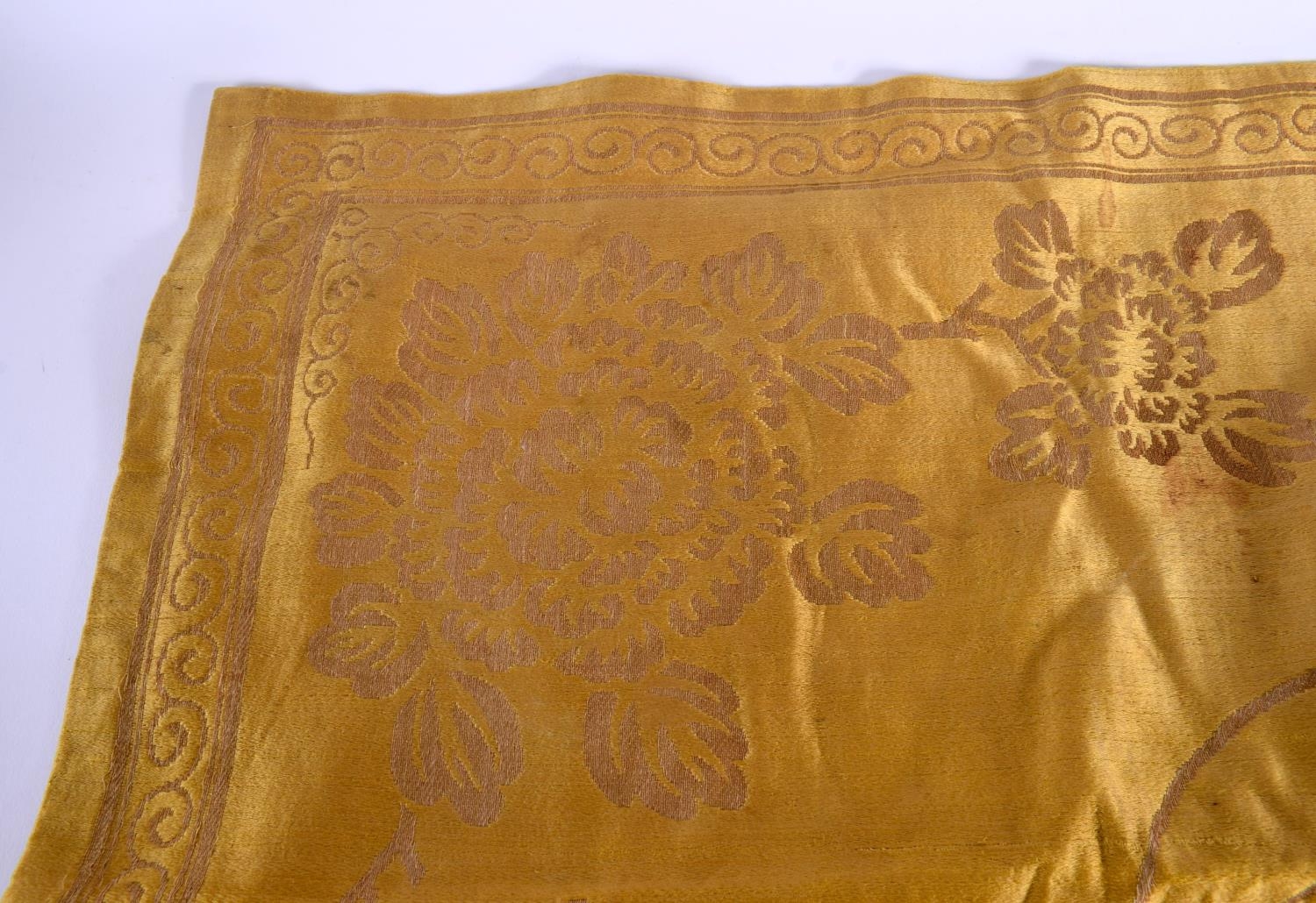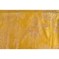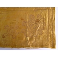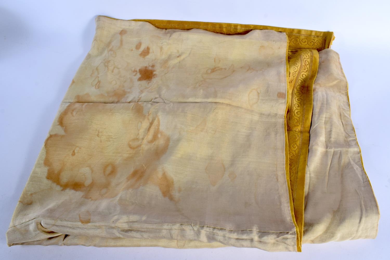 A 19TH CENTURY CHINESE YELLOW EMBROIDERED SILK COVER Qing. 105 cm square. Note: Sold with paper note, Liberated material from Grand Father Harry Beasley, whilst in the arm, from the Winter Palace Peking, during the boxer rebellion.